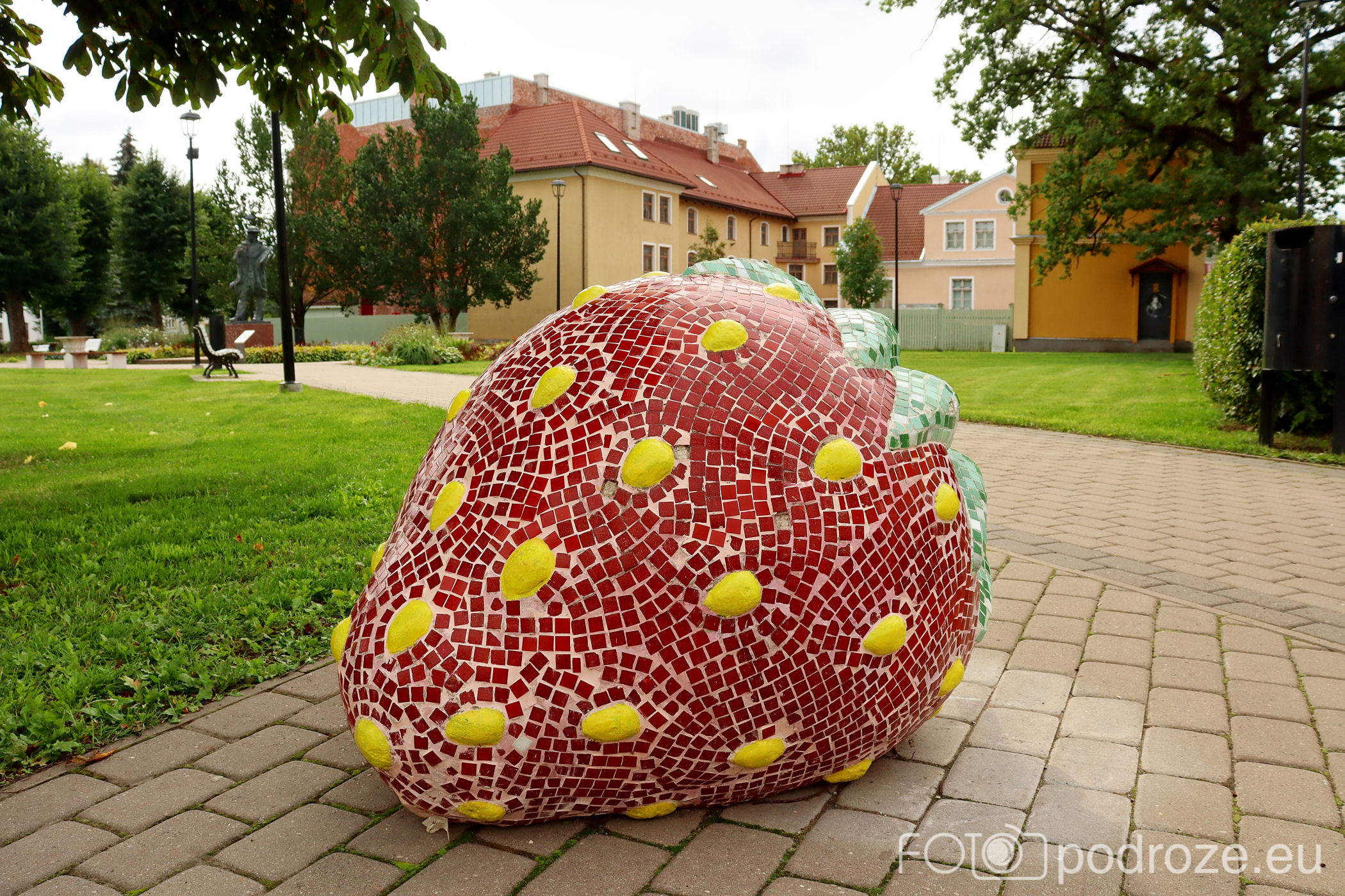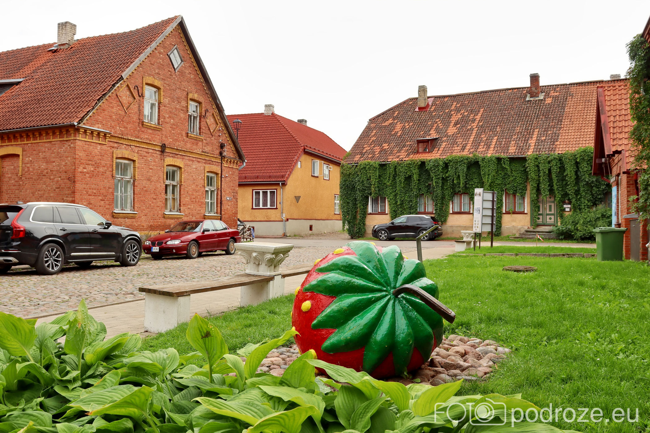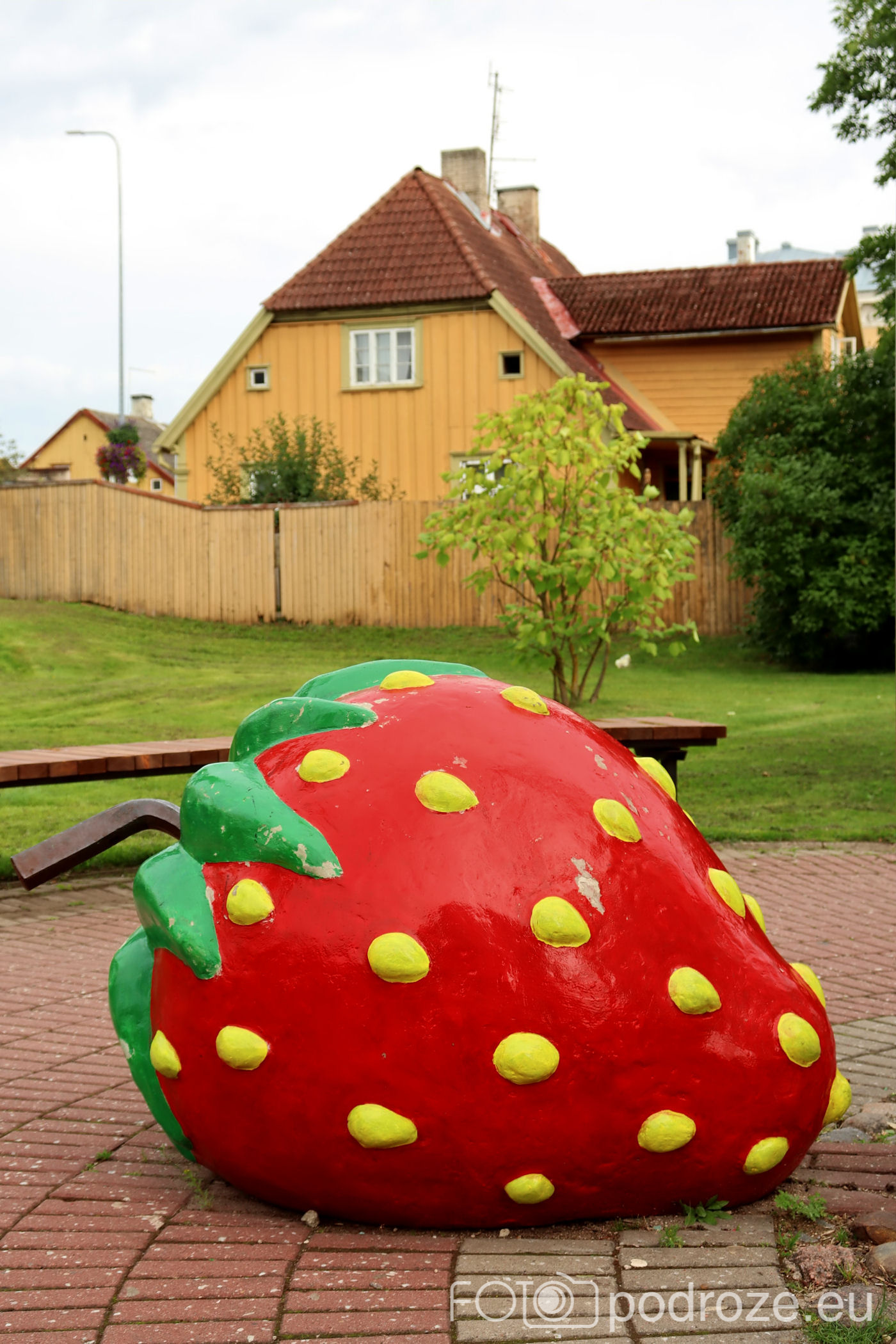 Od kościółka kieruję się na zachód wchodząc w zaczarowany świat kolorowych uliczek. Tuż za świątynią znajduje się ceglany budynek z wielka truskawką przed nim. Skąd ta truskawka? O tym poczytacie poniżej.