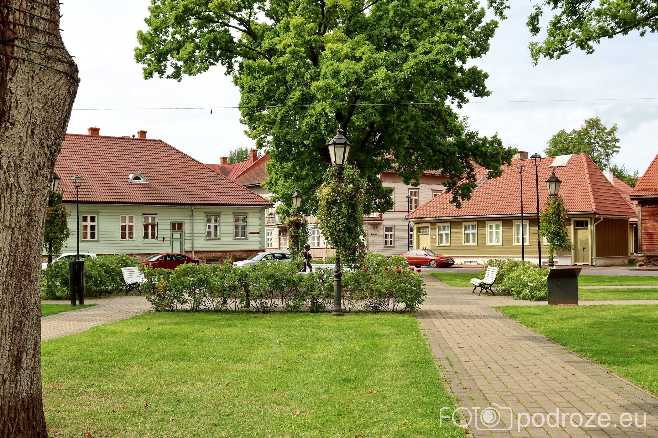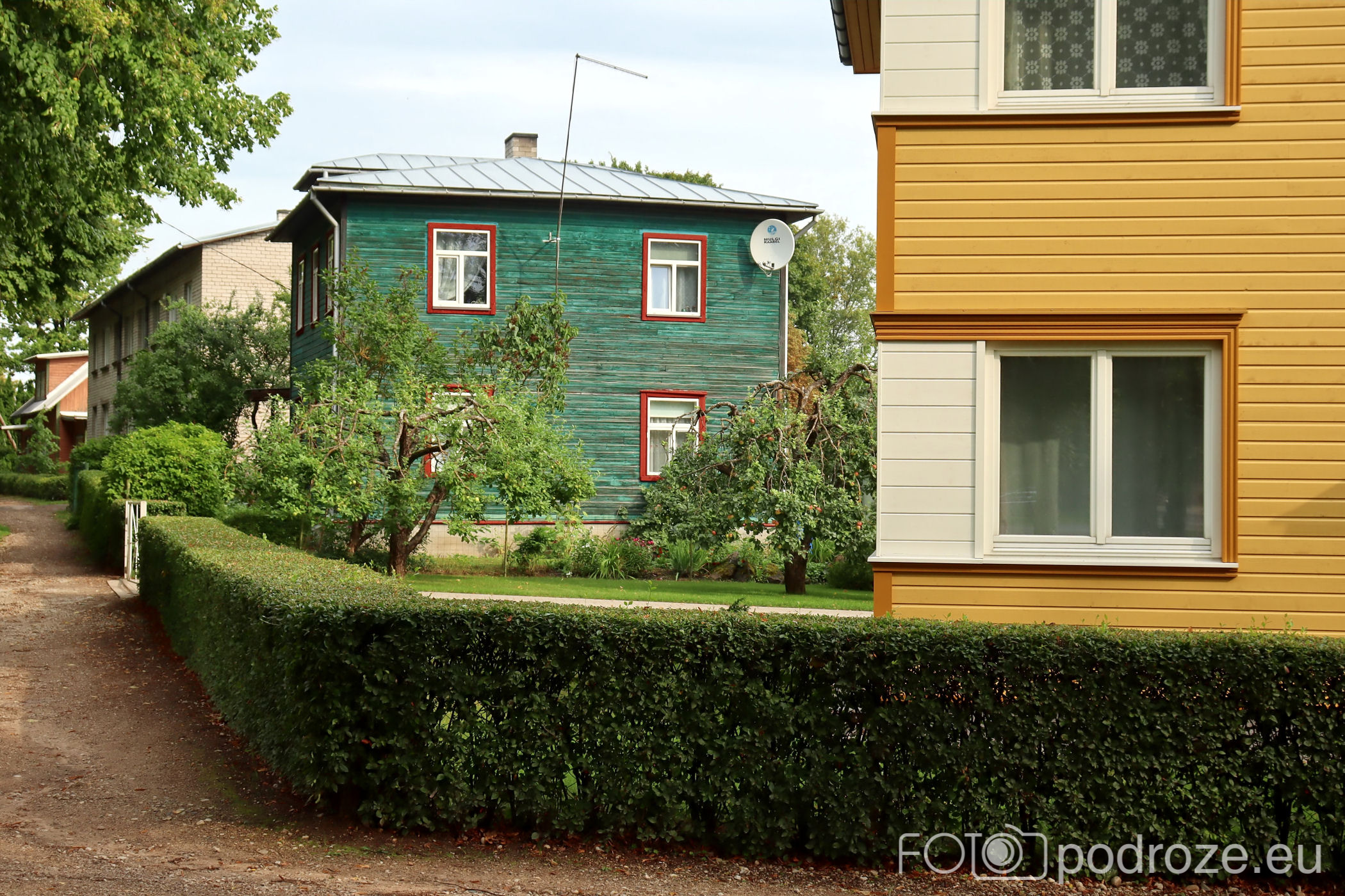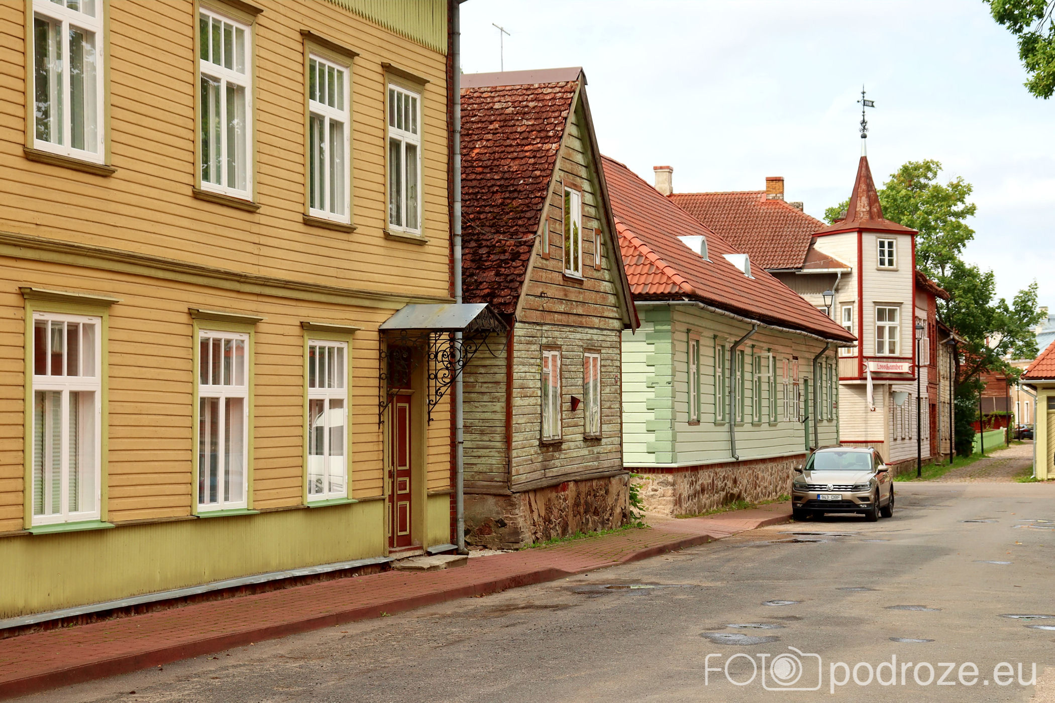 Nasz spacer po mieście zaczniemy od północy, czyli bardzo nietypowo, bo z pewnością żaden potencjalny turysta tu nie dociera, a i faktycznie nie ma tu nic, co mogło by go zainteresować. W tej części miasta po prostu nocowaliśmy i kilka razy siłą rzeczy przespacerowałam się przez dzielnice. O samym noclegu poczytacie poniżej w Informacjach Praktycznych, a tymczasem wędrujemy przez spokojną dzielnicę domków jednorodzinnych. Ta dzielnica to jakby zapowiedź całego charakteru miasta. Skąpana w zieleni, pełna drewnianych, kolorowych domków wygląda na kompletnie uśpioną, jakby trwała tu pełen lockdown, a go nie ma, bo Estonia latem mimo pandemii nie ma żadnych ograniczeń .