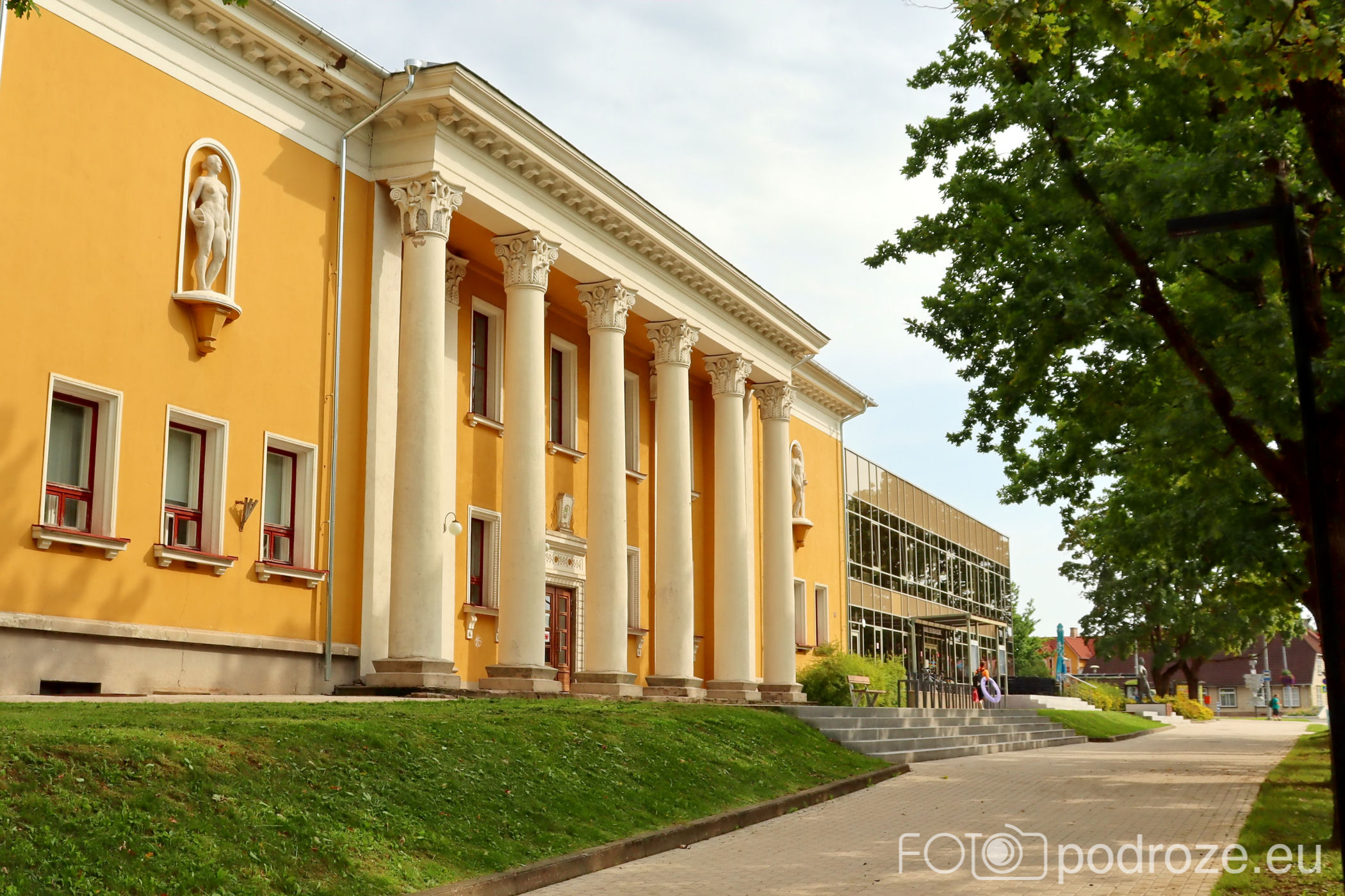 Tuż za kościołem znajduje się kolejny obiekt , który zwraca moja uwagę, to Centrum Sportowe. Dziwne jest jednak zestawienie starego budynku z przepiękną kolumnadą z nowoczesnym budynkiem obok.