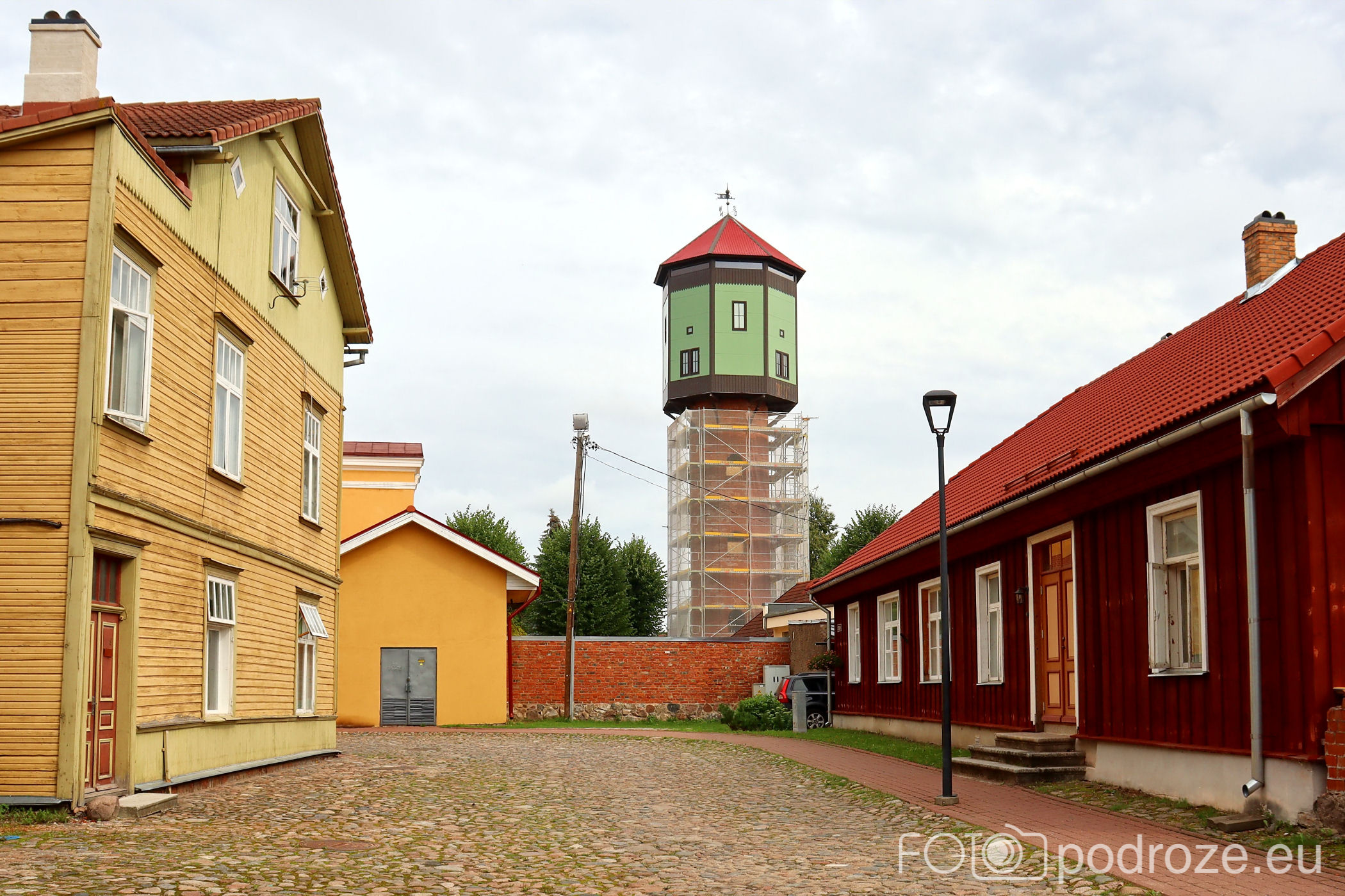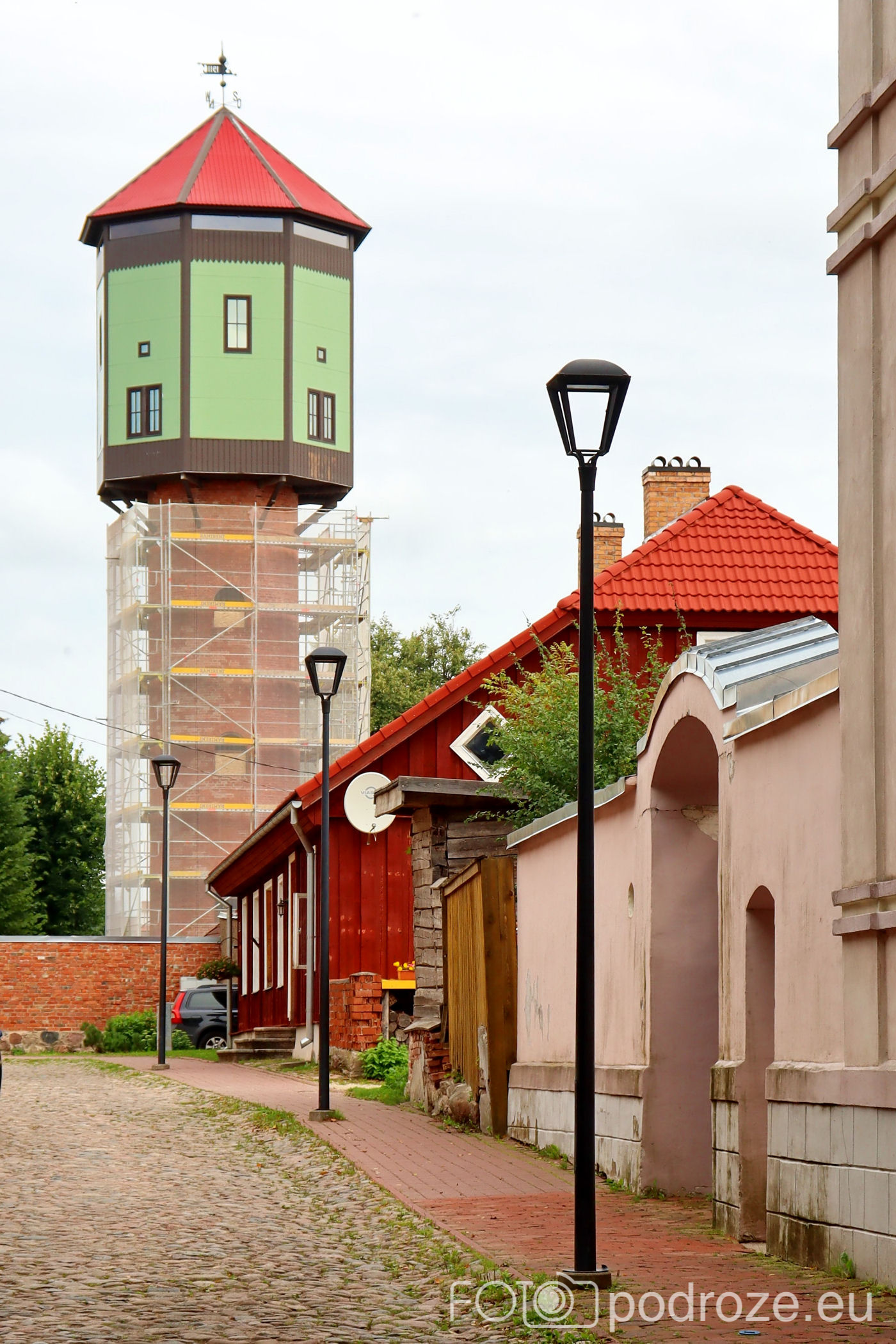 O Wieży Wodnej czytałam jako o obowiązkowym punkcie programu. Roztacza się z niej super widok na całe miasto. Ja niestety trafiłam na prace budowlane i zamknięte wejście. Pozostało obejść ją ze wszystkich stron i sfotografować w rusztowaniu. A wielka szkoda tym bardziej, że tu turyści wraz z biletem wstępu otrzymywali mapkę truskawek, mnie pozostało szukanie ich samodzielnie .