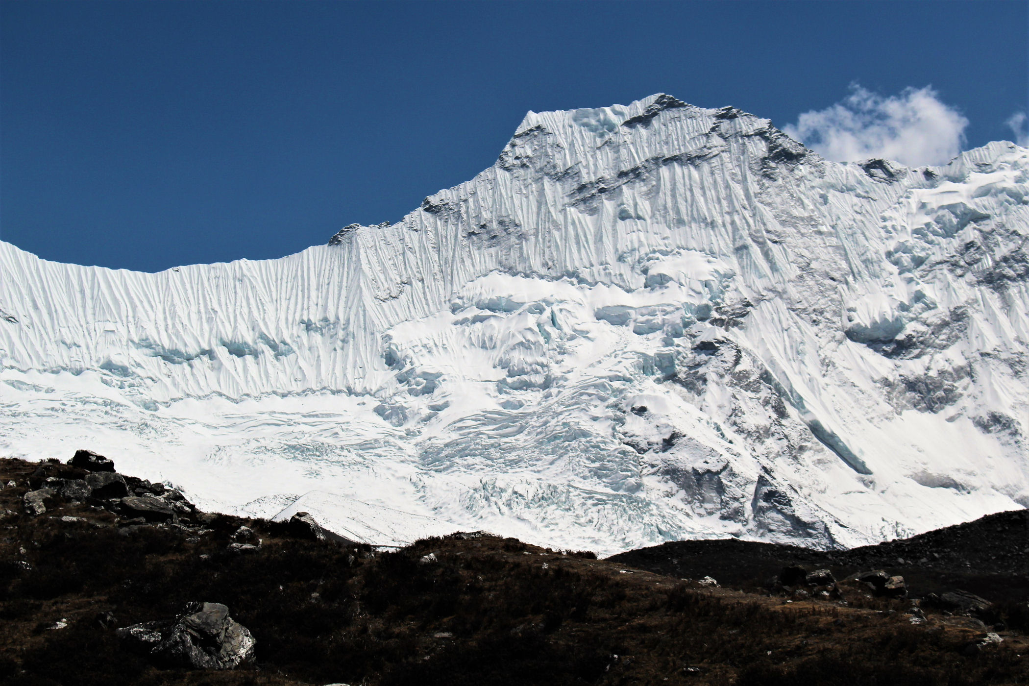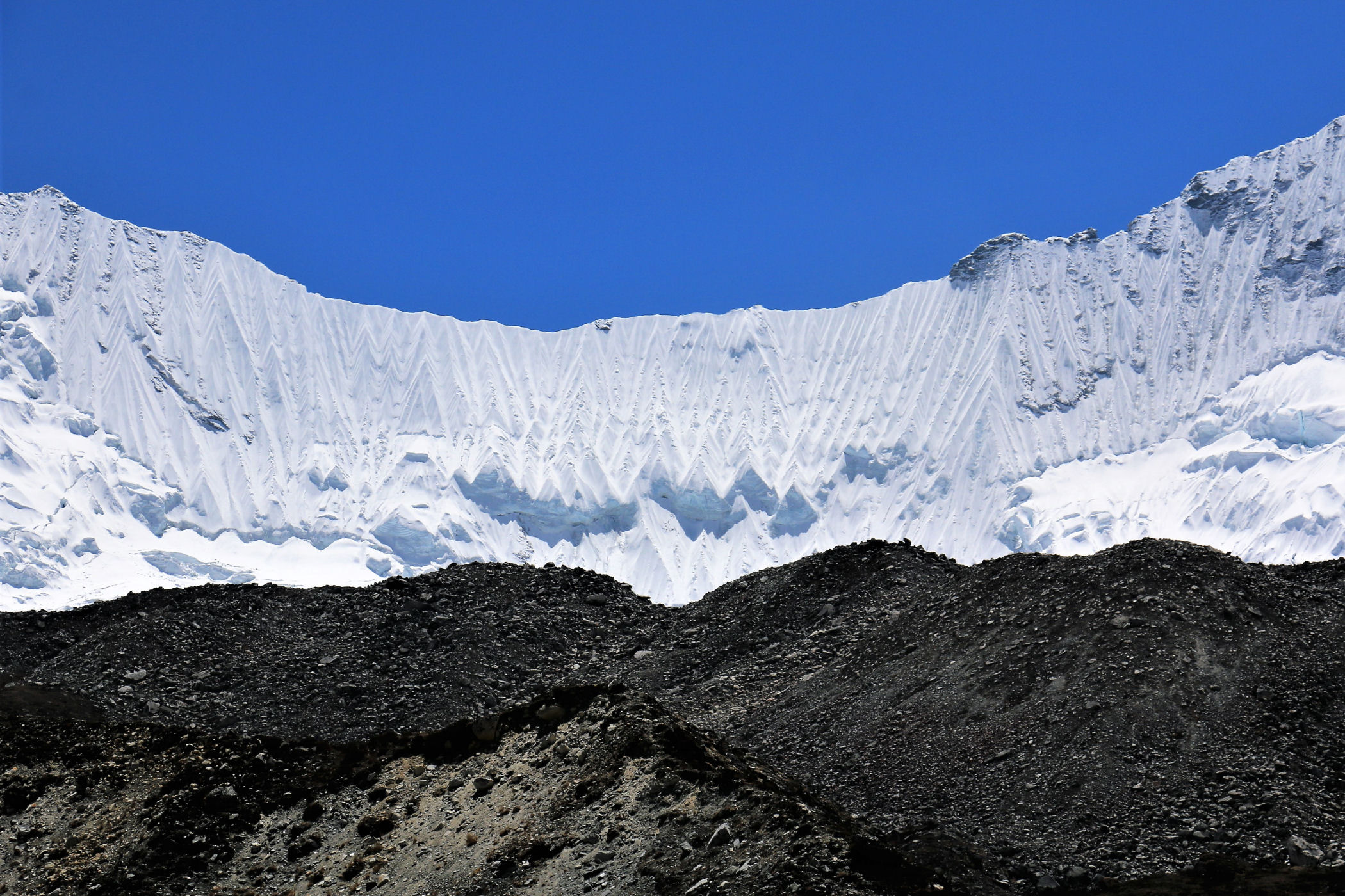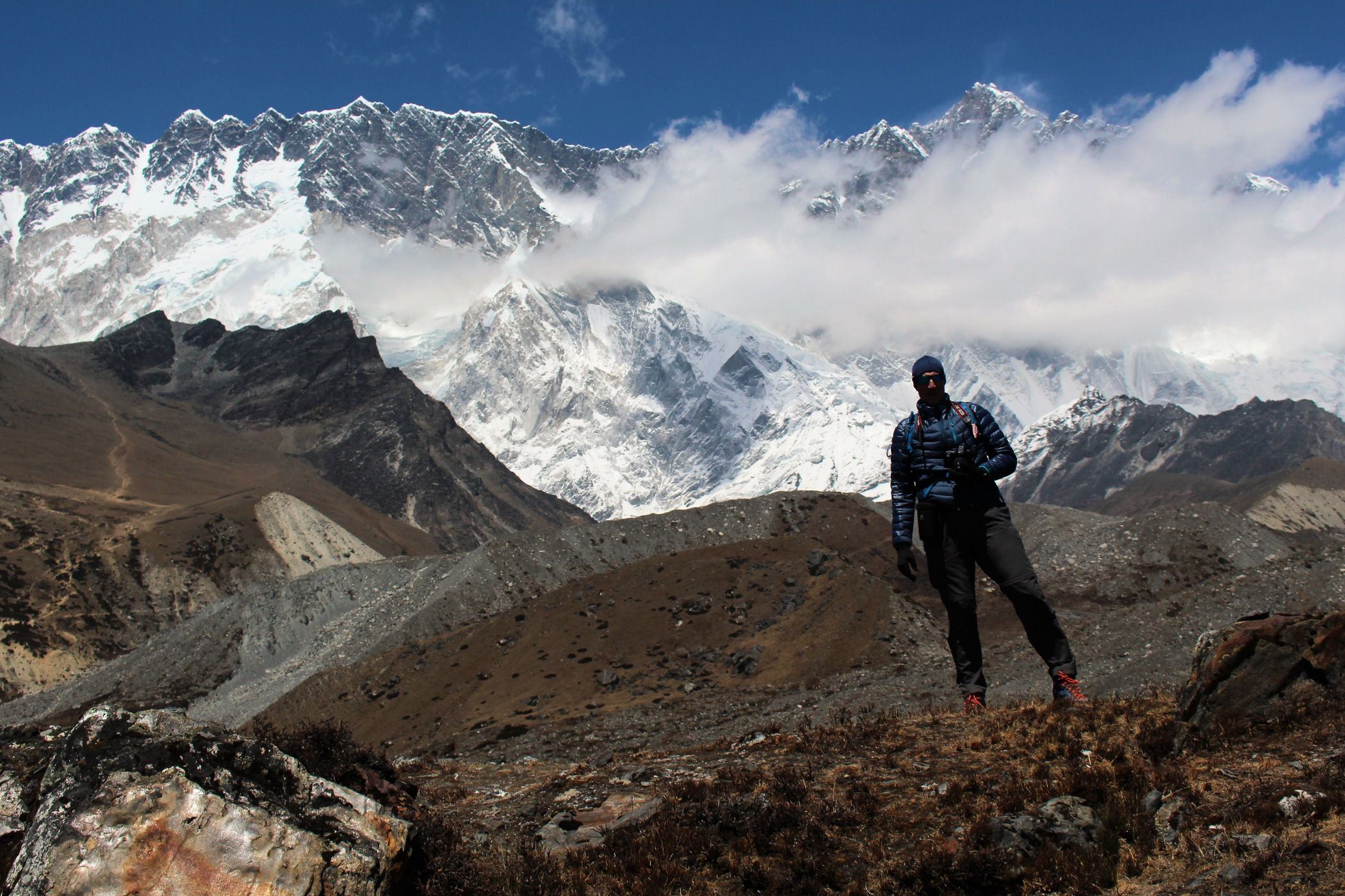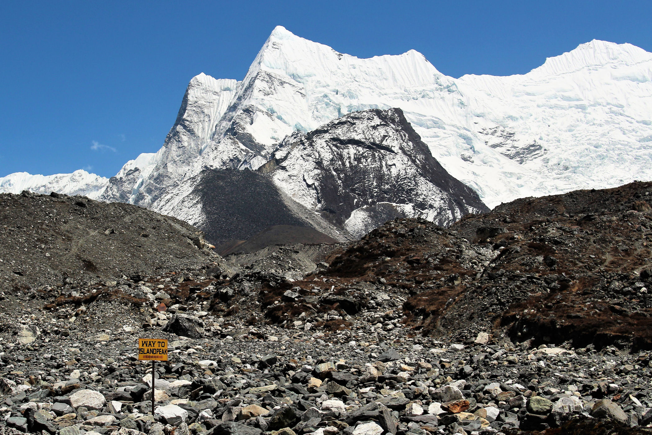 Jako, że pora jeszcze wczesna, a widoki wokół nieziemskie małą już grupą (reszta zostaje na dole) wędrujemy 100metrów wyżej szlakiem prowadzącym w kierunku bazy pod Island Peak, aby znaleźć się u stóp lodowca spływającego spod Ama Dablam i spojrzeć w wysoka na fenomenalne ściany masywu Lhotse. Miejsce jest tak magiczne, że aż żal je opuszczać.