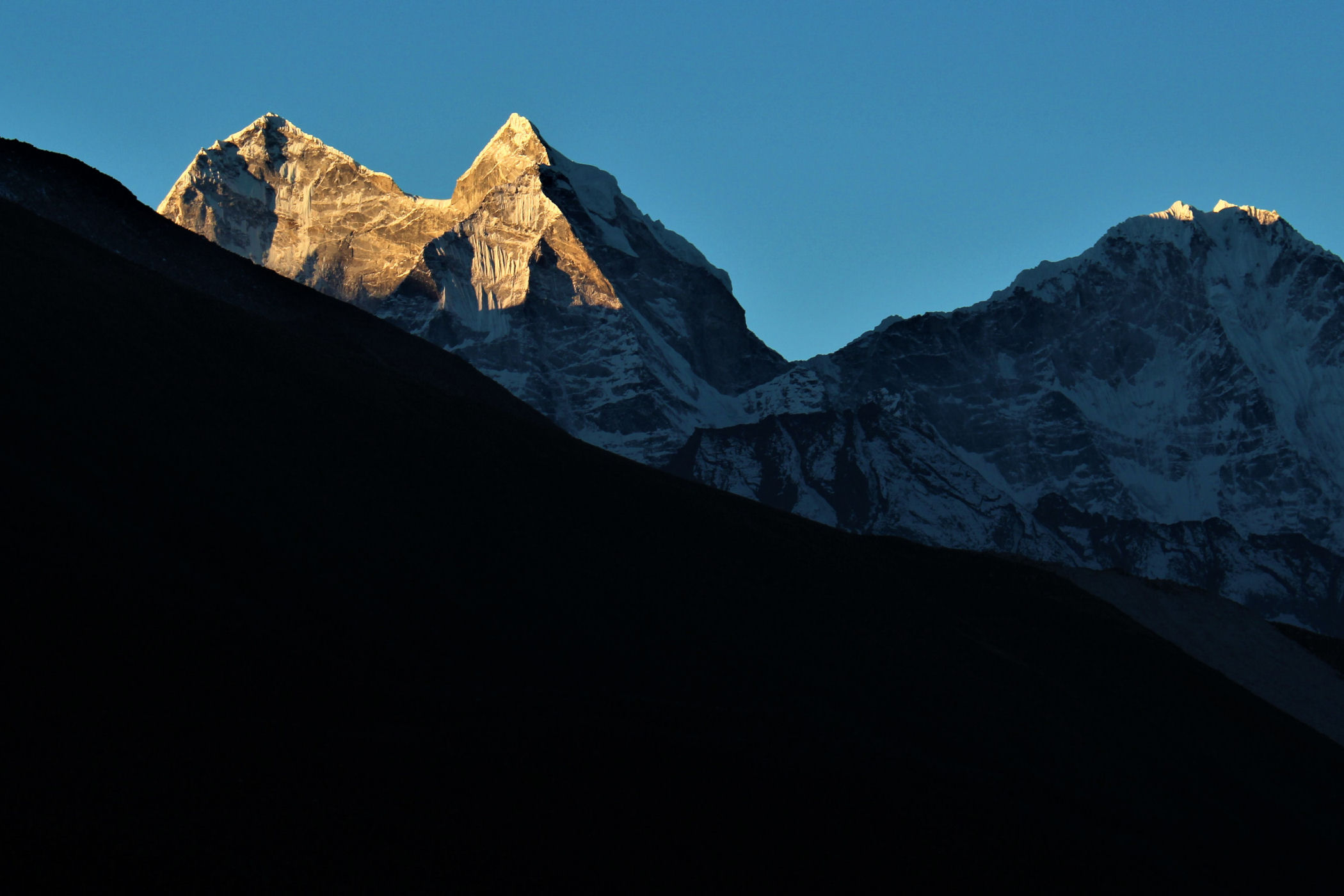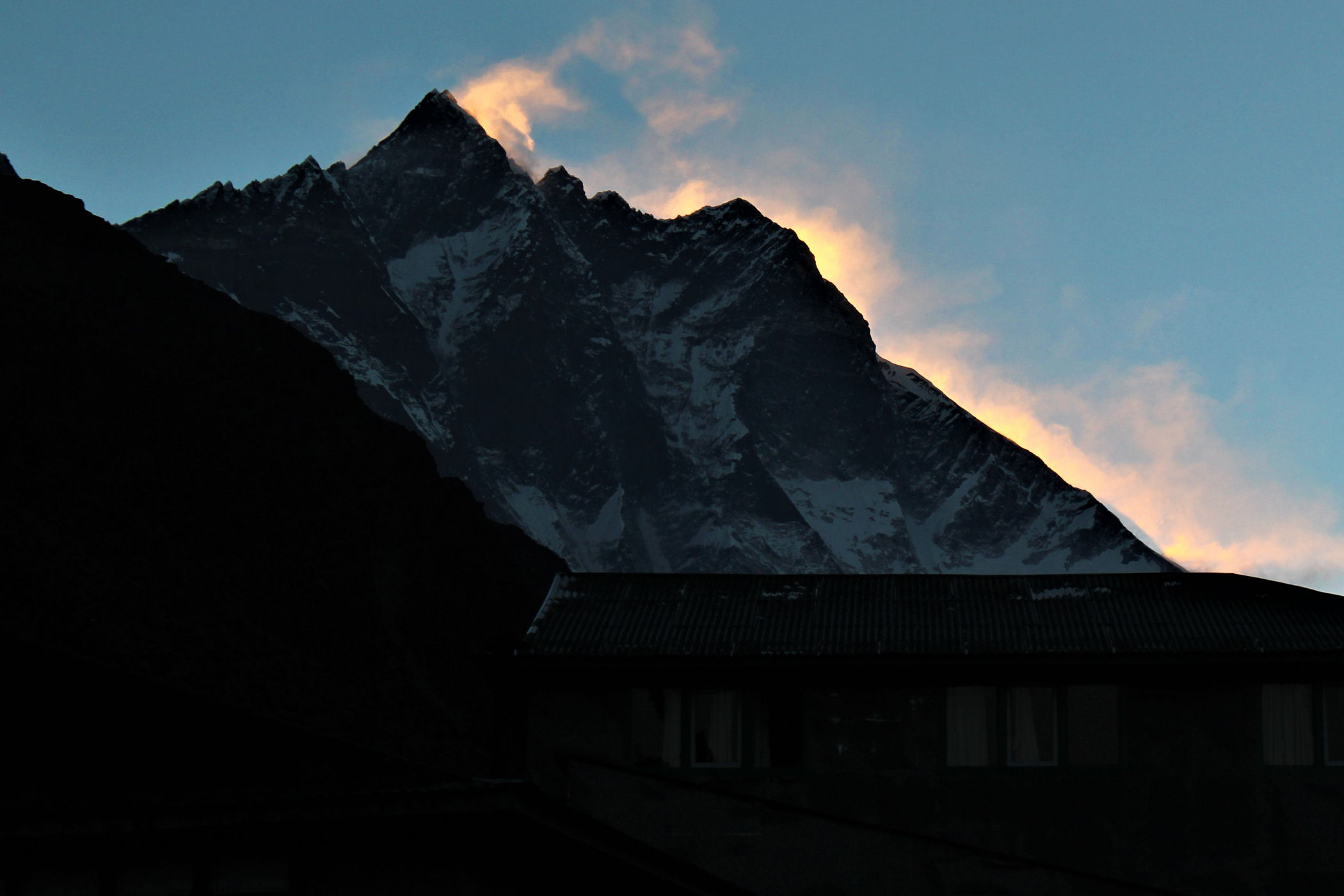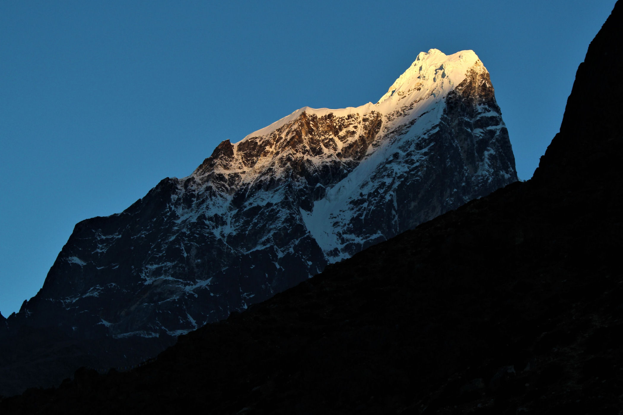 Tego dnia budzę się już o 5 rano i nie mogę już zasnąć. Jest bardzo zimno, ale wychodzę z ciepłego śpiwora, aby obejrzeć wschód słońca, albo raczej jego pierwsze promienie oświetlające okoliczne szczyty. Wraz ze mną budzi się miasteczko Dingboche, jego mieszkańcy zaczynają pracę, a turyści powoli ruszają w góry. Temperatura jest grubo poniżej zera, ale spektakl jest wart przemarznięcia. Dwie godziny później cała dolina jest już skąpana w słońcu i zaczyna się ocieplać.