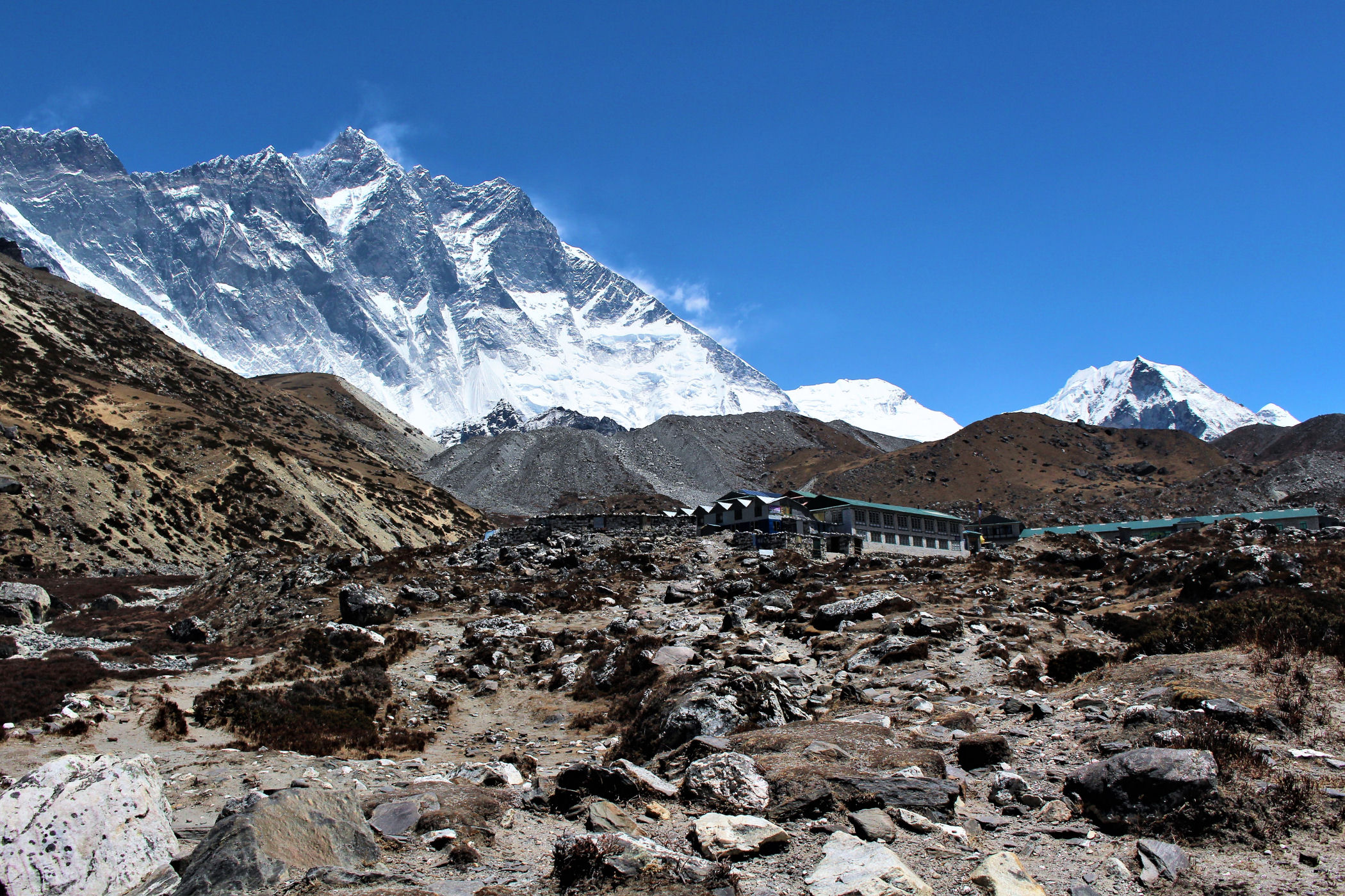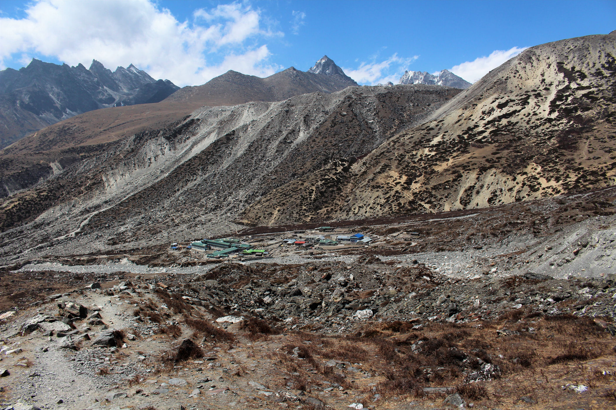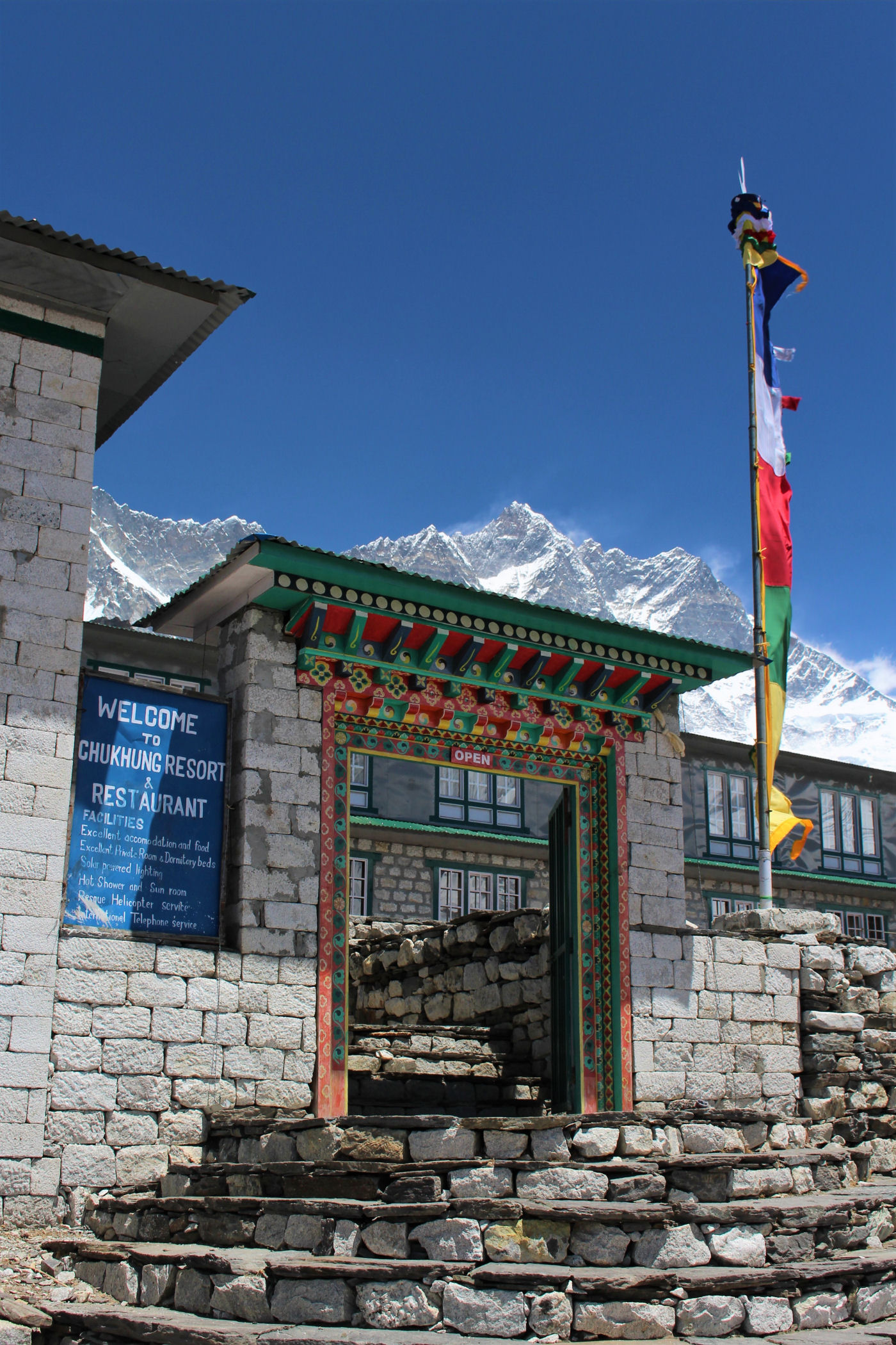 Po 3 godzinach wędrówki meldujemy się na wysokości 4730m. Miejscowość Chukhung jest niejako bramą i punktem wyjścia na Island Peak (6189m) oraz na wspomnianą wcześniej południową ścianę Lhotse. W Khangri Resort pijemy zasłużoną kawę i grzejemy się w promieniach słońca.