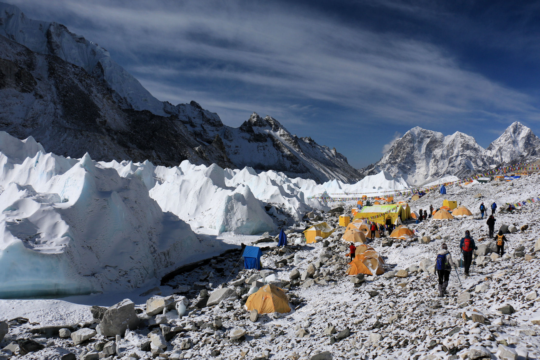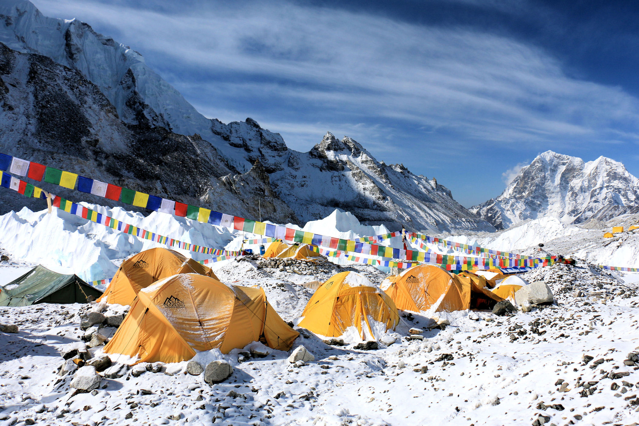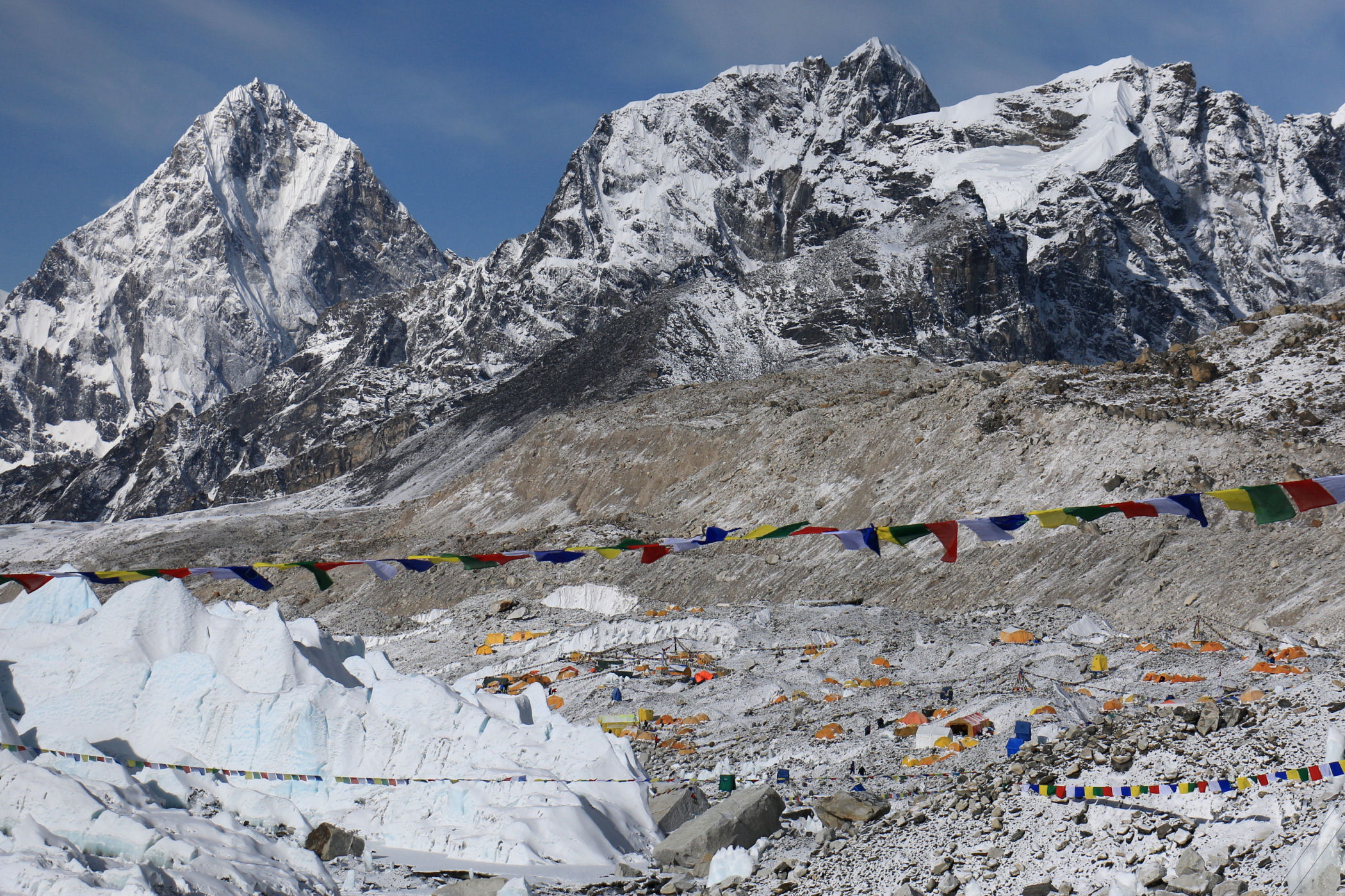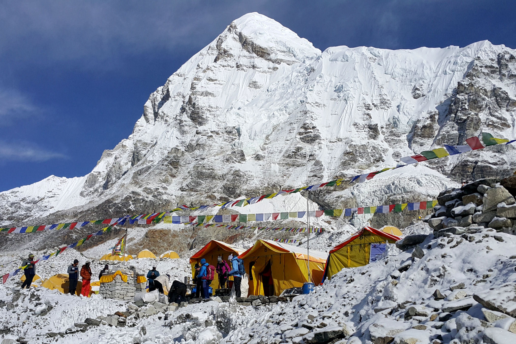 Everest Base Camp to ogromne miasteczko namiotowe zakładane u czoła lodowca Khumbu 2 razy w roku, które stanowi bazę dla wszystkich himalaistów świata chcących zmierzyć się z najwyższą górą świata oraz Lhotse.