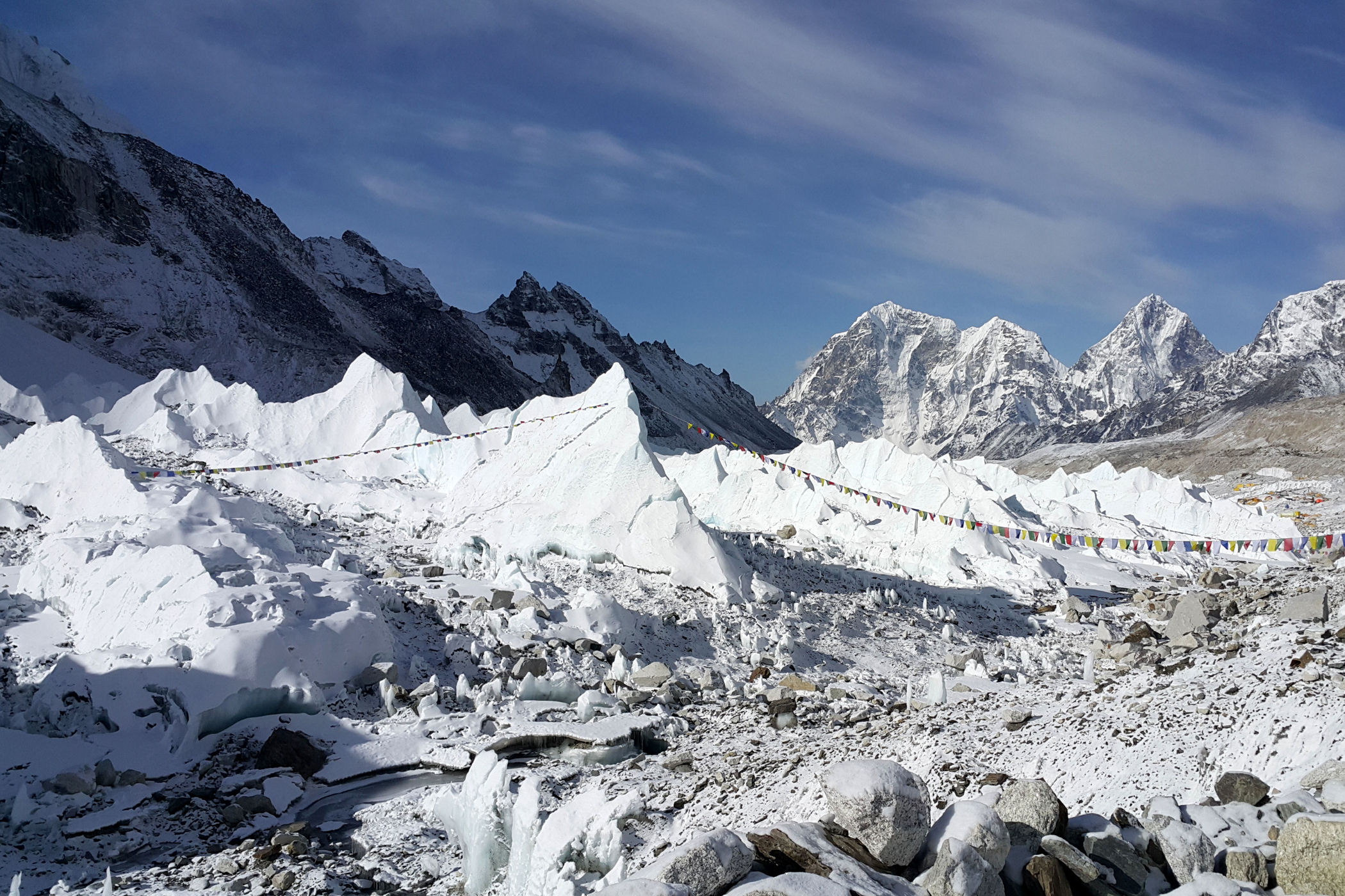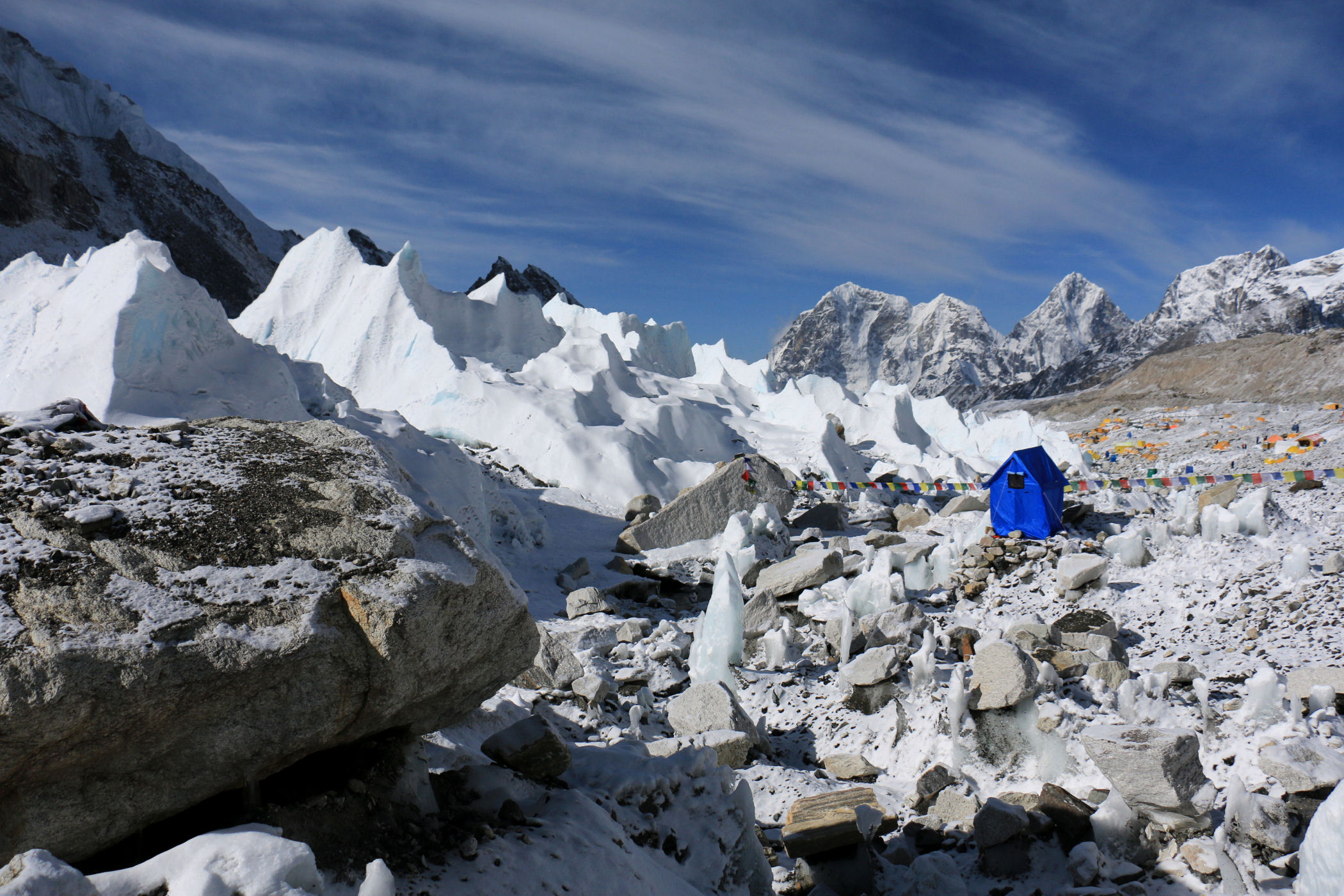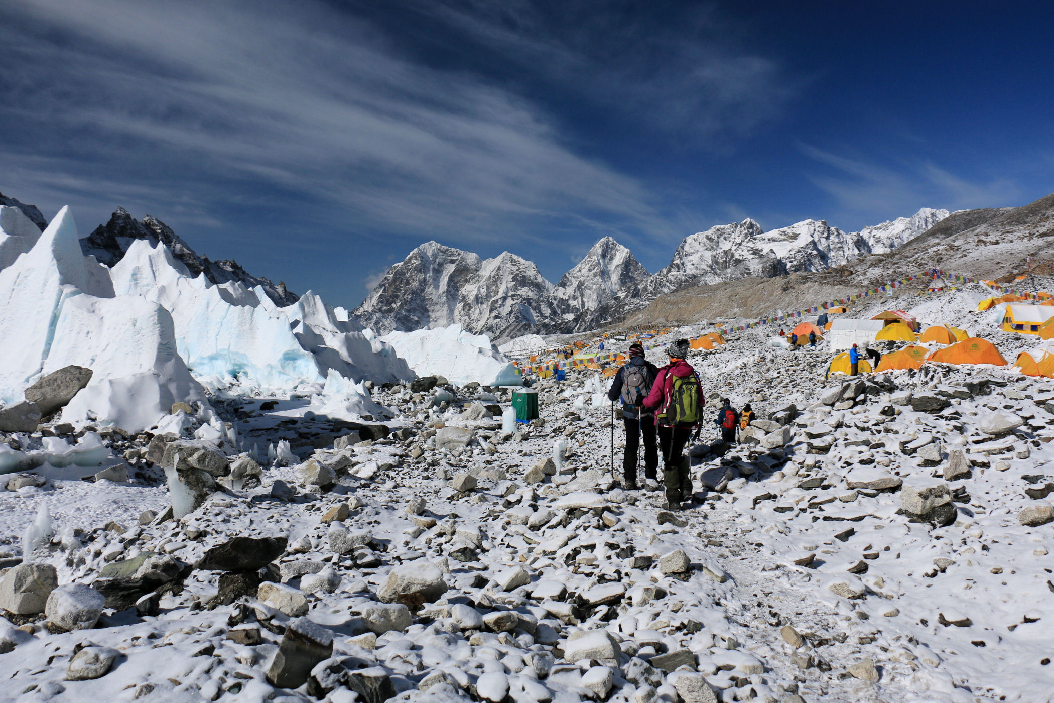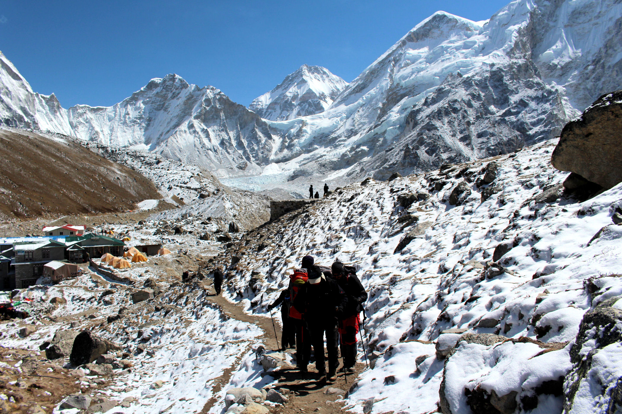 Everest Base Camp to ogromne miasteczko namiotowe zakładane u czoła lodowca Khumbu 2 razy w roku, które stanowi bazę dla wszystkich himalaistów świata chcących zmierzyć się z najwyższą górą świata oraz Lhotse.