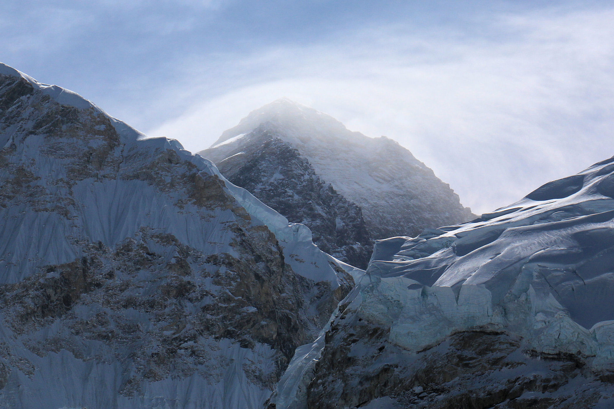 Poranek po tej zimnej nocy wita nas obłędną aurą, ( teraz żałuje jeszcze bardziej, że nie ma mnie z rodziną ). Ekipa zjada bardzo wczesne śniadanie w bazie i szybko pakuje się do zejścia. Oto kilka zdjęć z EBC skąpanego w porannym słońcu: