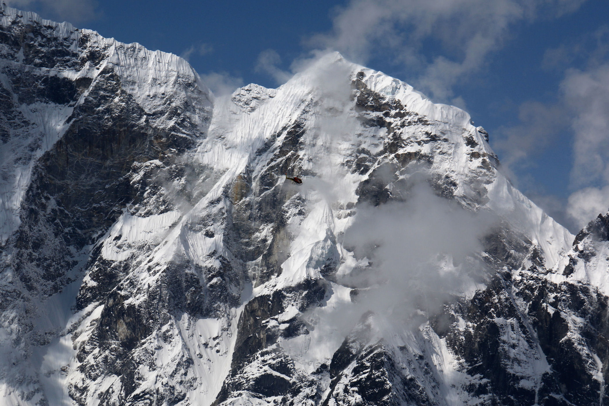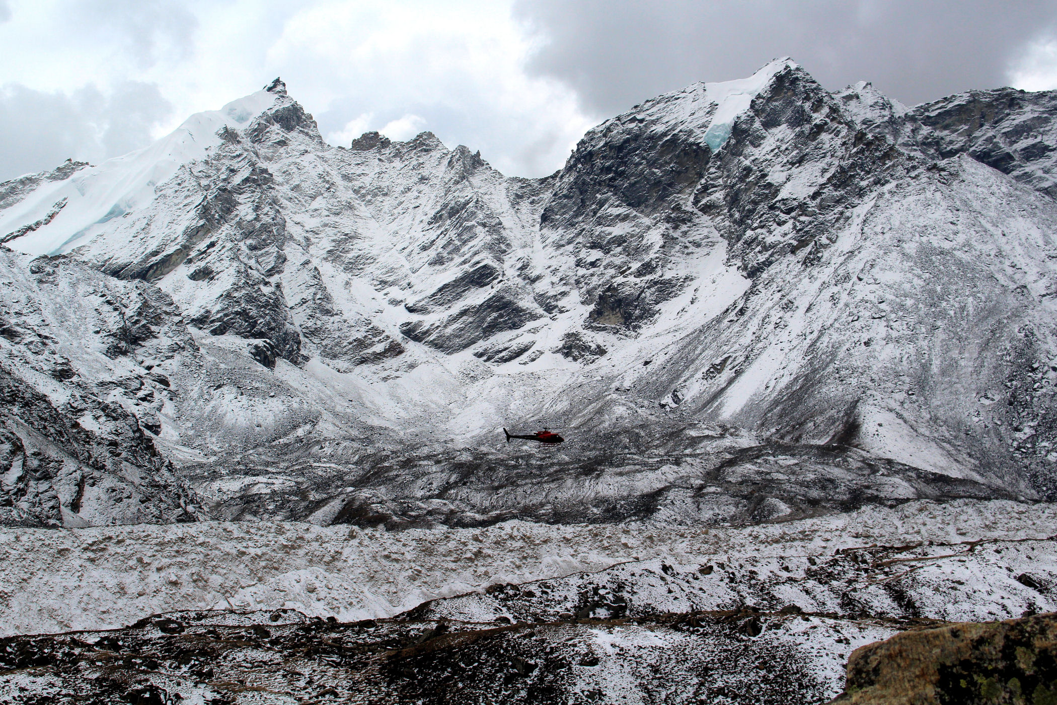 W tym samym czasie kiedy większość ekipy zbiera się i schodzi z bazy, my robimy to samo w Gorak Shep. Jeszcze przed śniadaniem robię mały spacer po okolicy próbując nacieszyć oczy obłędną aurą poranka. Kolejna próba wejścia na Kala Pattar znowu kończy się po 10 metrach, to samo kiedy próbuję wejść na wzgórze na którym ląduje helikopter. Organizm się buntuje – nie ma siły pokonać w pionie nawet kilku metrów. Jestem przerażona i mam wizję powrotu helikopterem.