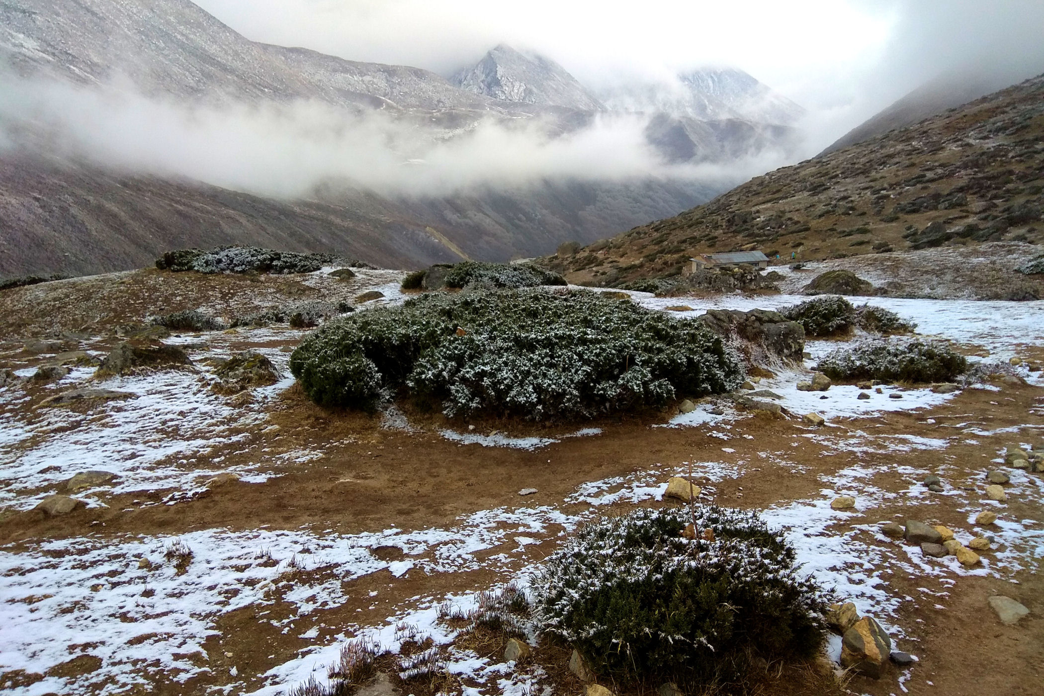 Nie lepiej było w Gorak Shep. Tam też trzęsłam się z zimna, a woda zamarzła w butelce i w baniaczku w łazience. Dla mnie była to niestety kolejna noc nieprzespana, objawy choroby się nasiliły, a wysokość i zimno osłabiły organizm prawie do zera. Marzyłam tylko o tym, aby jak najszybciej zejść w dół.