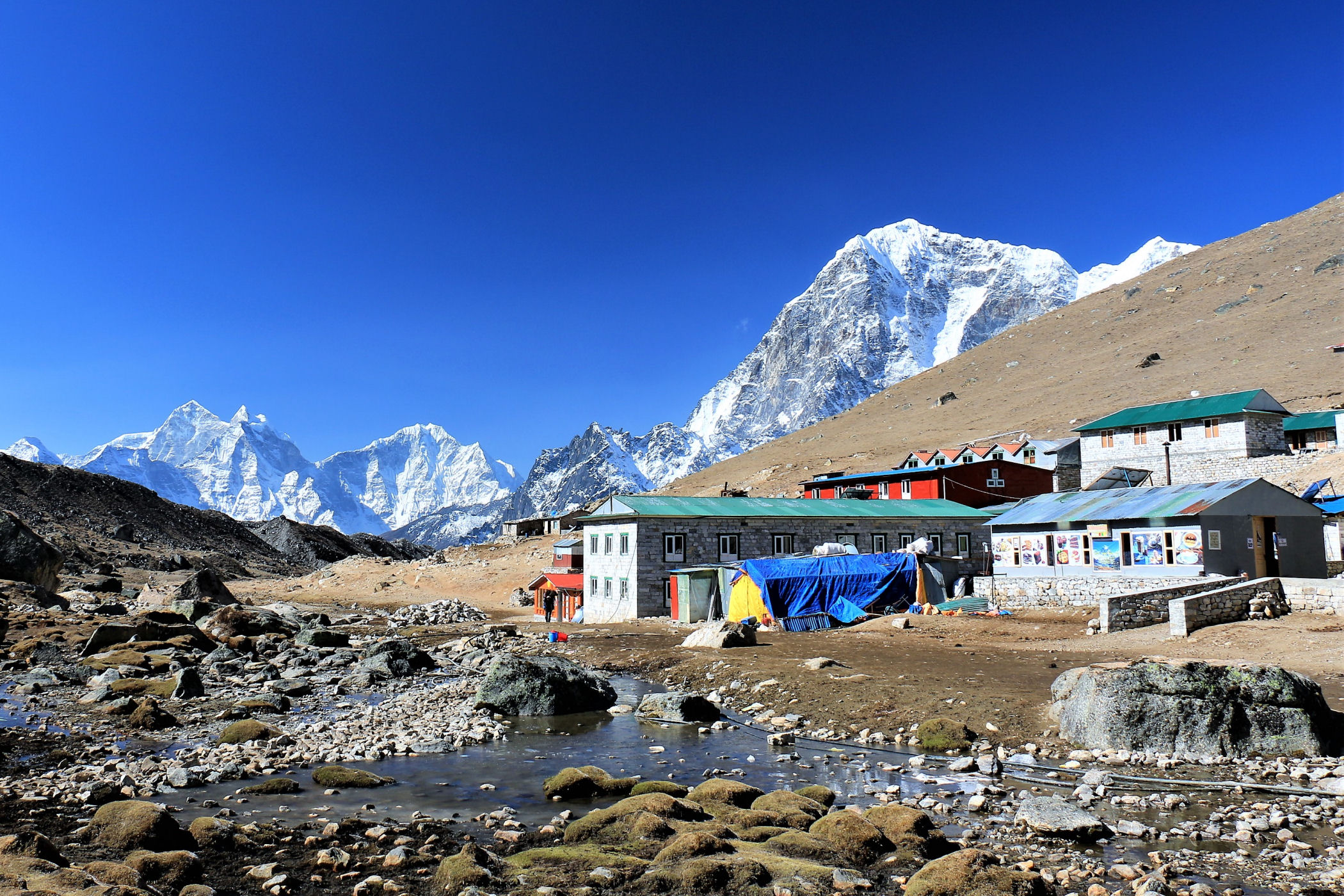 Lobuche to miejscowość na prawie 5 tys. m n.p.m. Ta wysokość sprawia, że nie ma tu już żadnej roślinności. Mimo tego miejscowość w porannym słońcu wygląda przepięknie.