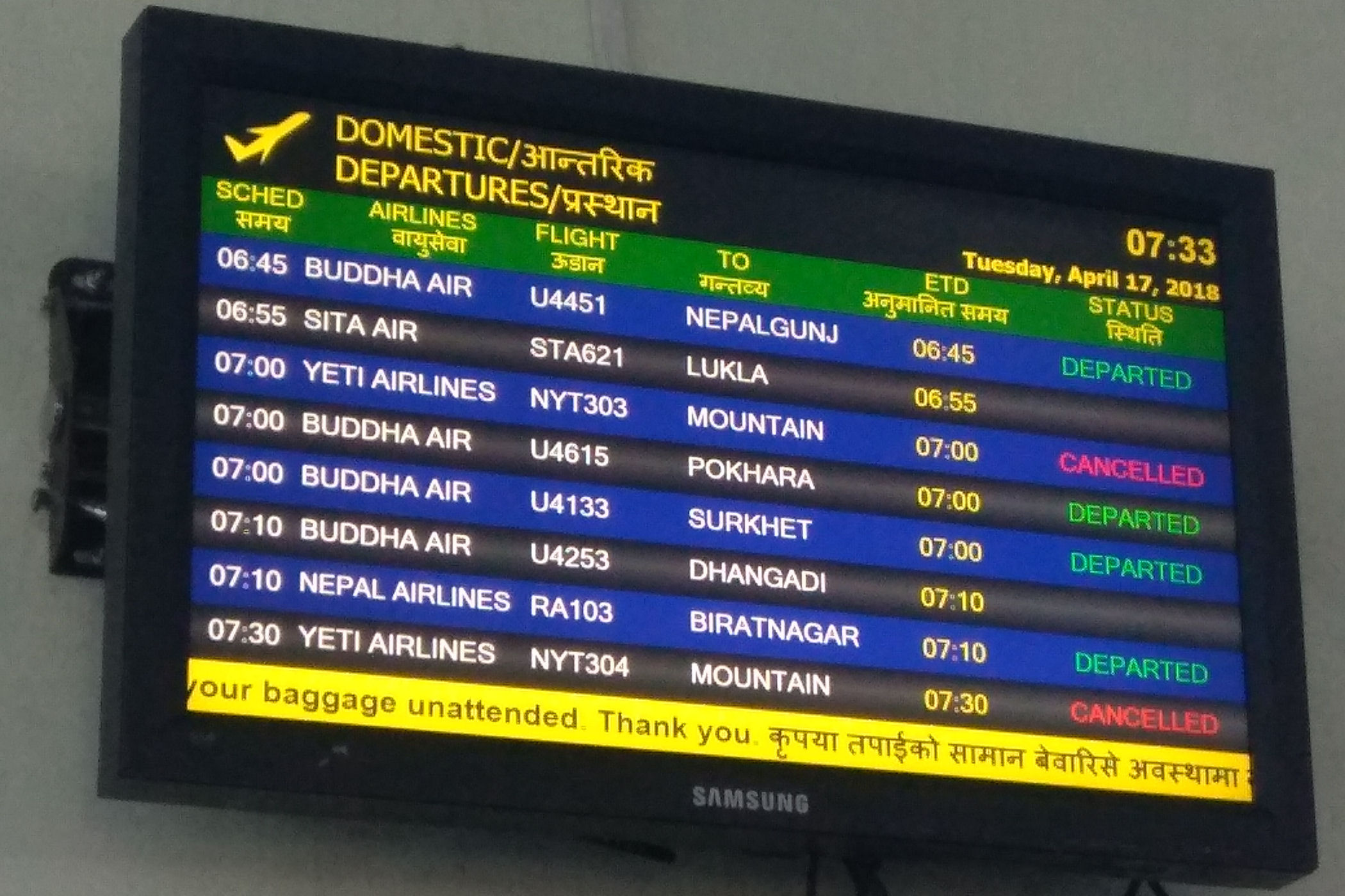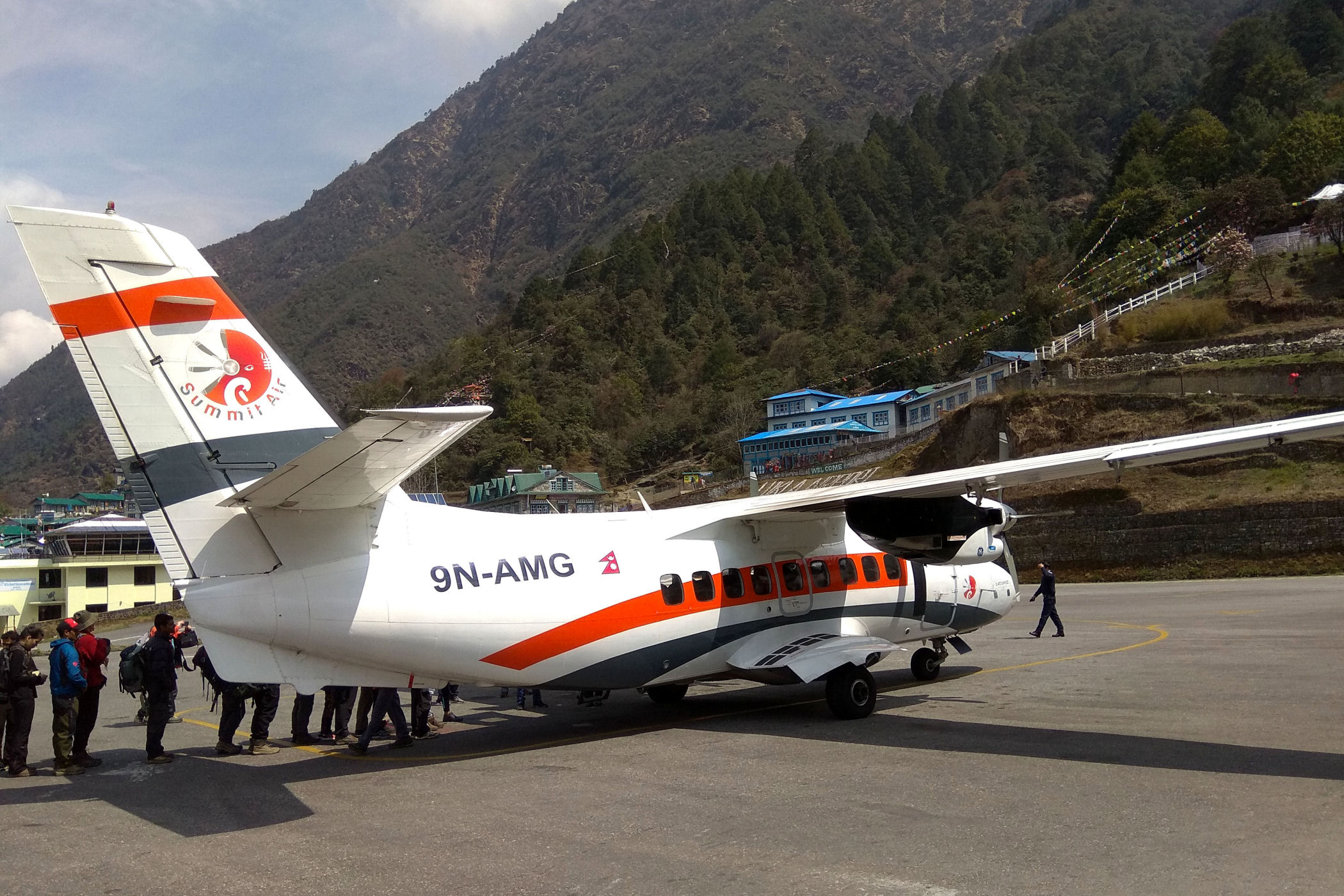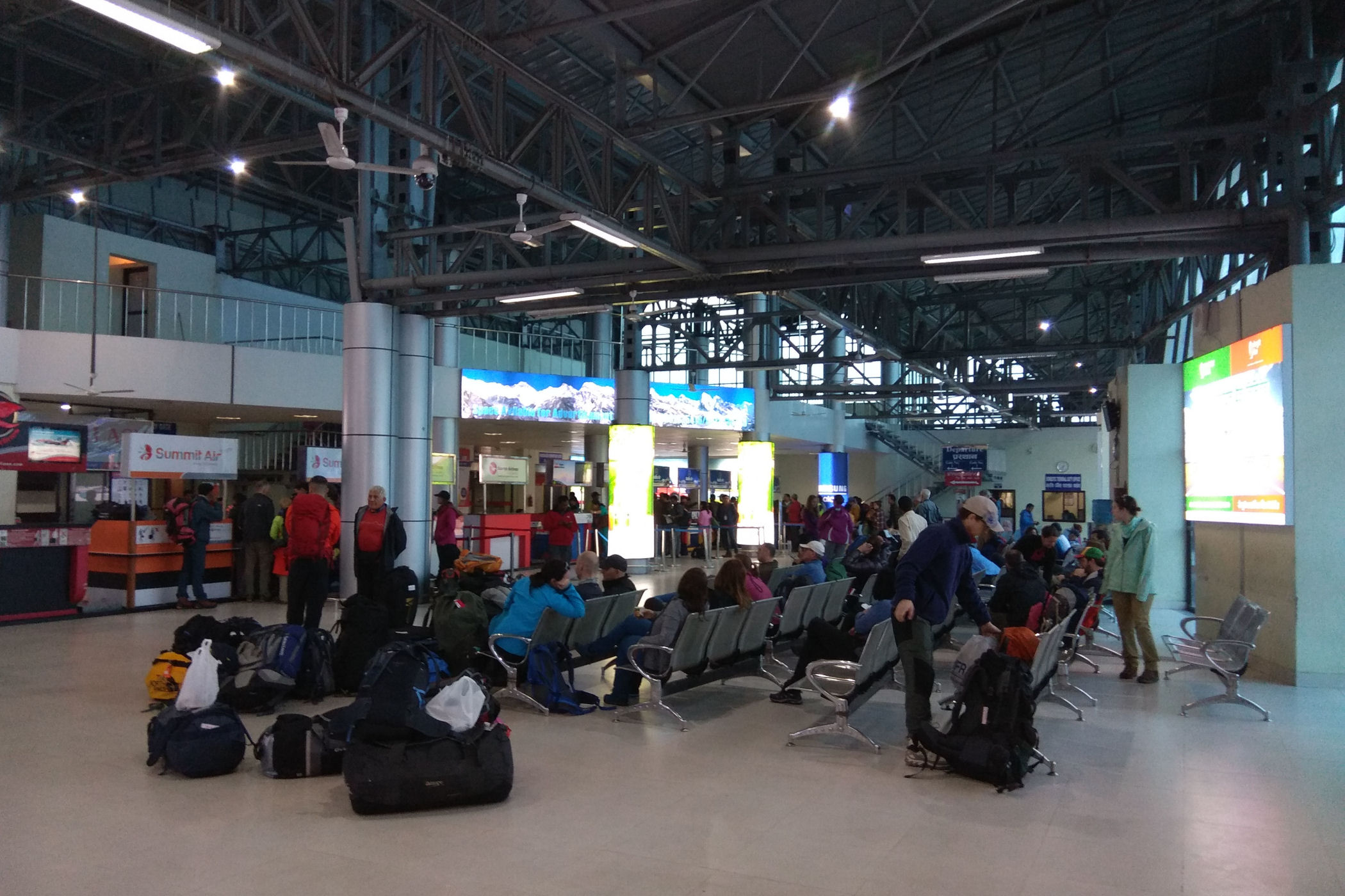 Aby rozpocząć trekking trzeba się dostać na północny-wschód Nepalu. O świcie meldujemy się na międzynarodowych lotnisku w Katmandu. Planowany wylot – 7.00 , linia lotnicza SUMMIT AIR . Do wyboru są tu jeszcze dwie inne linie o uroczych nazwach „Buddha Air” oraz „Yeti Airlines”.