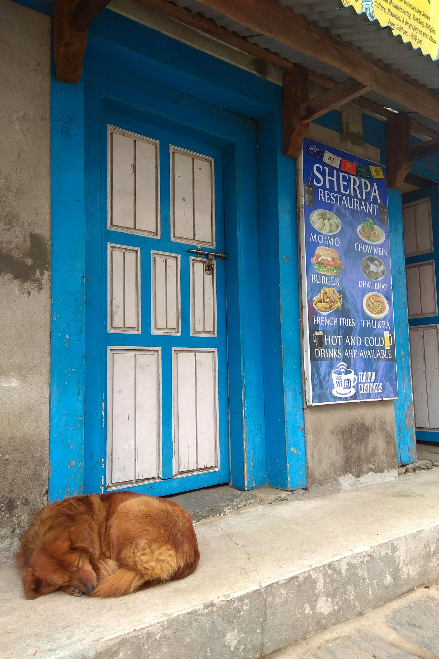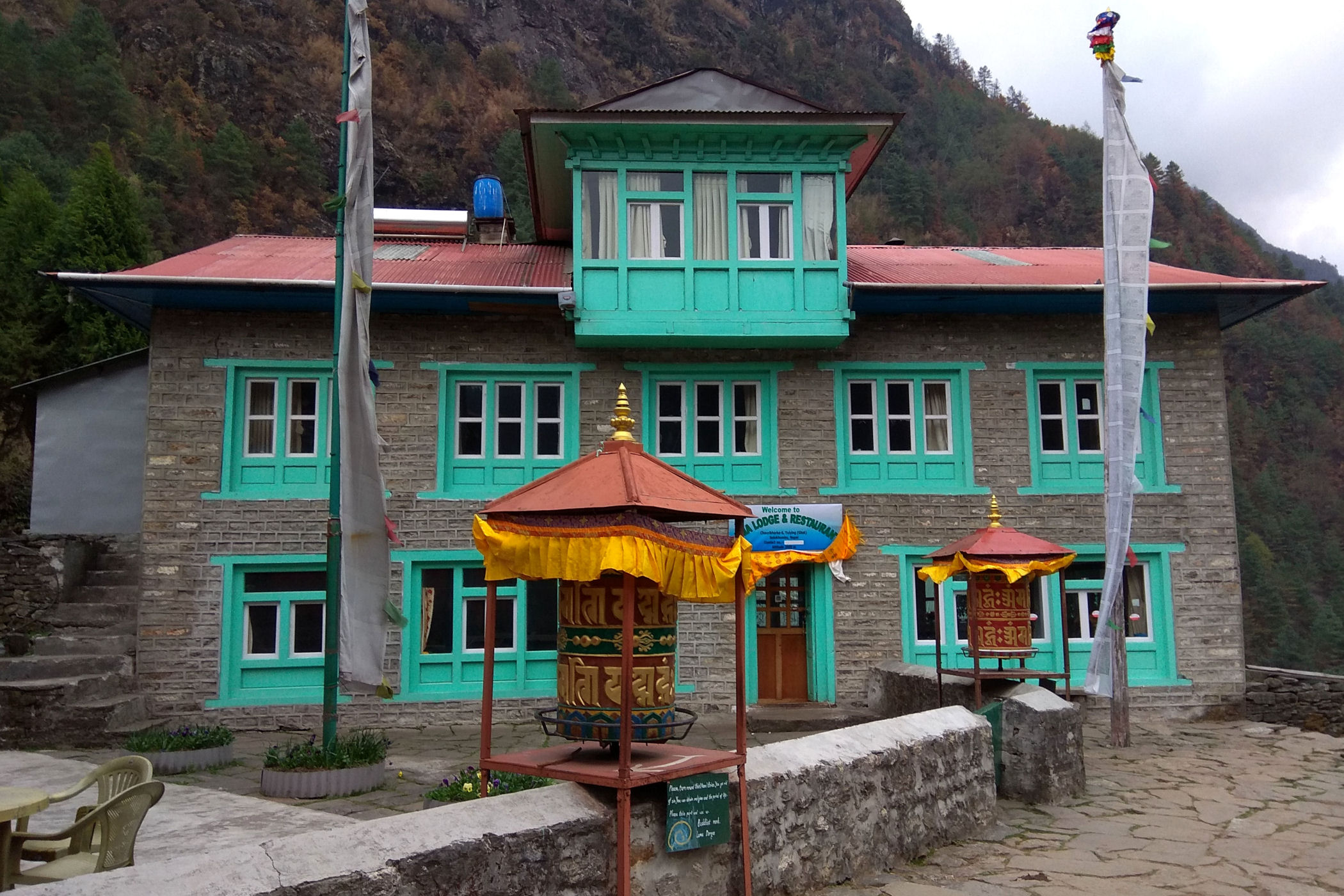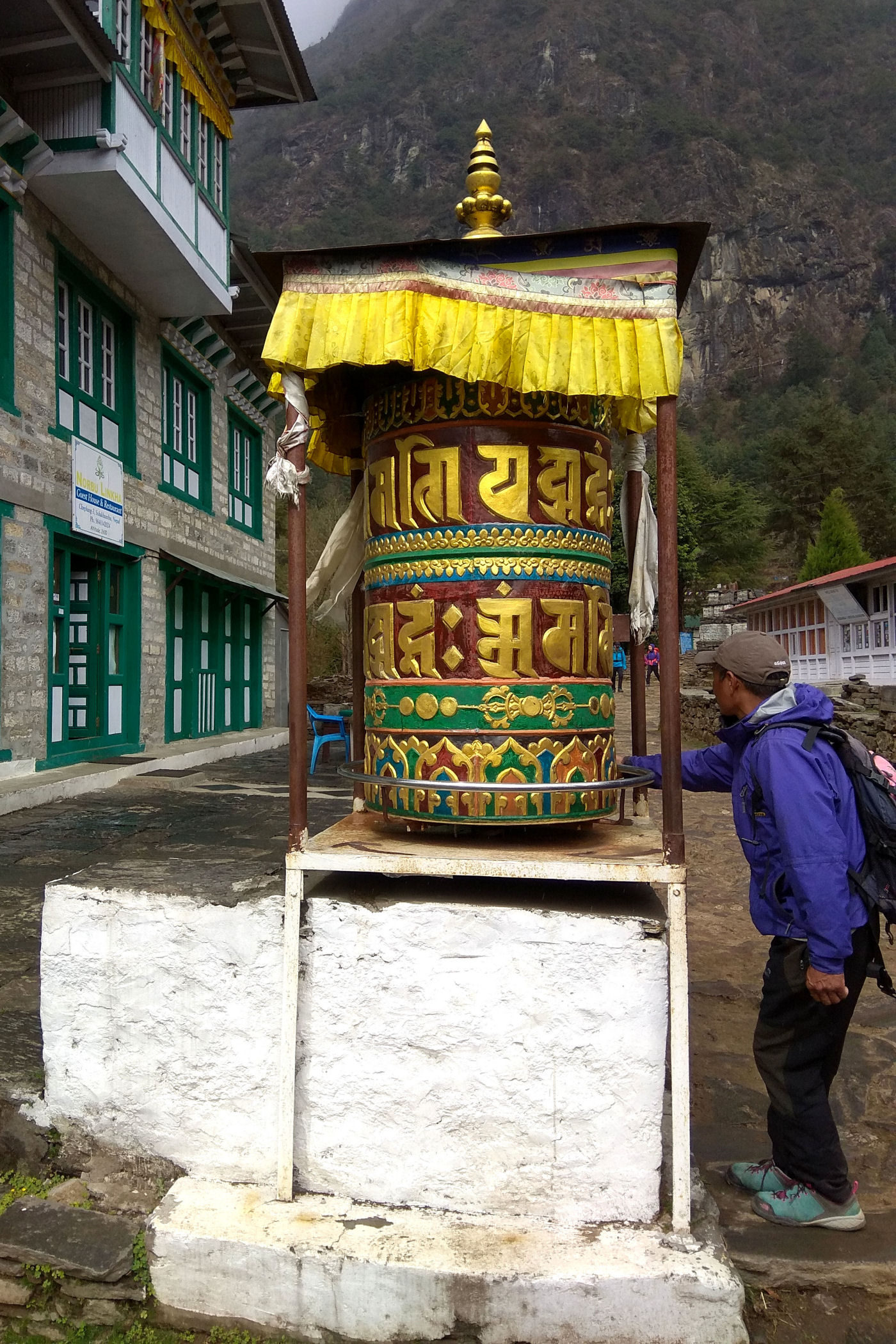 Kiedy lądujemy okazuje się, że część bagaży nie dotarła, oczekujemy więc na kolejne samoloty na schodach powyżej pasa startowego. Loty zostają jednak wstrzymane i 5 osób przez kolejne 3 dni musi sobie poradzić bez swoich rzeczy. Pobyt w Lukli zaczynamy od lunchu w MEET AND GREET (hotel i restauracja), której właścicielem jest szef agencji z którą wędrujemy, a potem ruszamy na pierwszą (najkrótszą) część naszej wędrówki.