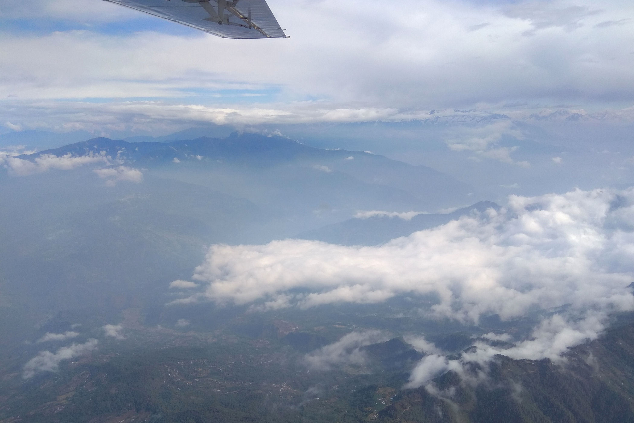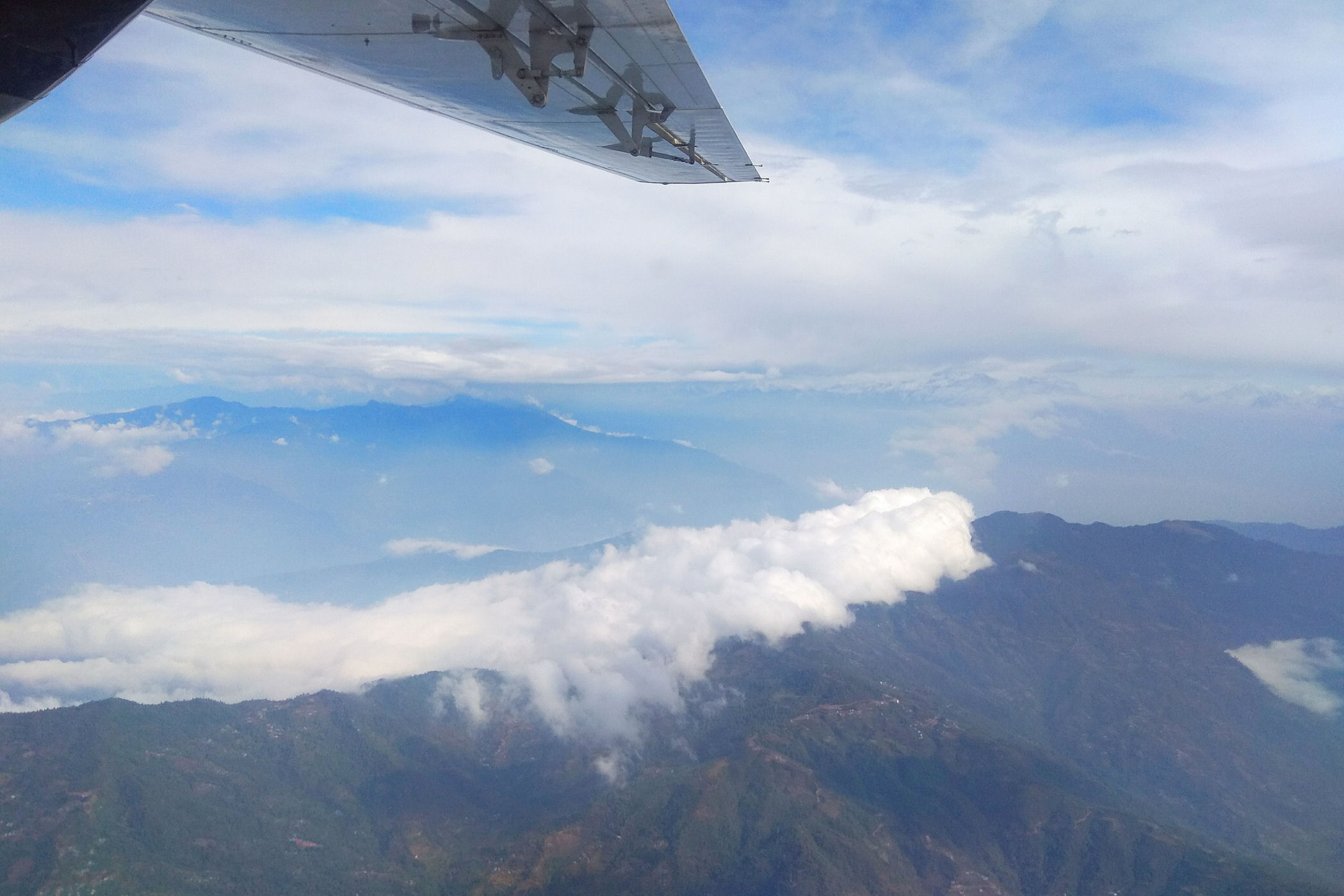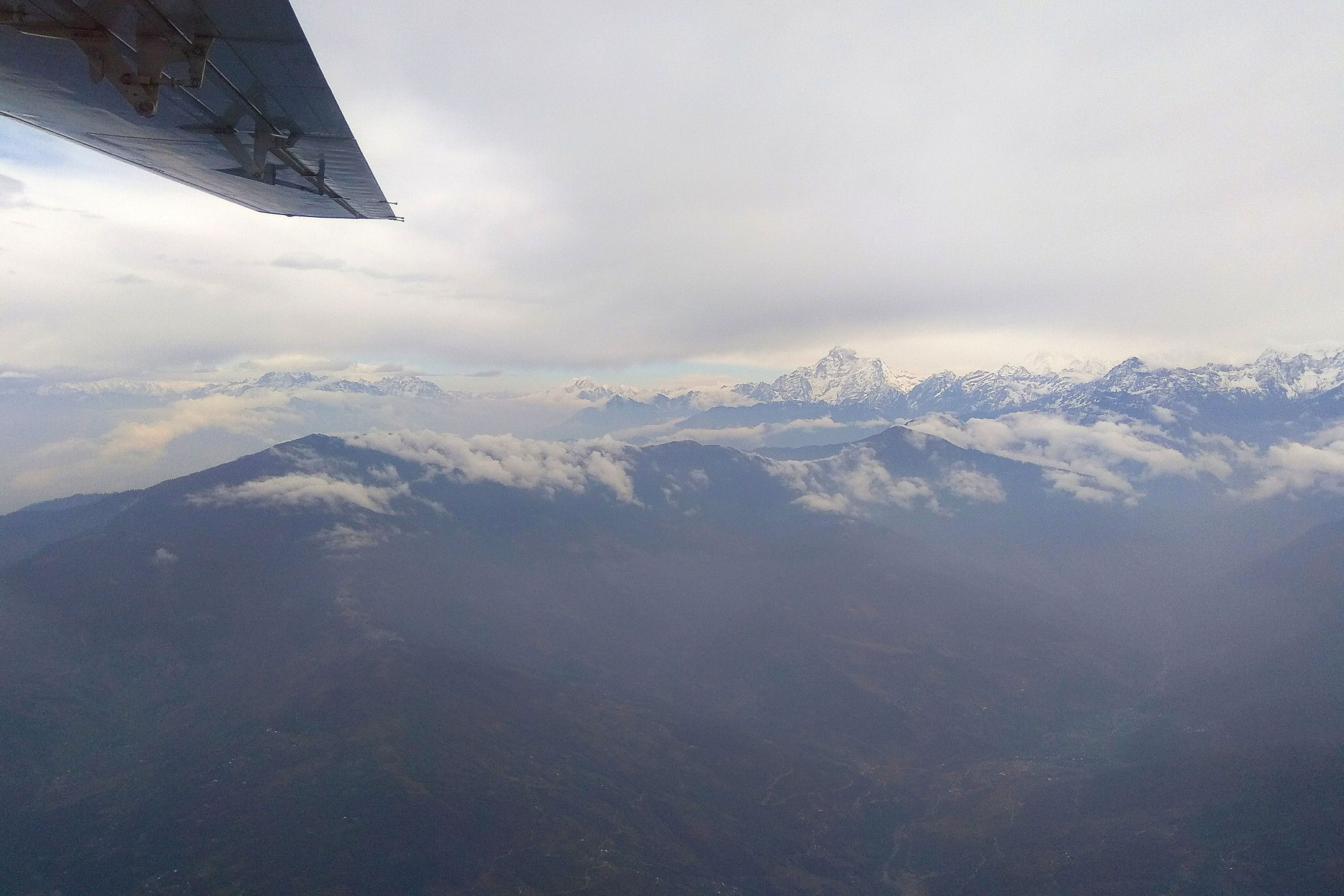 Lot trwa zaledwie 45 minut, ale takich widoków i emocji nie zaznamy podczas wielu innych dłuższych podróży. Wylatujemy ponad chmury i po prawej stronie pokazują się jak na pożegnanie nasze giganty. Żegnamy kolejno : Everest, Czo Oju oraz Gaurishankar , Dangnok Ri i wiele innych majestatycznych szczytów w Parku Narodowym Gaurishankar.