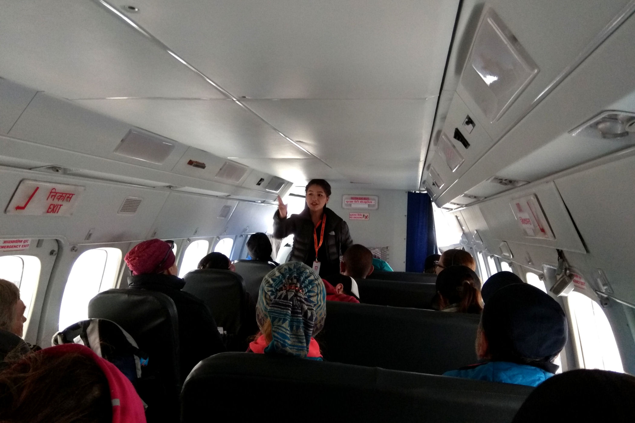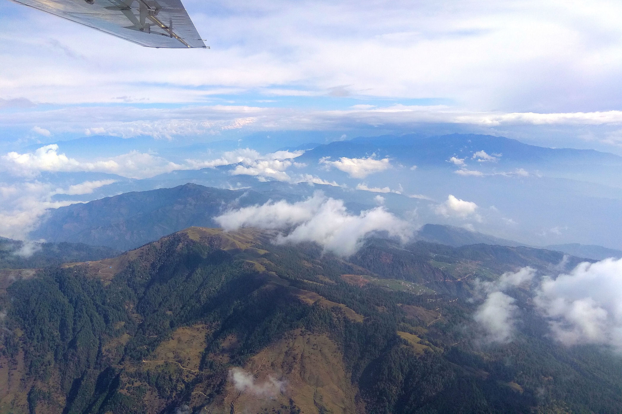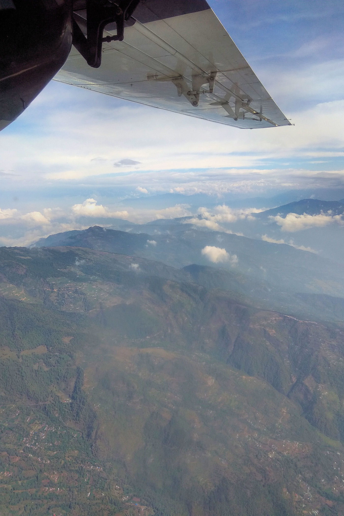 Lot trwa zaledwie 45 minut, ale takich widoków i emocji nie zaznamy podczas wielu innych dłuższych podróży. Wylatujemy ponad chmury i po prawej stronie pokazują się jak na pożegnanie nasze giganty. Żegnamy kolejno : Everest, Czo Oju oraz Gaurishankar , Dangnok Ri i wiele innych majestatycznych szczytów w Parku Narodowym Gaurishankar.