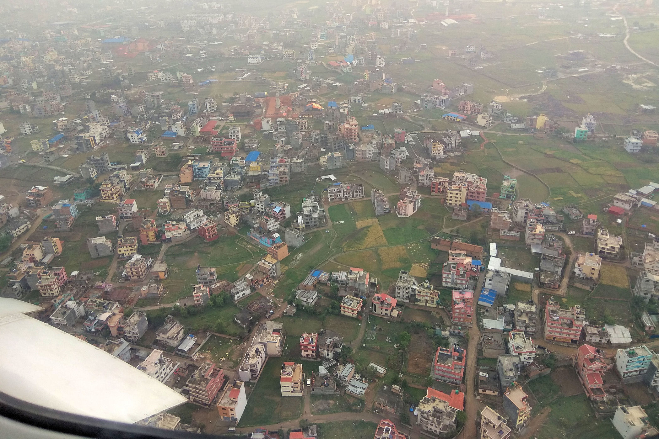 Przelot Lukla – Katmandu definitywnie kończy naszą przygodę z Himalajami. Jeszcze tylko ostatnie spojrzenie z góry na ośnieżone szczyty najwyższych gór świata i na Dolinę Katmandu.