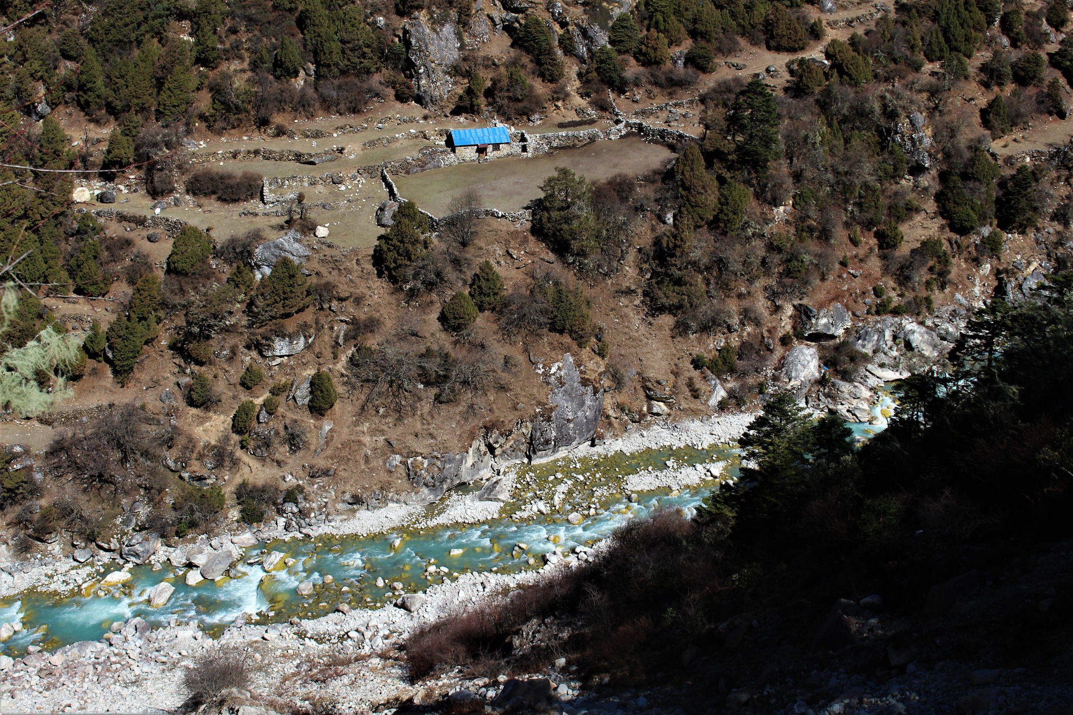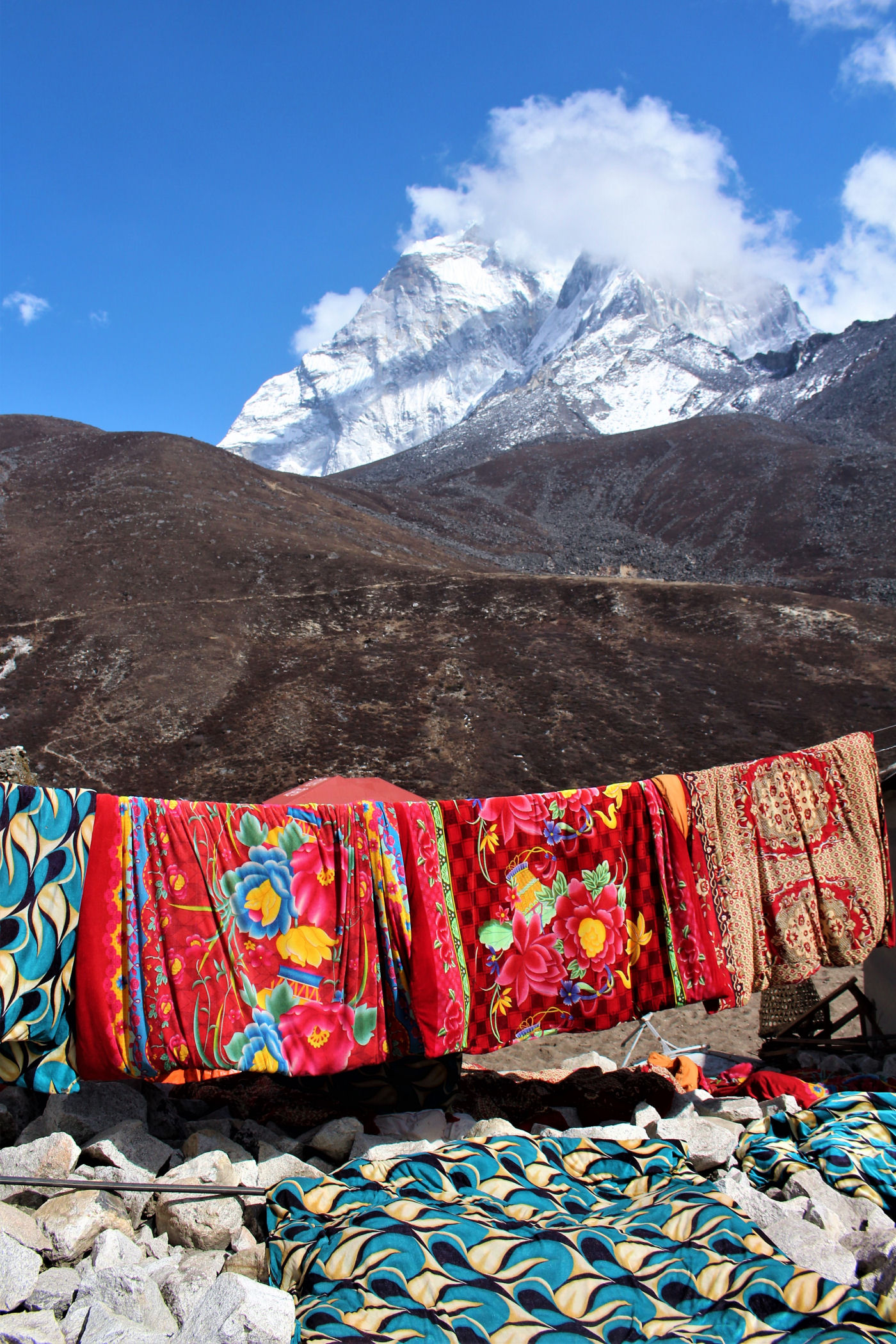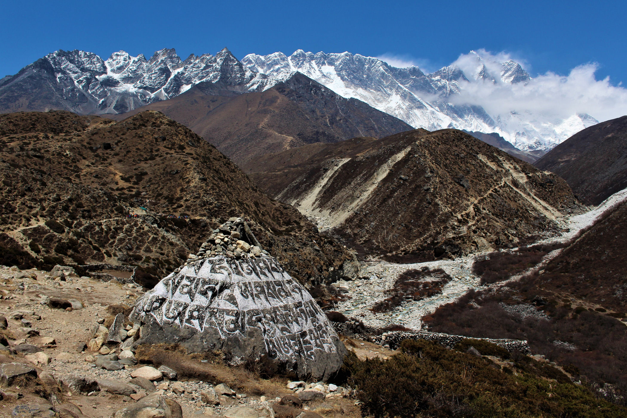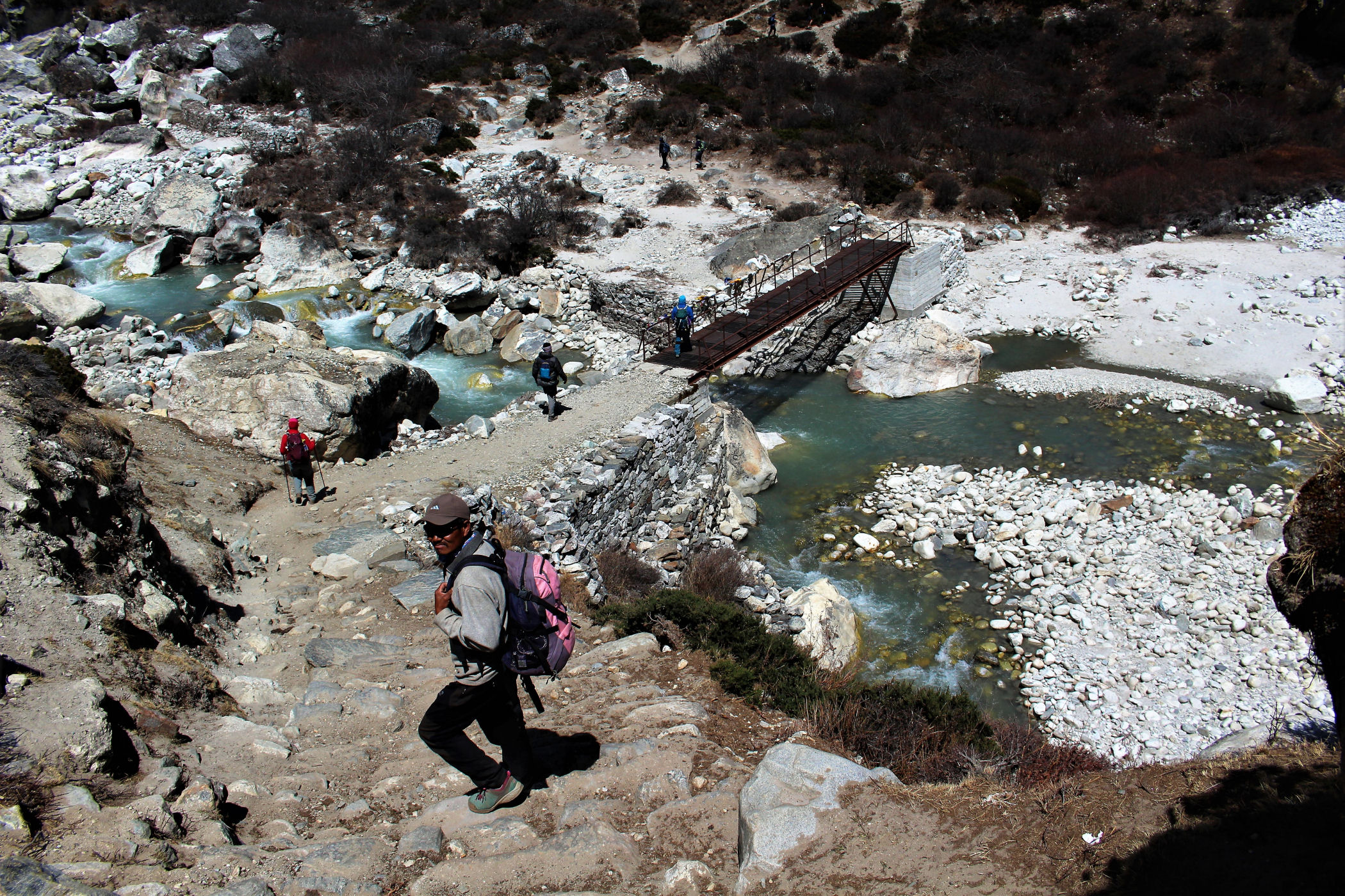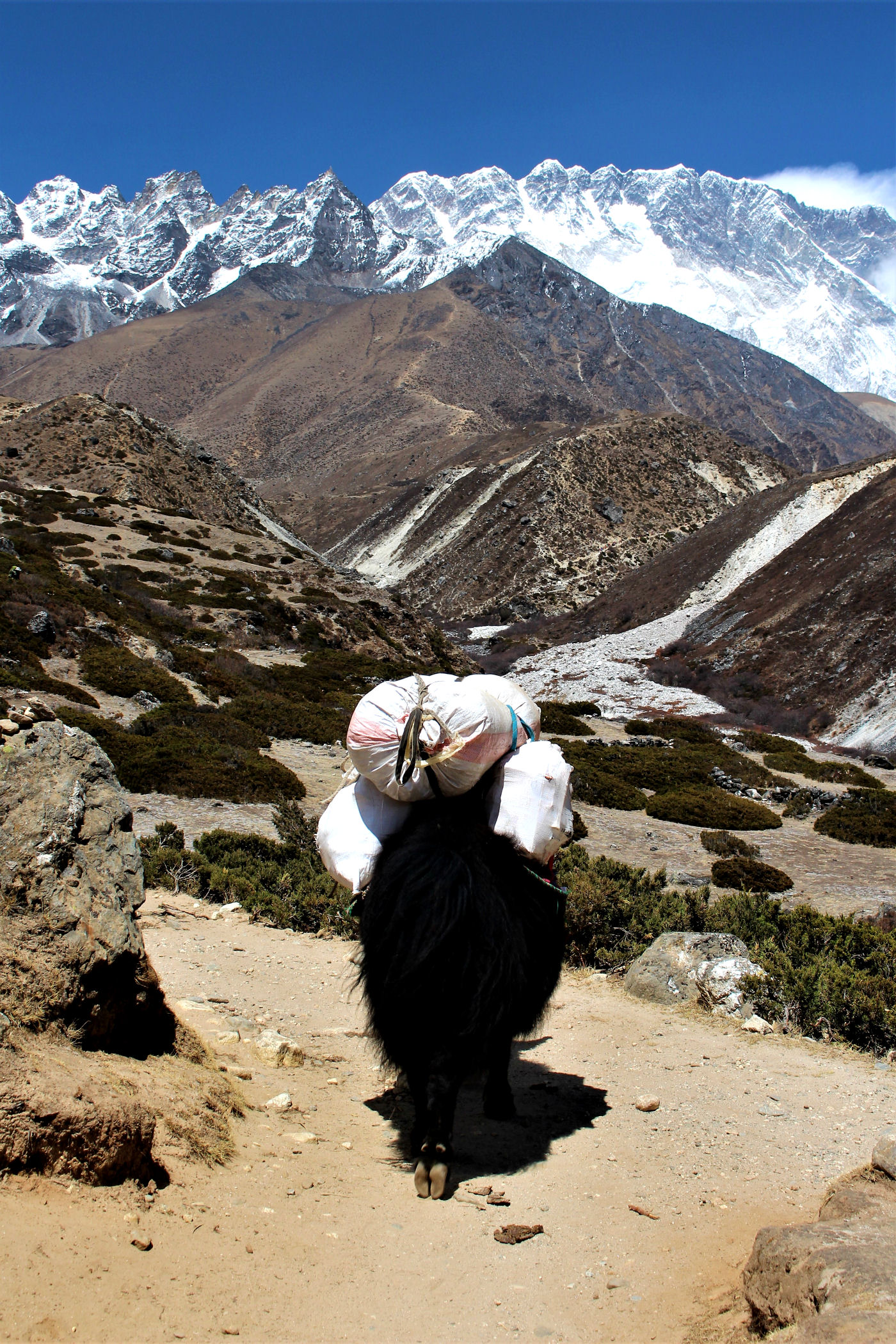 Ostatni odcinek do przejścia jest jeszcze piękniejszy. Krajobraz staje się coraz bardziej surowy, z coraz mniejszą ilością roślinności. W rozwidleniu potoków na białych jak śnieg kamieniach rozgrzanych w słońcu w otoczeniu śnieżnych gigantów i turkusowej wody robimy sobie jeszcze mały odpoczynek, aby potem prosto skierować się już do naszego dzisiejszego celu – Dingboche.