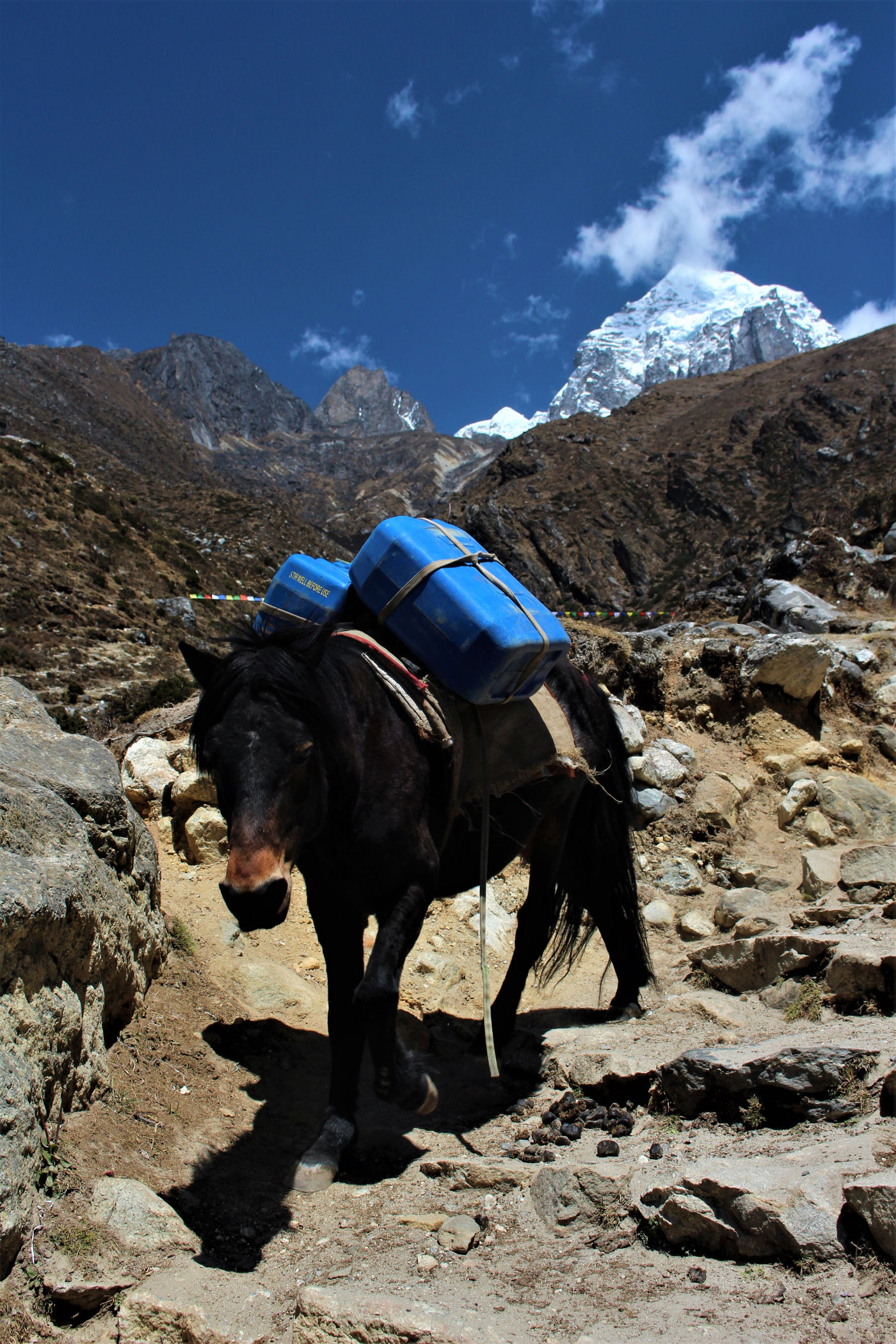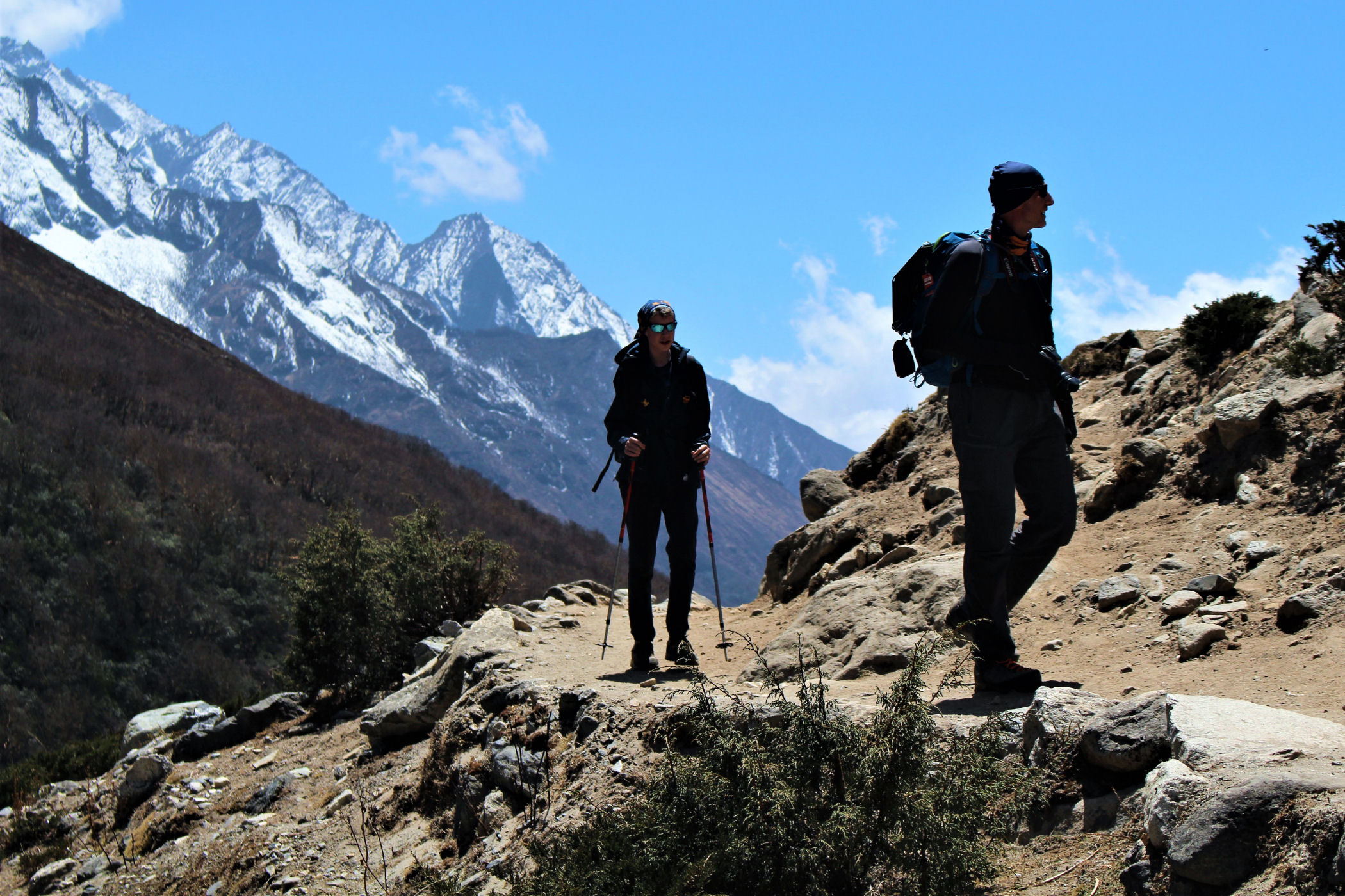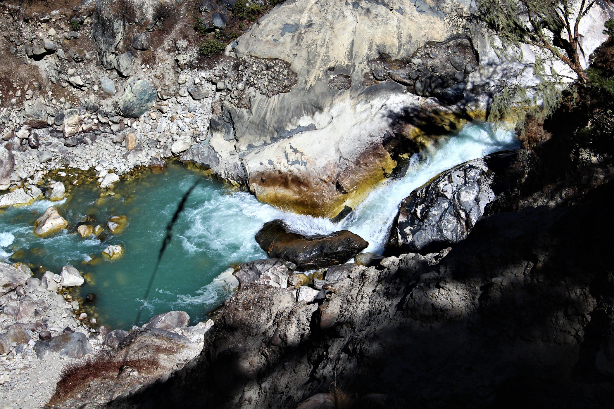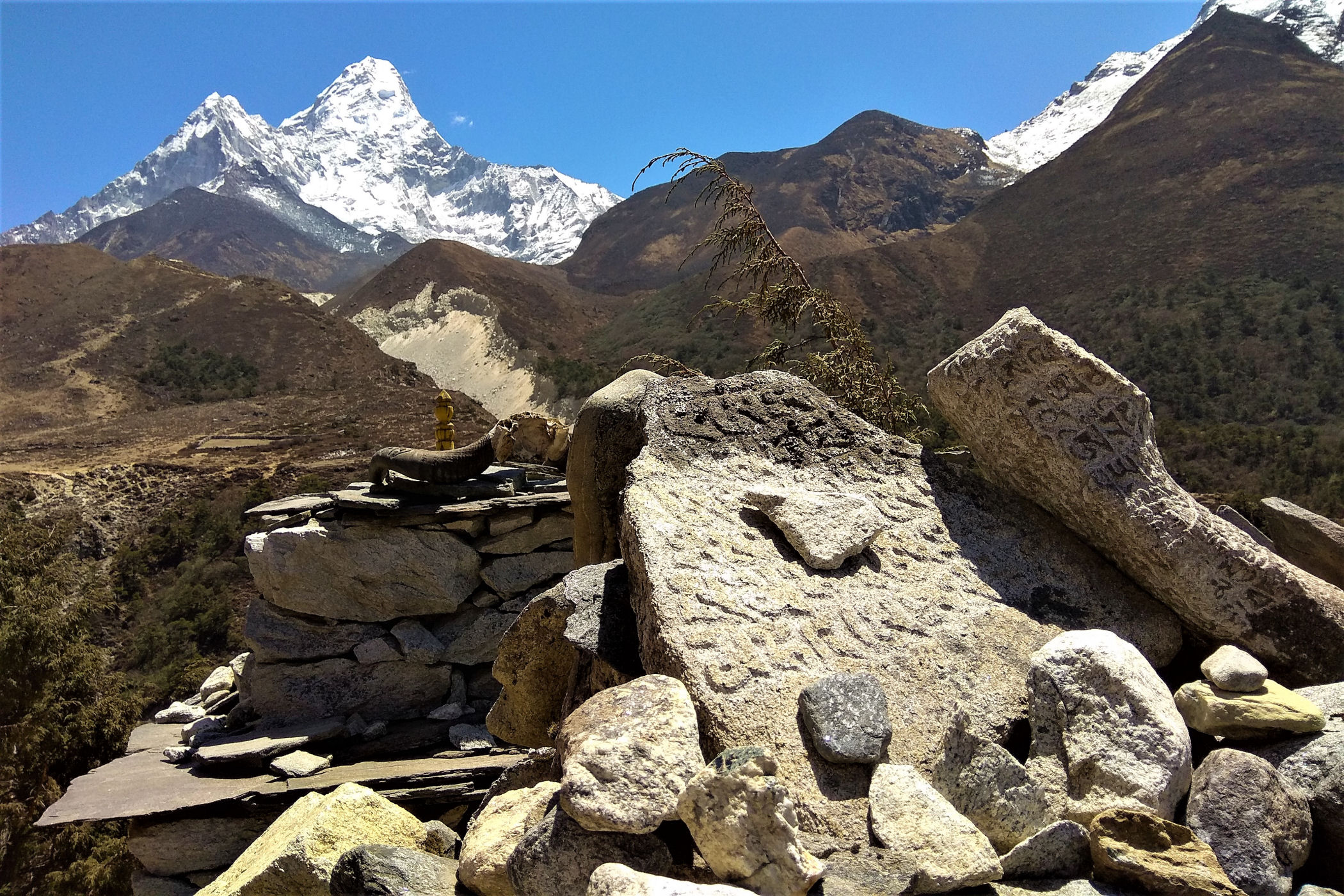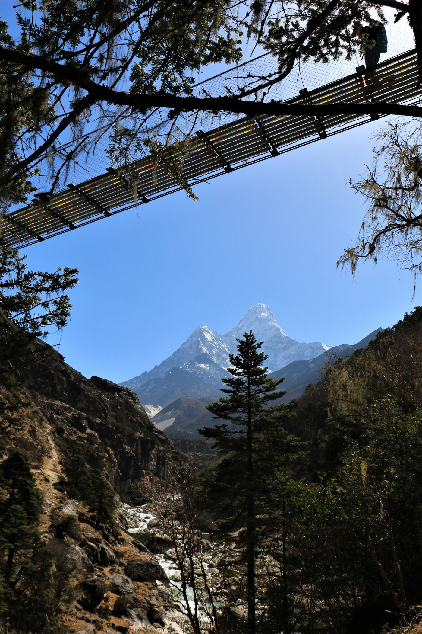 Ostatni odcinek do przejścia jest jeszcze piękniejszy. Krajobraz staje się coraz bardziej surowy, z coraz mniejszą ilością roślinności. W rozwidleniu potoków na białych jak śnieg kamieniach rozgrzanych w słońcu w otoczeniu śnieżnych gigantów i turkusowej wody robimy sobie jeszcze mały odpoczynek, aby potem prosto skierować się już do naszego dzisiejszego celu – Dingboche.