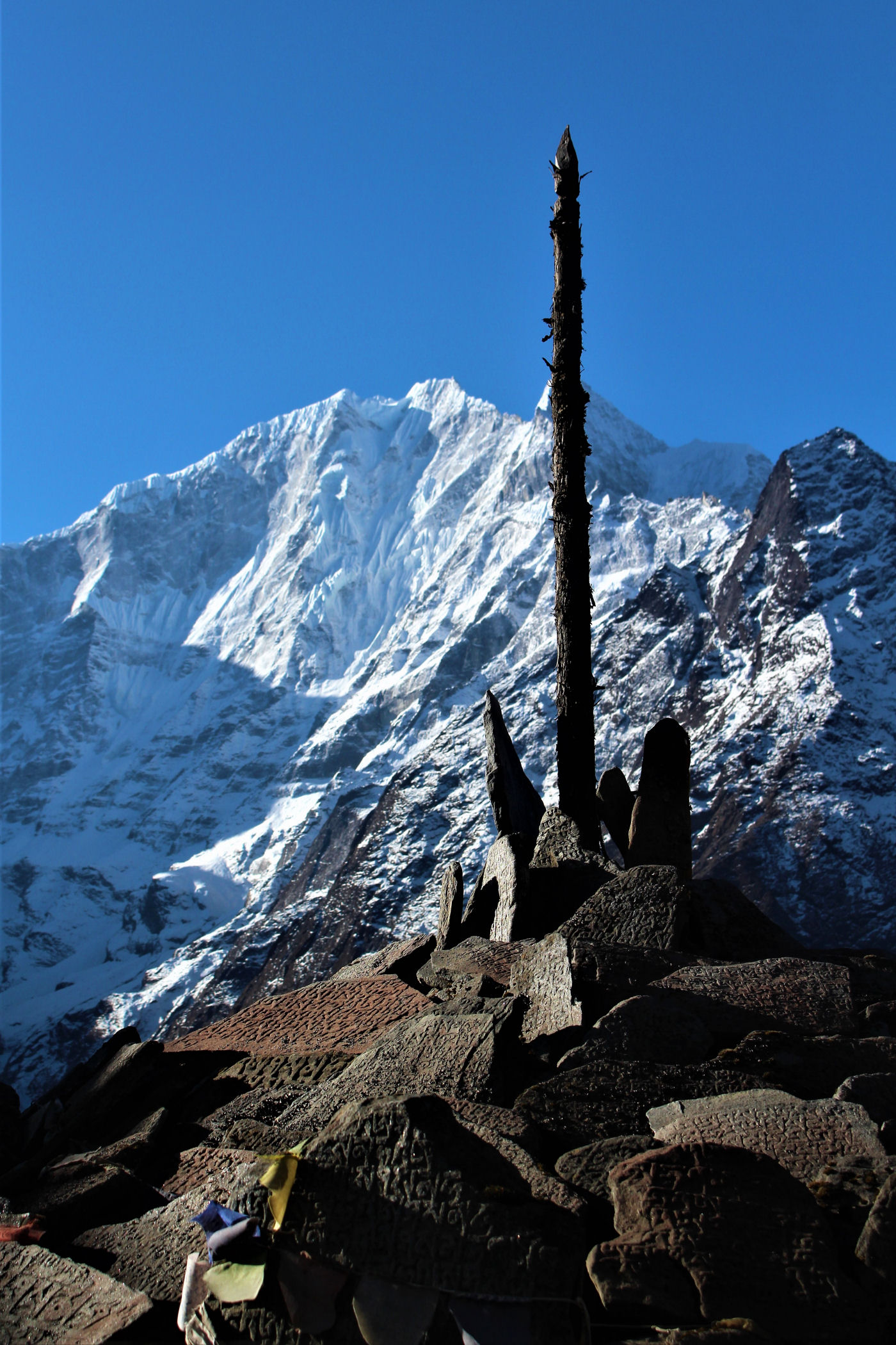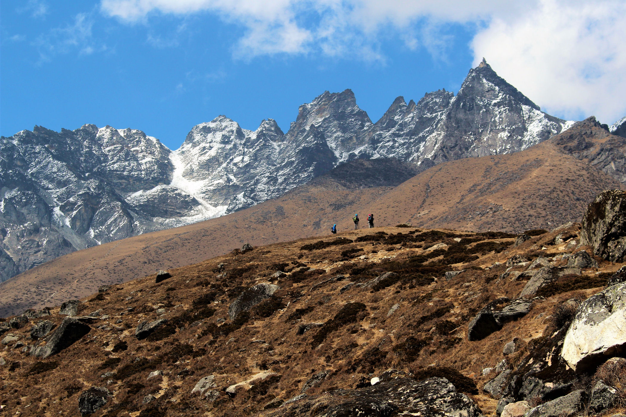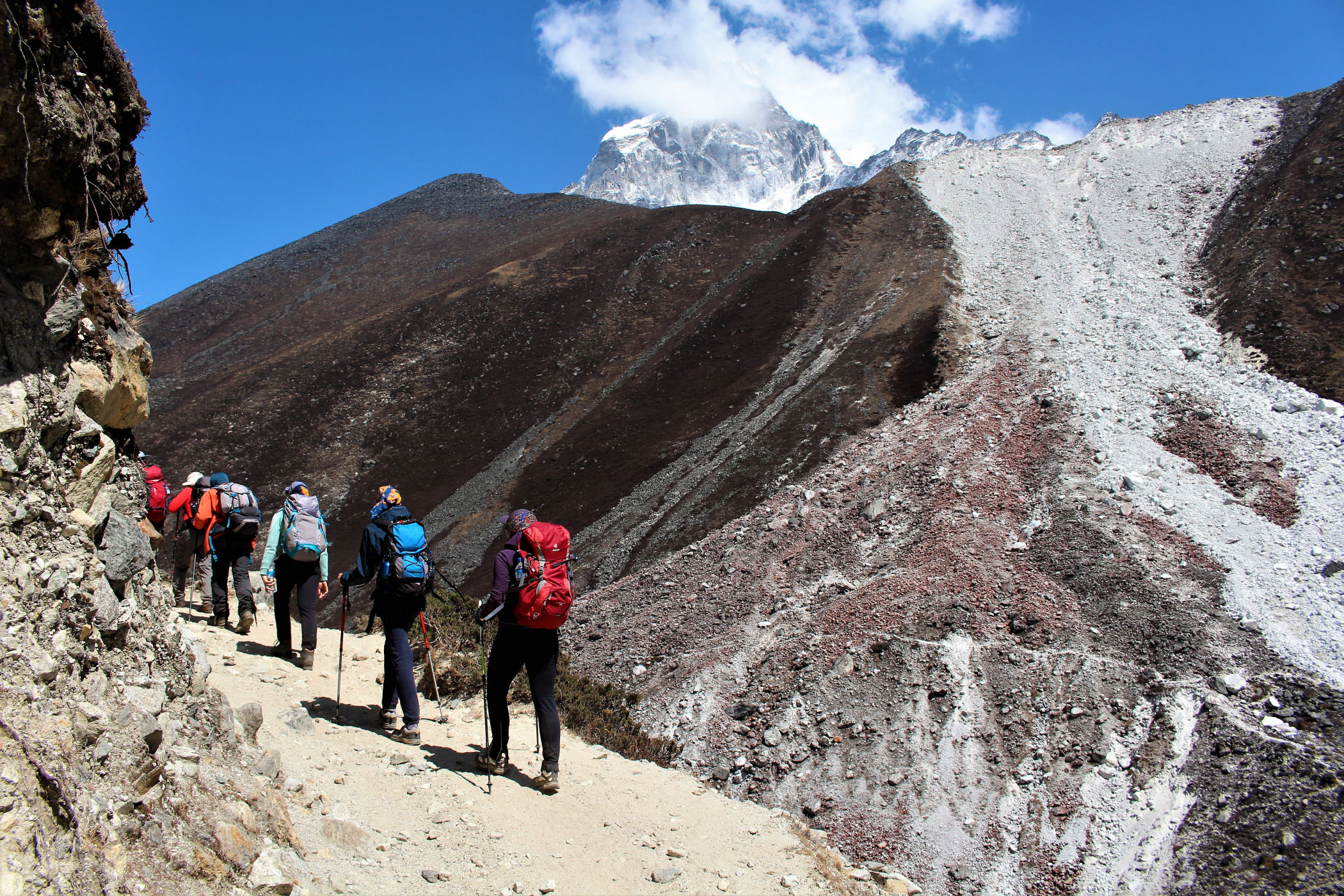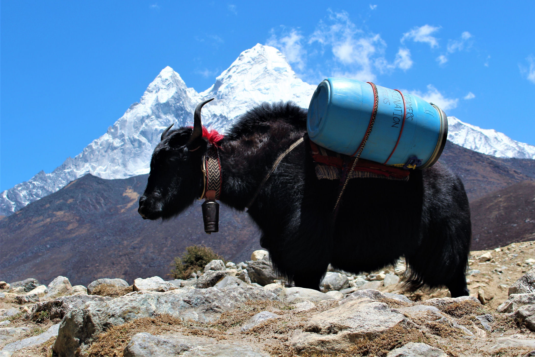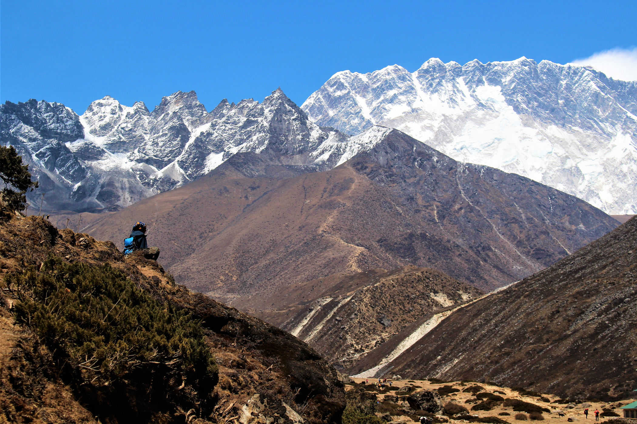 Ostatni odcinek do przejścia jest jeszcze piękniejszy. Krajobraz staje się coraz bardziej surowy, z coraz mniejszą ilością roślinności. W rozwidleniu potoków na białych jak śnieg kamieniach rozgrzanych w słońcu w otoczeniu śnieżnych gigantów i turkusowej wody robimy sobie jeszcze mały odpoczynek, aby potem prosto skierować się już do naszego dzisiejszego celu – Dingboche.