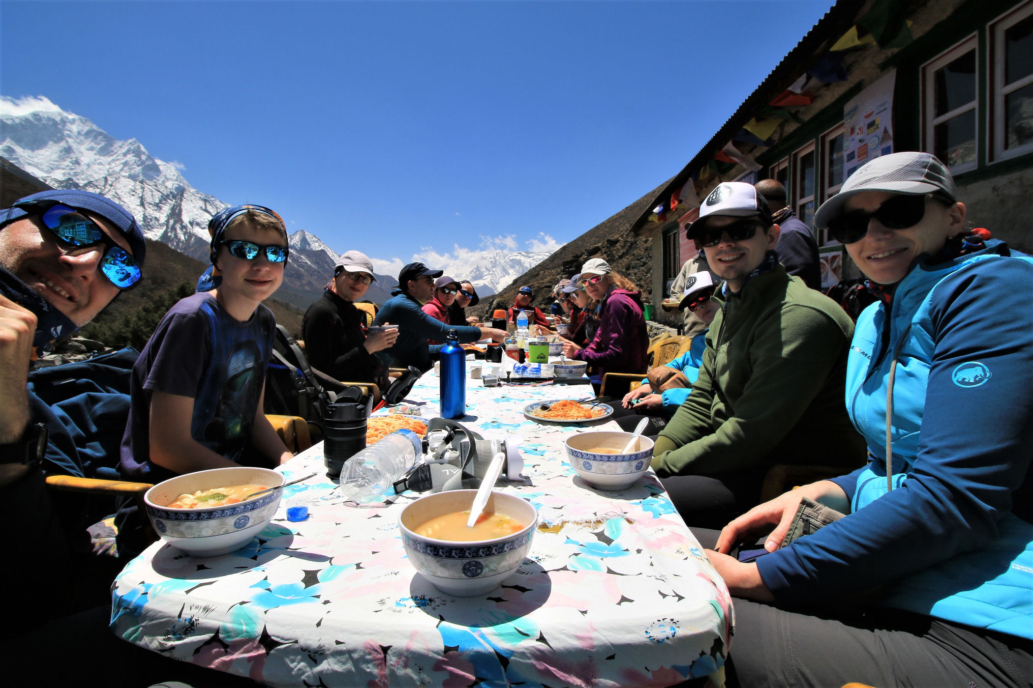 Krótka przerwa na nabranie sił i w drogę. Przed nami magiczna bariera 4000m i kolejne fantastyczne widoki. 1,5 godziny później „sherpa soup” w Everest Kitchen na wysokości 4040m . Lunch jedzony w blasku słońca z takimi widokami smakuje nieziemsko. Aż nie chce się stąd odchodzić, ale nie ma wyjścia, przed nami ostatni odcinek drogi.