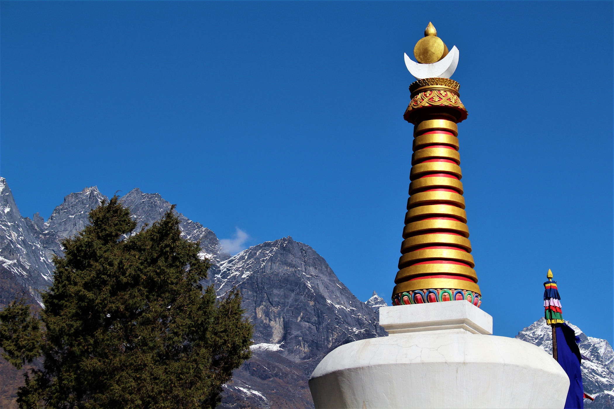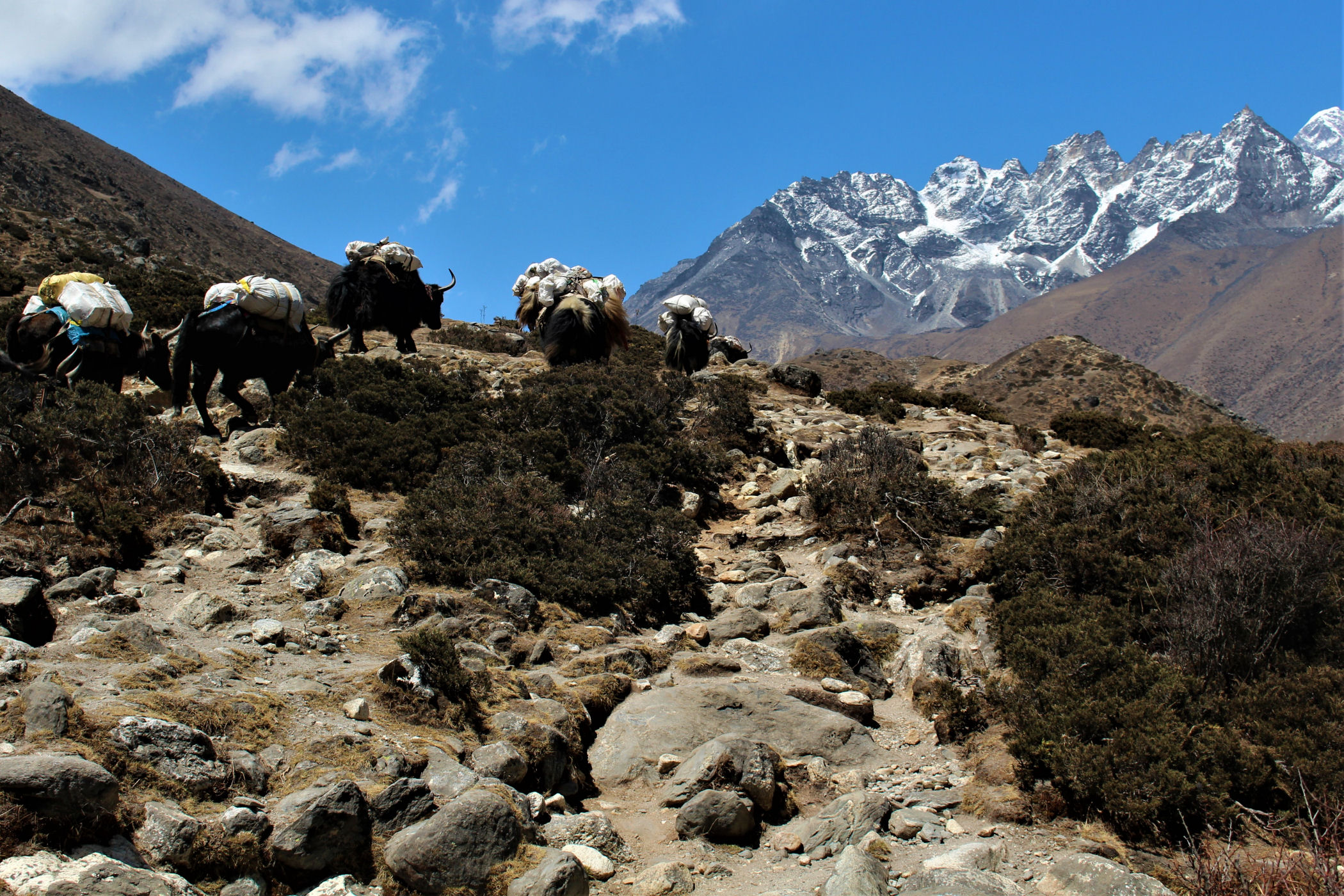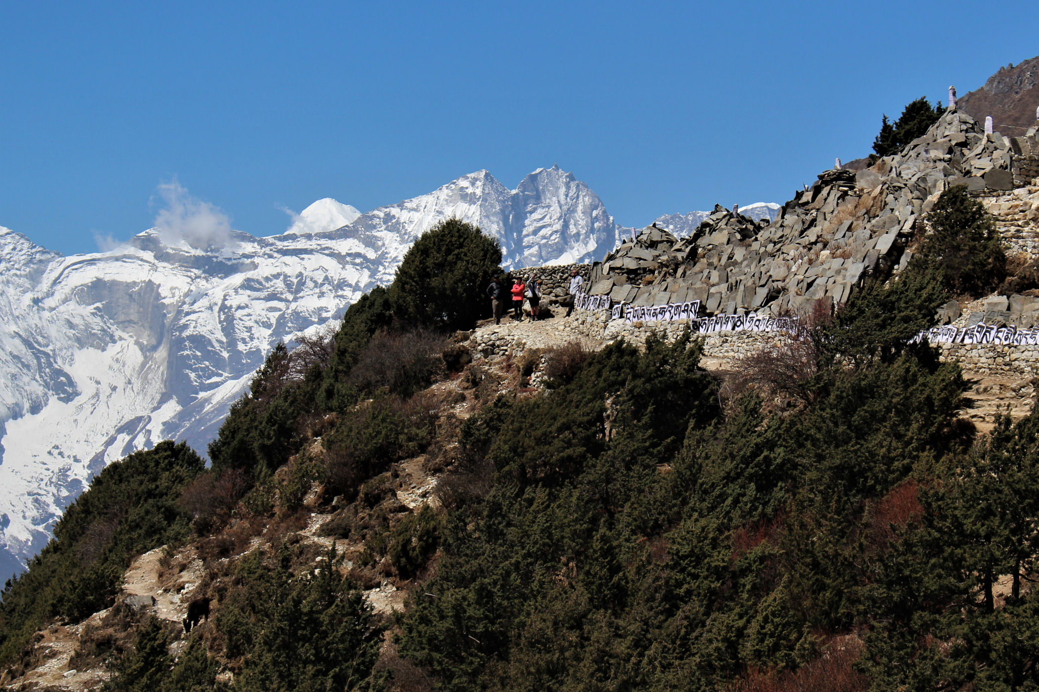 Czas ruszyć w drogę . Początkowo szlak prowadzi nas przez Las Rododendronowy, niestety, jesteśmy już na wysokości prawie 4 tys. metrów – kwiaty są więc dopiero w pączkach. Droga przez las prowadzi w dół, dopiero po przejściu kolejnego mostu wiszącego zaczynamy na nowo nabierać wysokości. Pierwsza przerwa na odpoczynek i tradycyjny ciepły napój przypada w miejscowości Panboche w Highland Sherpa Resort.