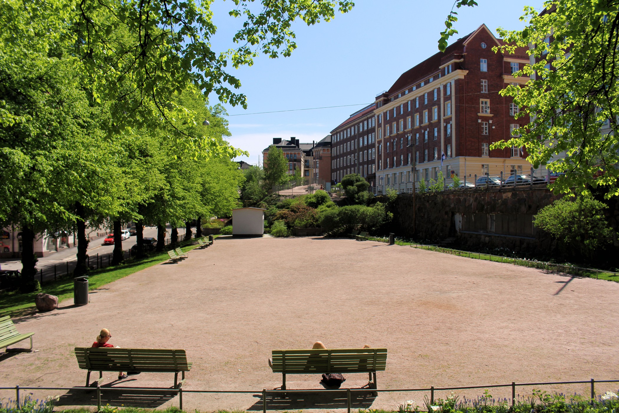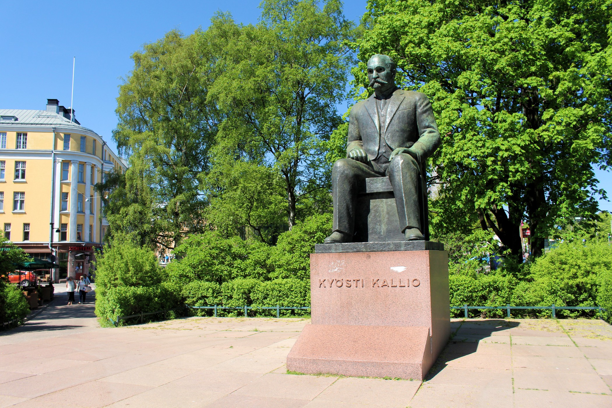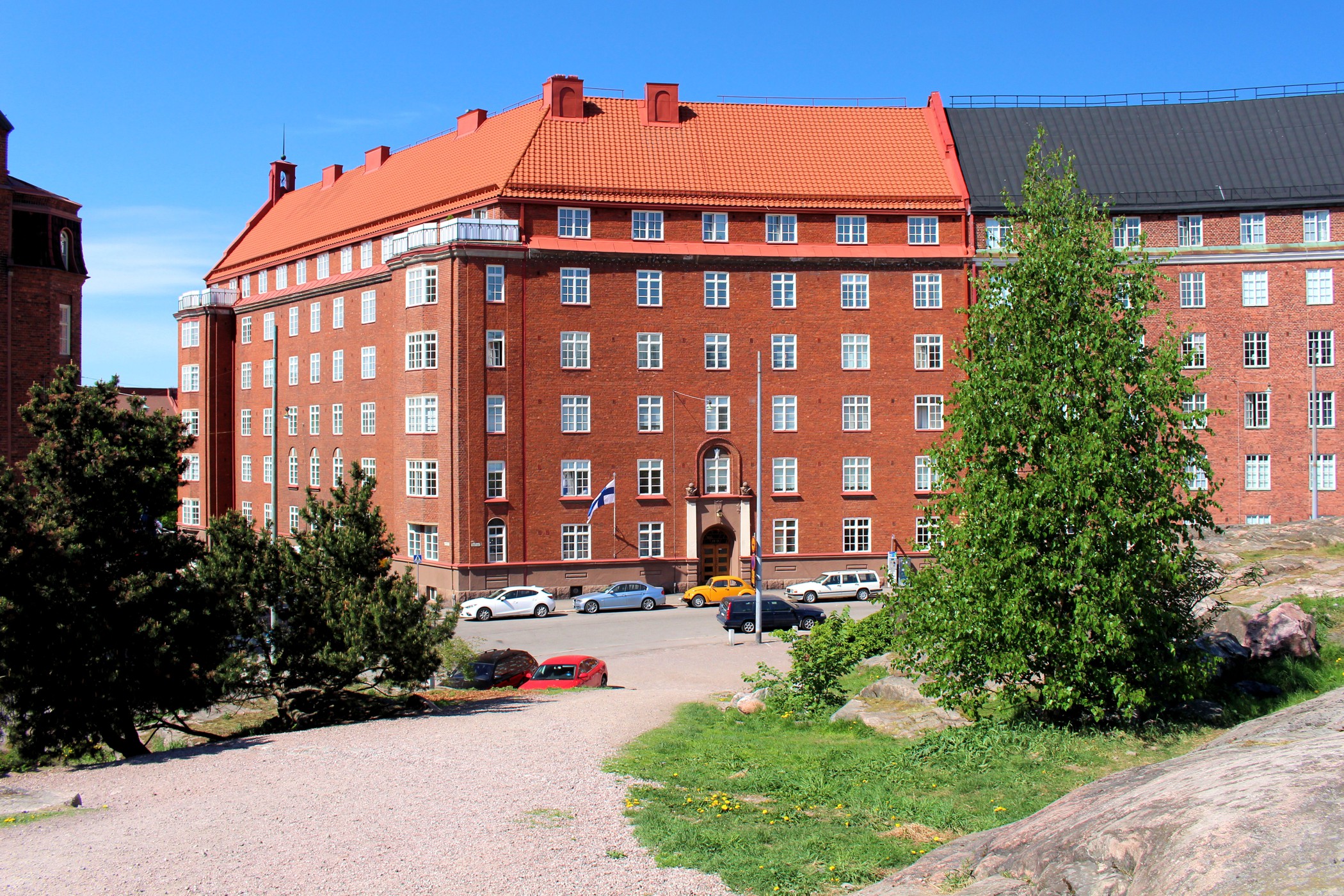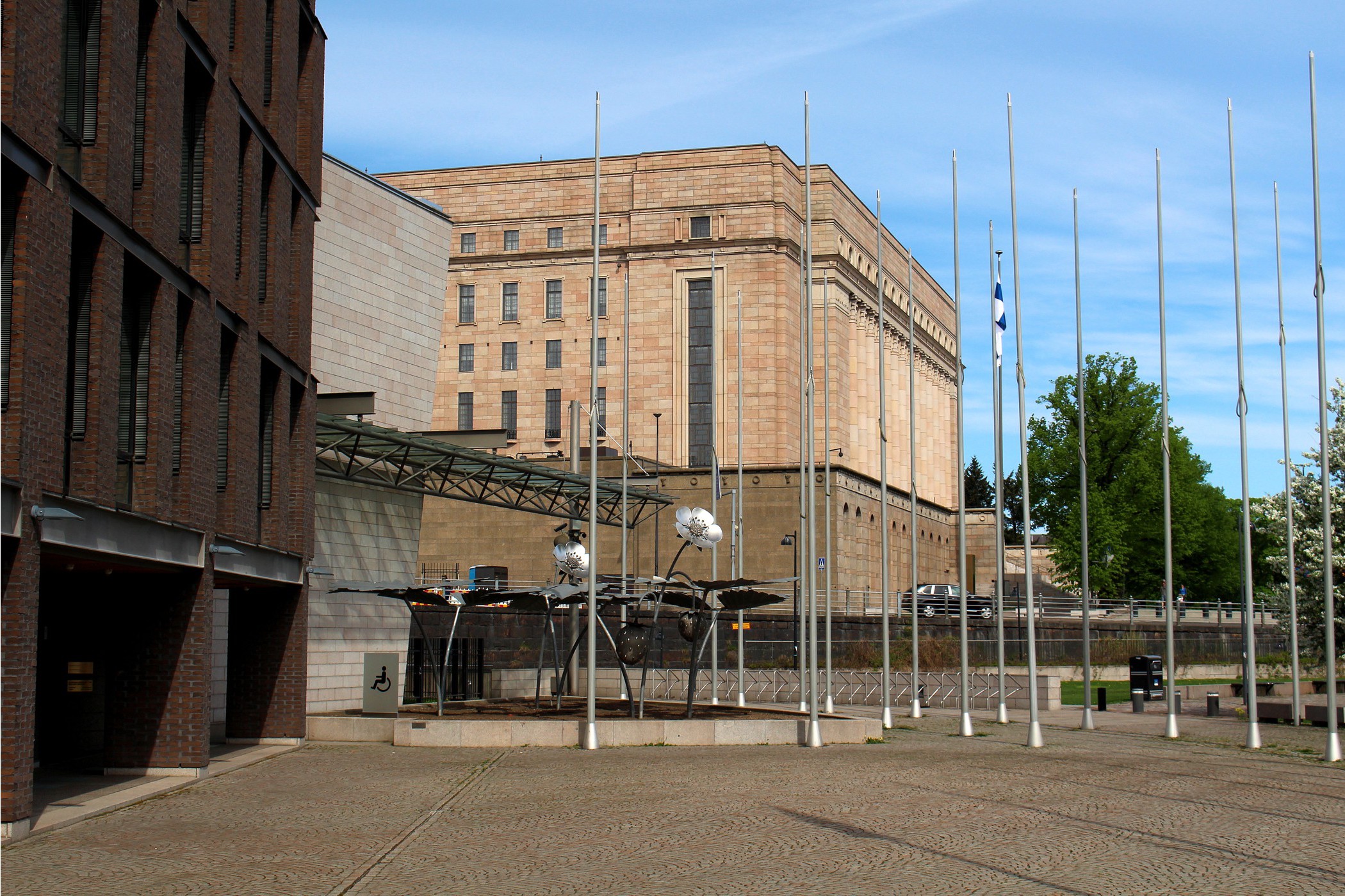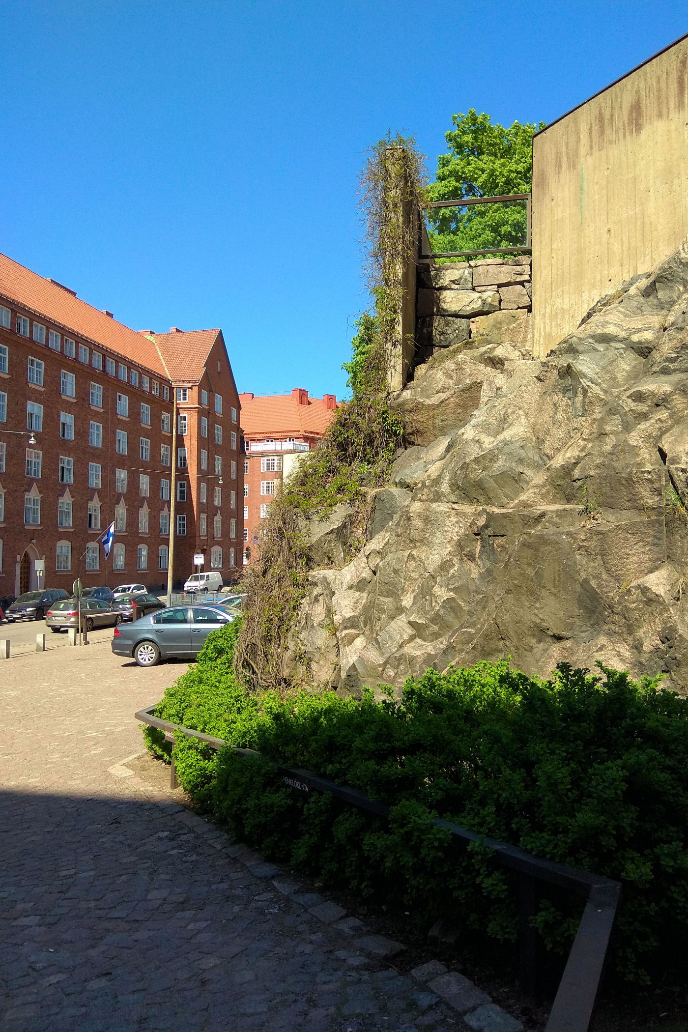 Idąc na wschód od Kościoła Temppeliaukio mijamy kolejno skwer Nervanderinpuistikko oraz Museonpuisto ( ze skałami pośrodku ). Na ich północnym krańcu znajduje się budynek Fińskiego Muzeum Narodowego. Niestety nie dysponujemy czasem, aby go zwiedzić, a szkoda, bo muzeum przedstawia historię Finlandii od czasów prehistorycznych do współczesności. Obecny budynek muzeum został zaprojektowany przez fińskich architektów, budynek wzniesiono w latach 1905–1910 a muzeum otwarto w 1916. My udajemy się dalej na południe. Tu kolejny park z rzeźbą Kyösti Kallion muistopatsas, a kawałek dalej budynek Parlamentu .