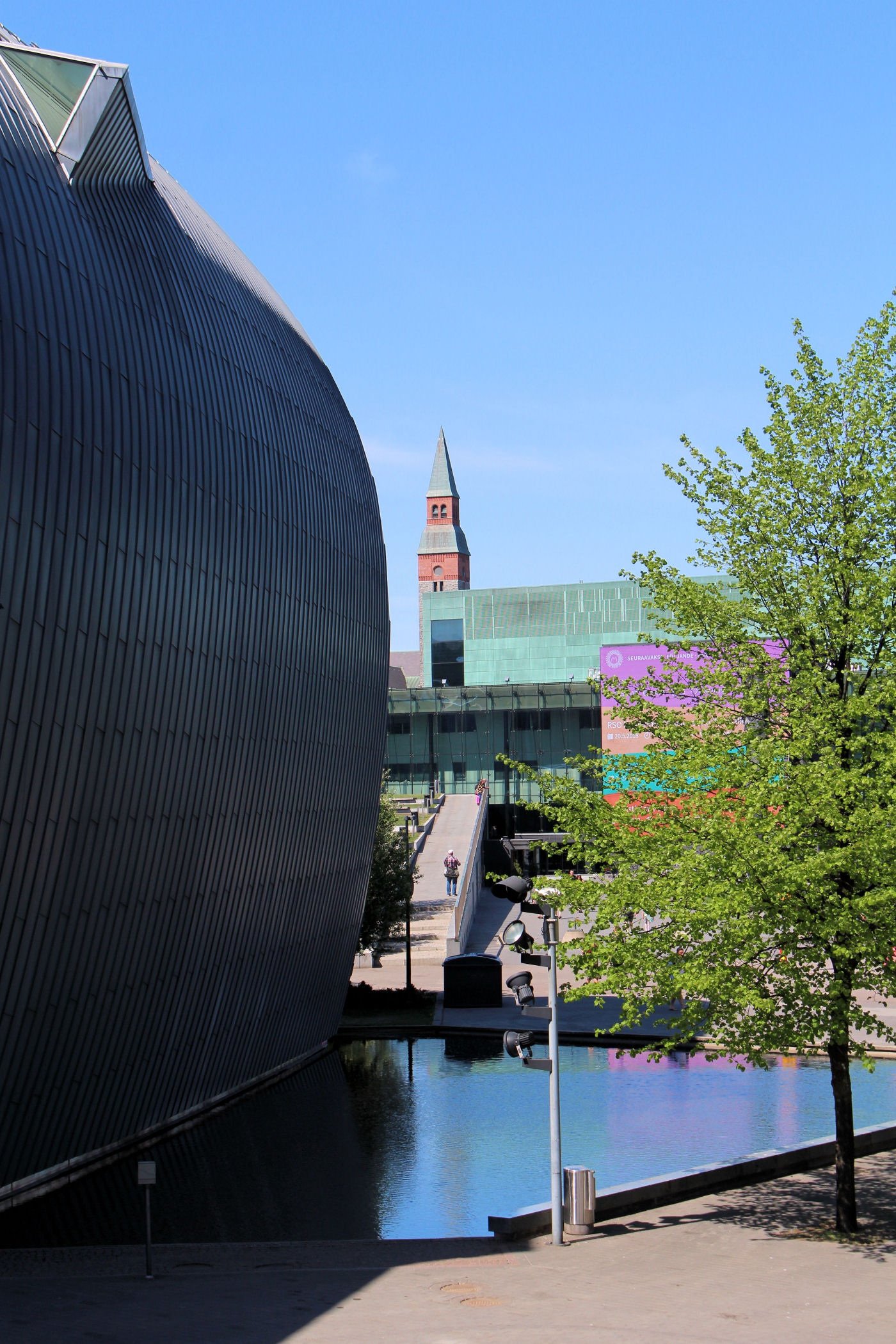 Kawałek dalej na południe od centrum Muzyki odnajdujemy kolejny ciekawy obiekt – to Kiasma (Muzeum Sztuki Współczesnej). Jego nazwa Kiasma, po fińsku „chiasma”, nawiązuje do podstawowej idei konceptualnej jej architekta Steven Holla. Kiasma jest częścią Fińskiej Galerii Narodowej. W 1992 r. odbył się konkurs na projekt architektoniczny, prace budowlane rozpoczęły się w 1996 r., a muzeum zostało otwarte w maju 1998 r. Na placu przed muzeum znajduje się posąg konny fińskiego prezydenta Carla Gustafa Emila Mannerheima.