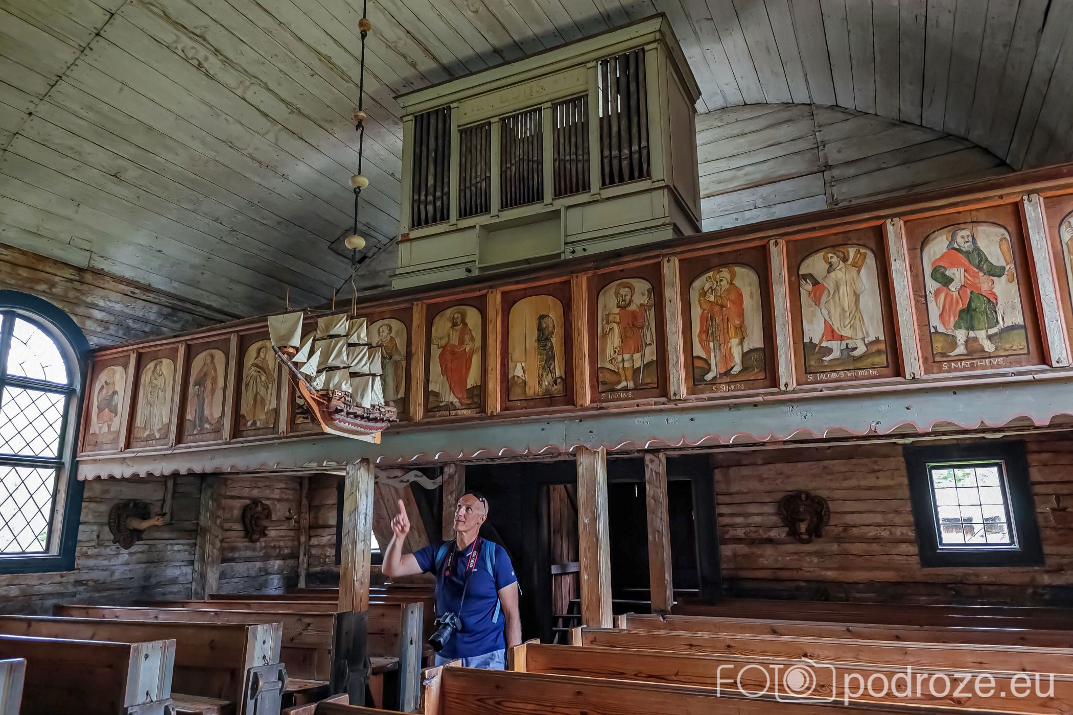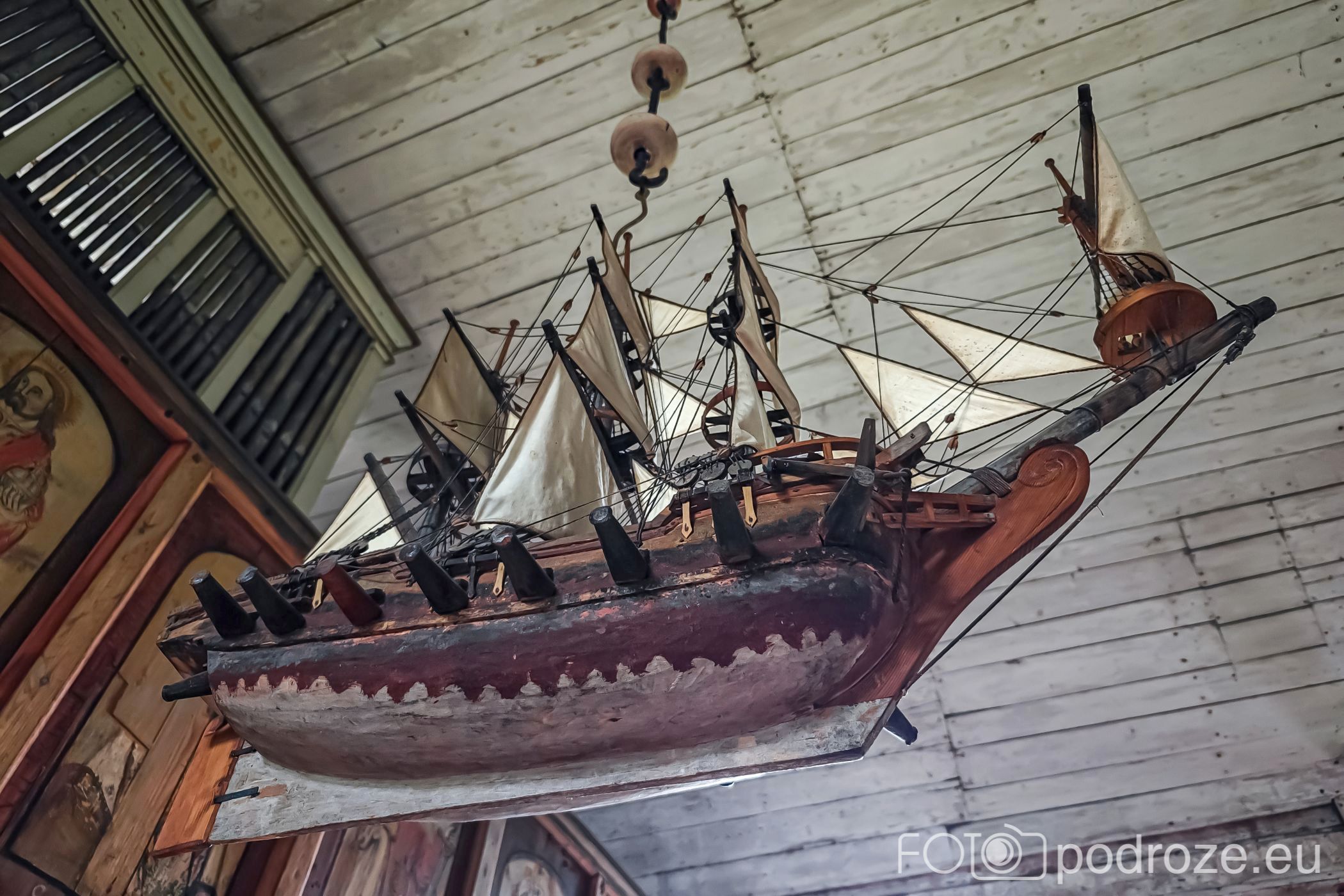 W środku zachowały się elementy z XVII i XVIII wieku: ambona, plafon, rzeźby i 11 obrazów olejnych oraz barierka chóru z motywami Chrystusa i apostołów. Całość dopełniają detale takie jak wiszące przy suficie modele statków, niezwykłe świeczniki w kształcie dłoni.