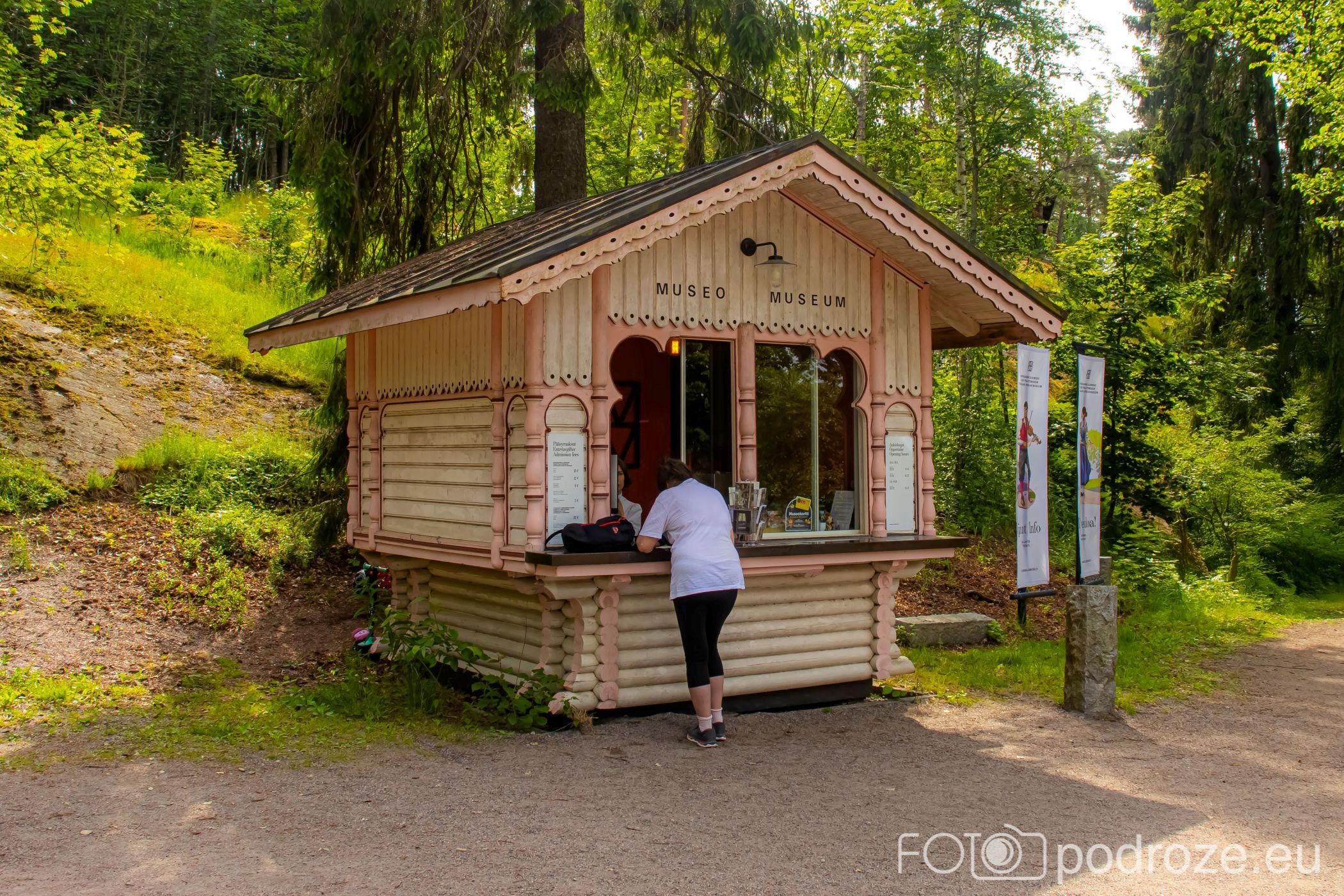 Po przejściu przez malowniczy most Fölisöbron, tuż przy początku ścieżki prowadzącej w głąb wyspy znajduje się kasa biletowa. To niewielki, drewniany budynek nawiązujący stylem do architektury skansenu. To właśnie tutaj można nie tylko kupić bilety wstępu, lecz także otrzymać mapę terenu, zdobyć informacje o zwiedzaniu z przewodnikiem oraz nabyć pamiątki. W sąsiedztwie kasy usytuowana jest również restauracja Seurasaari Ravintola, która mieści się w eleganckim, zabytkowym drewnianym budynku, dlatego stanowi doskonałe miejsce na odpoczynek przed lub po zwiedzaniu. Cała ta infrastruktura wejściowa została zaprojektowana w taki sposób, aby subtelnie wkomponować się w leśno-nadmorski krajobraz wyspy, a jednocześnie nie zakłócać jej naturalnego uroku.