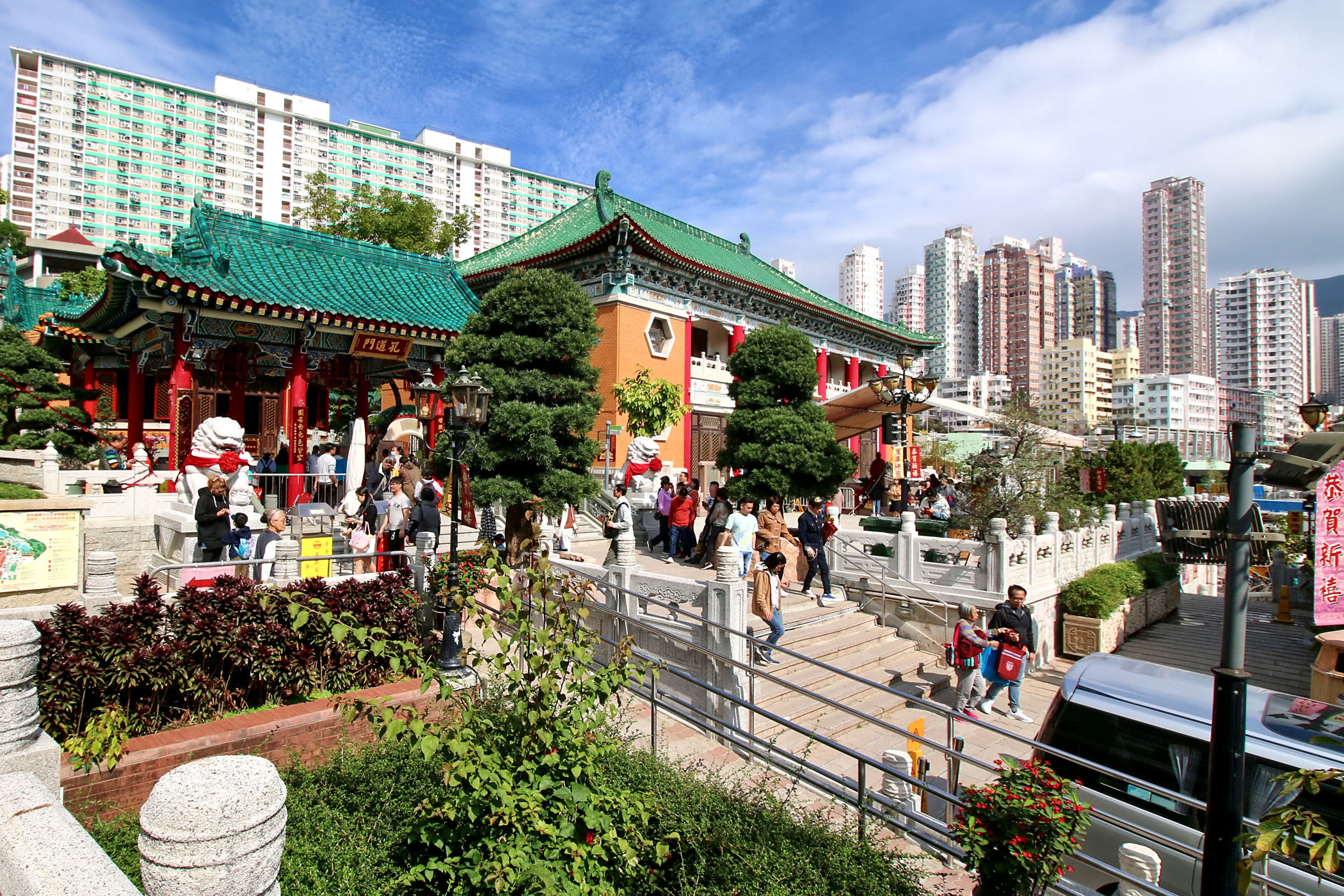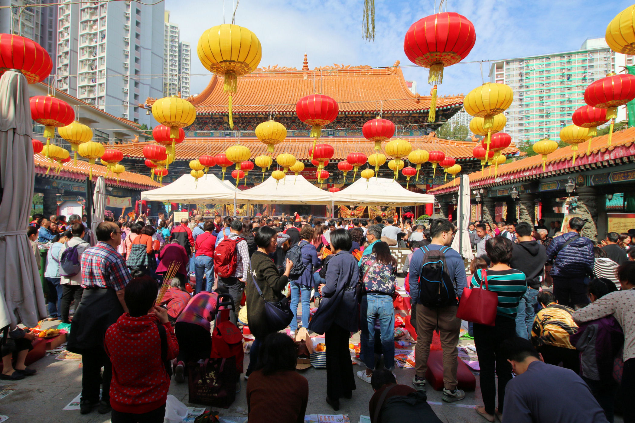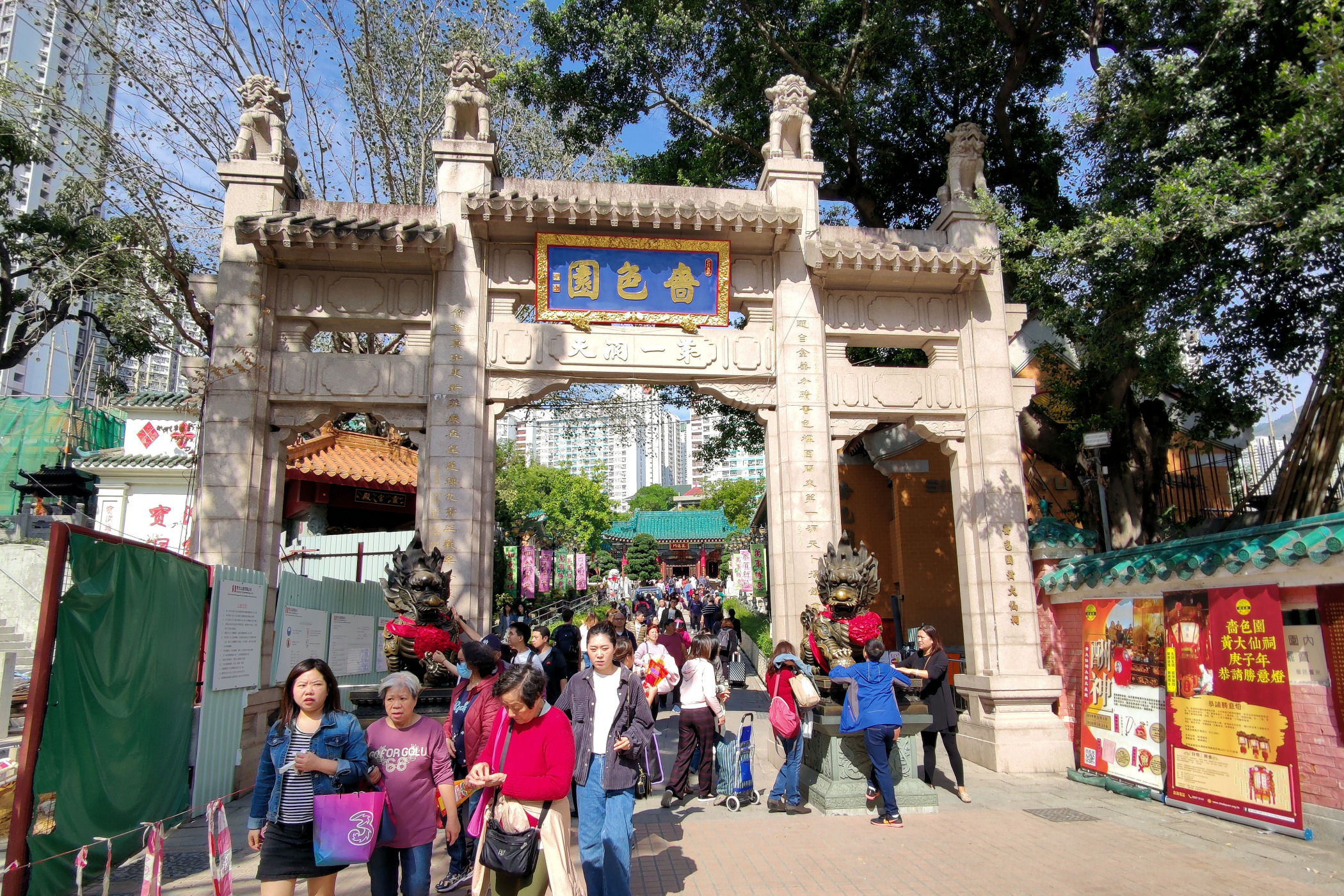 Wong Tai Sin Temple to jedna z najważniejszych świątyń w Hongkongu. Słynie bowiem ze spełniania życzeń. Każdego roku w wigilię Nowego Roku przybywają tu tłumy, aby o północy stanąć przed głównym ołtarzem i złożyć swoje prośby. Z kolei w okresie 1-15 stycznia przybywają tu podziękować Ci których życzenia się spełniły, dlatego i my na miejscu zastajemy mnóstwo ludzi i ciężko na spokojnie wszystko obejrzeć.