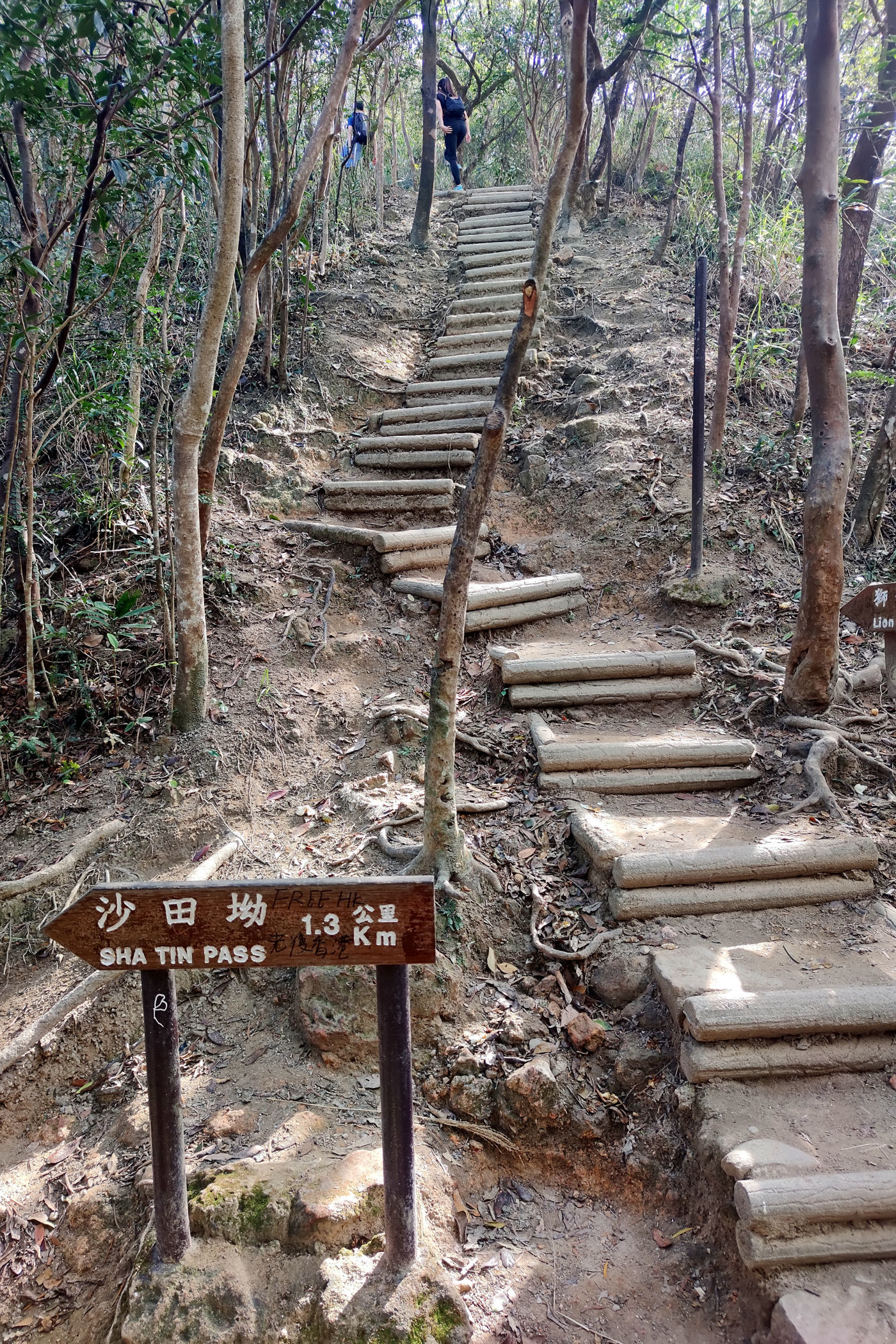 Po wizycie w świątyni i jej pięknych ogrodach możemy skierować się w kierunku wzgórza i poszukać właściwego szlaku. Główna droga pnąca się ostro w górę – Shatin Pass Road prowadzi nas prosto do początku. Mijamy ostatnie wielkie osiedla, dalej już zaczyna się Park Narodowy – jest wiec szansa, ze teren nigdy się nie zabuduje.