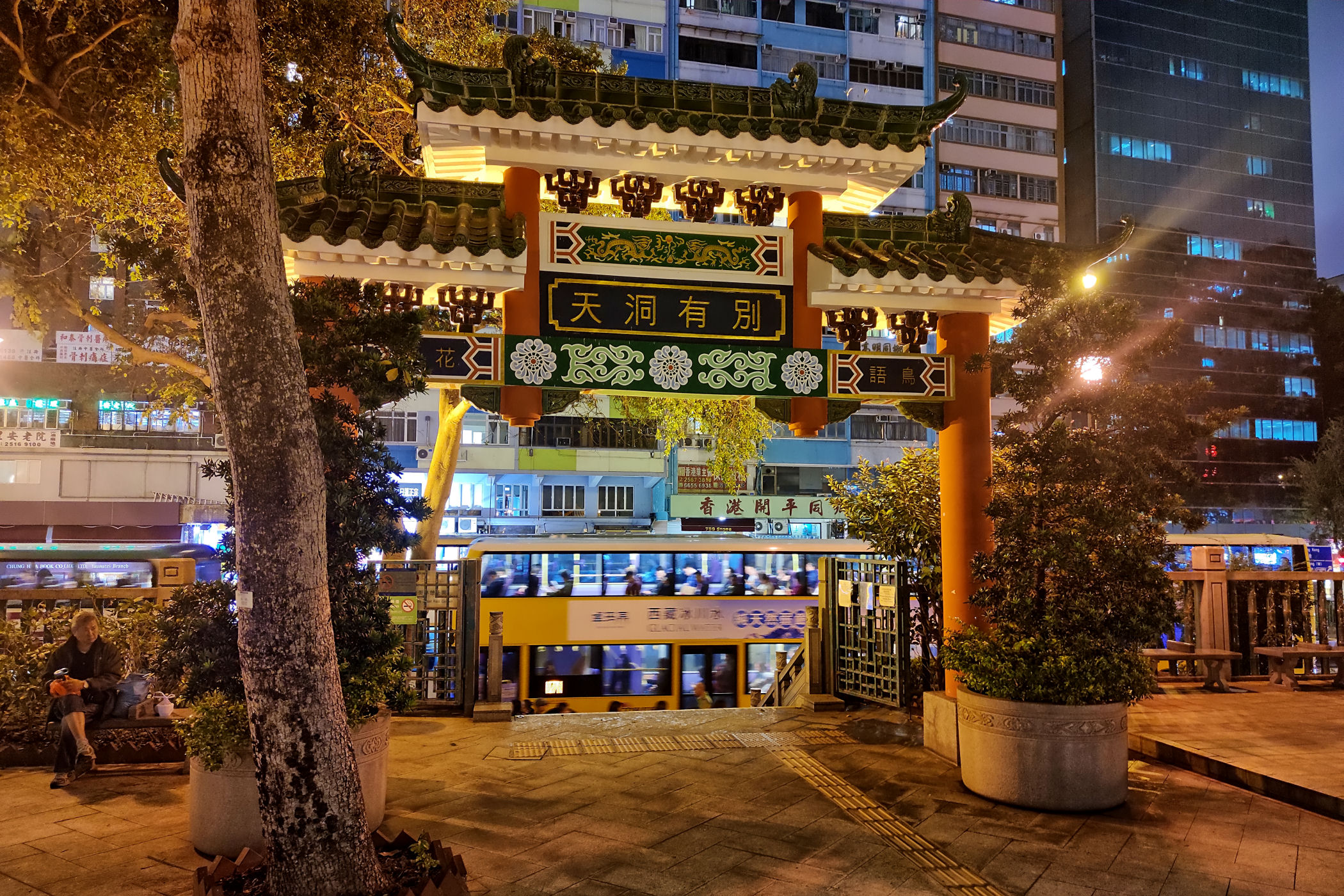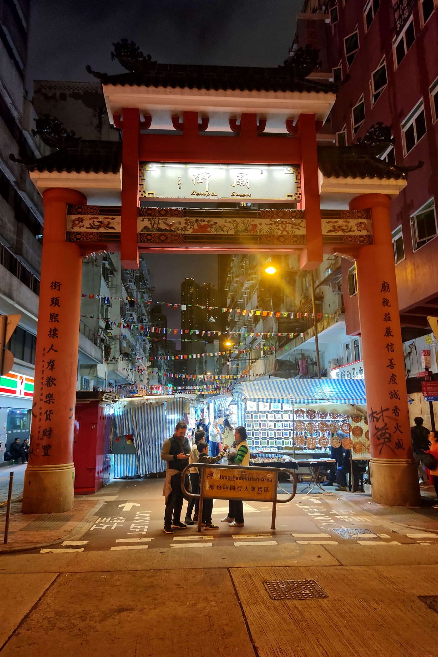 To najbardziej tętniące nocnym życiem miejsce . Za czerwoną chińska bramą zaczyna się bowiem Temple Street , czyli ulica bazarków czynnych tu do późnych godzin nocnych, choć ostatnio ograniczony do 23.00 . Już od dwudziestych lat XX wieku gromadzą się tu sprzedawcy, aby handlować i gotować na ulicy. Sto lat później to samo miejsce nie zmienia charakteru, a tłumy schodzą tu co noc po tanie ubrania, uliczne jedzenie, czy herbatę. Podane ceny są tylko sugestią. > STRONA TEMPLE STREET