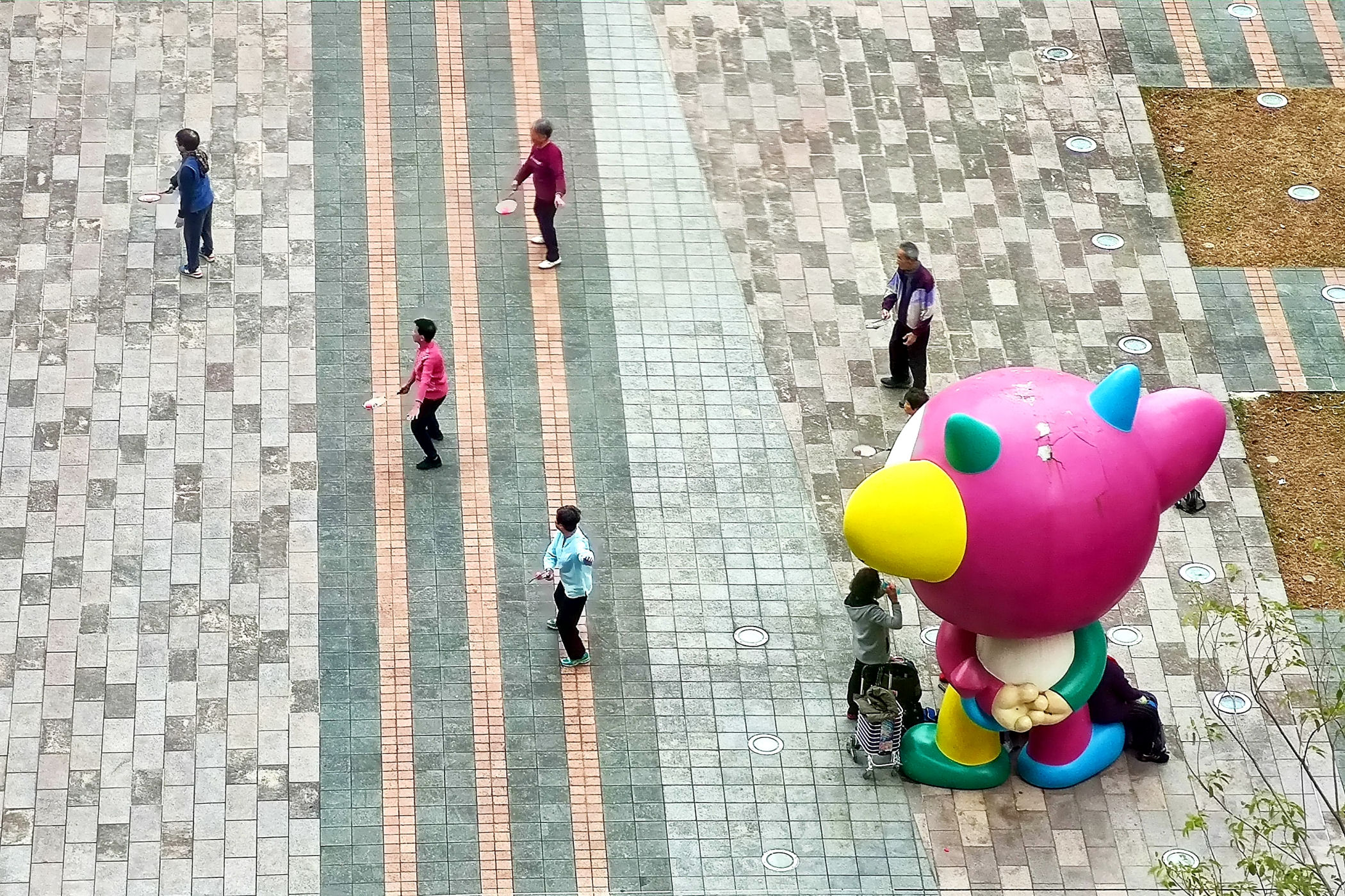 TAI CHI w mieście Cha Tin to coś wyjatkowego. W całych Hongkongu widzieliśmy sporo ludzi ćwiczących tą wyjątkowa sztukę walki, ale takiego nagromadzenia ćwiczących ludzi nie widzieliśmy nigdzie indziej. Już od rana przed oknami hotelu wymachiwali mieczami, wachlarzami, pod zadaszem amfiteatru kolejna duża grupa , kawałek dalej w parku kolejne. Mieliśmy wrażenie, że całe miasto wychodzi przed południem , aby wspólnie poćwiczyć.