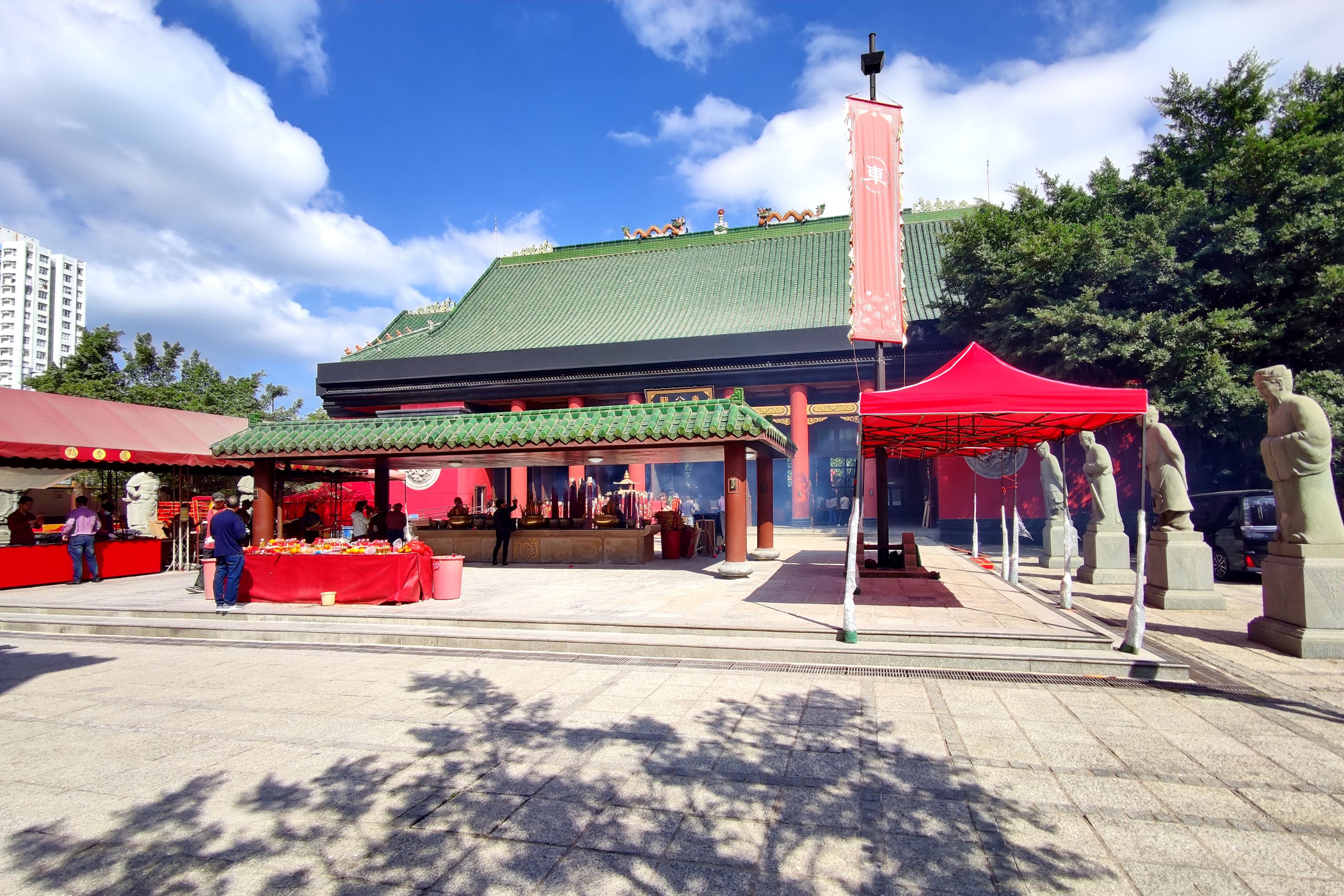 Kiedy wyszukiwałam ciekawe miejsca w mieście, trafiłam na tą świątynię. Nie przypuszczałam wtedy, że to jedna z 2 najważniejszych świątyń taoistycznych w całym Hongkongu. Znajduje się na zachodnim krańcu południowej promenady nad rzeką Shing Mun.