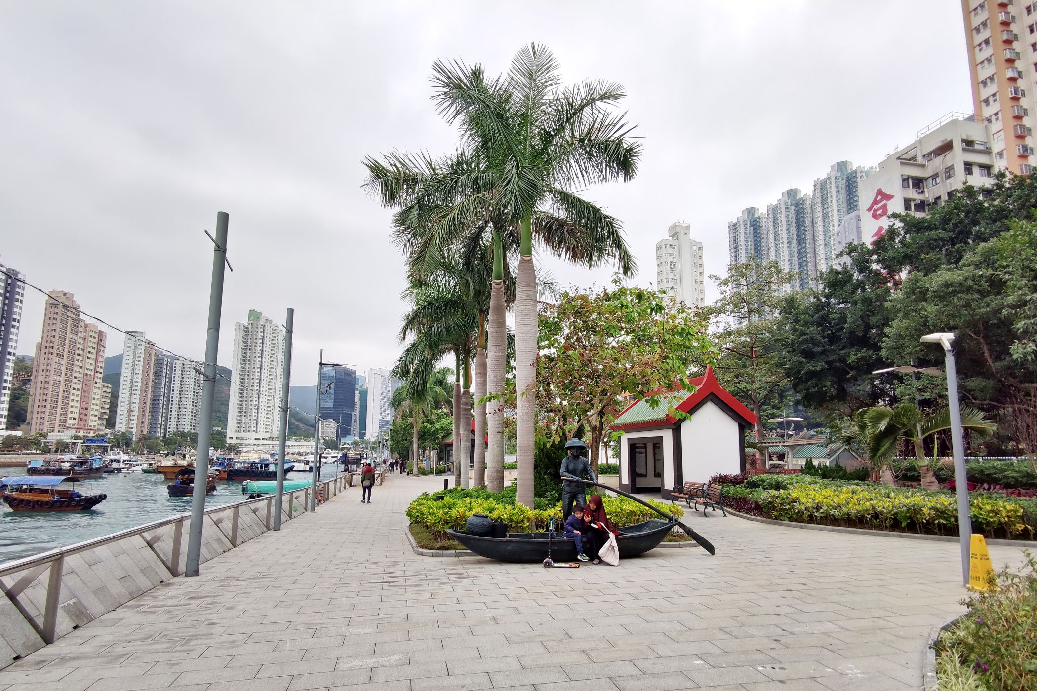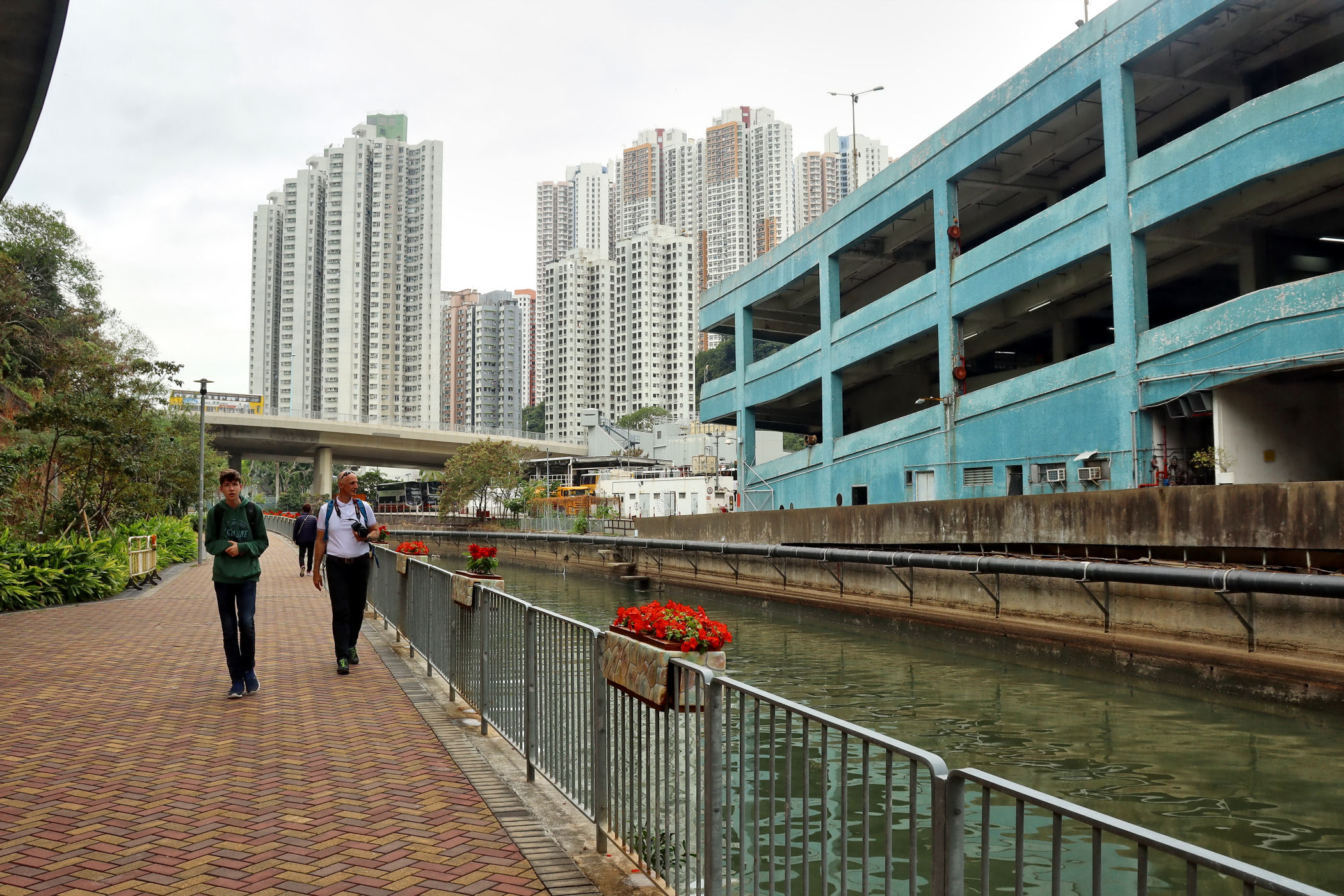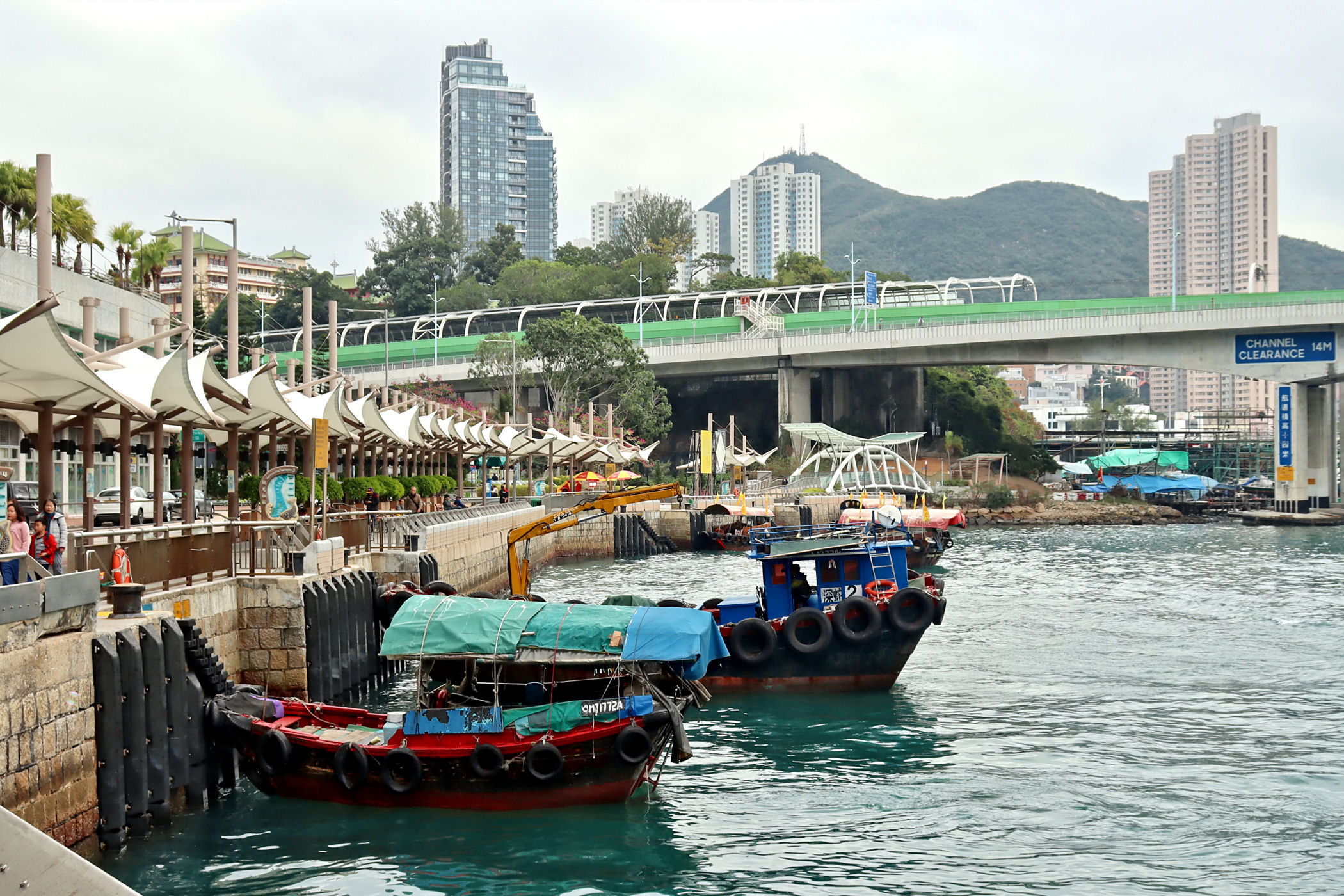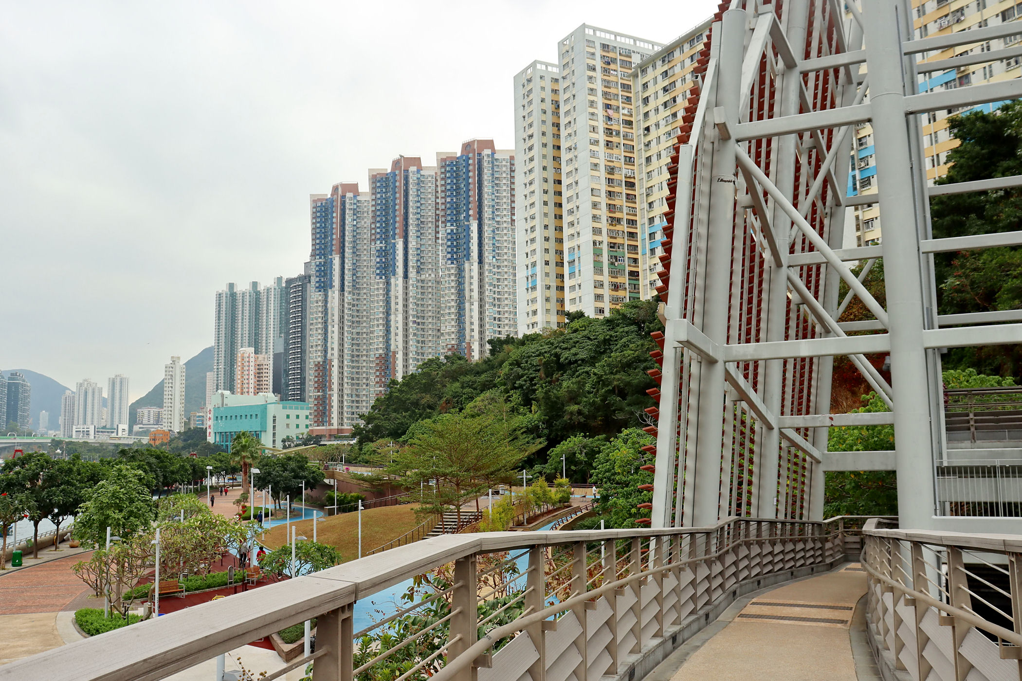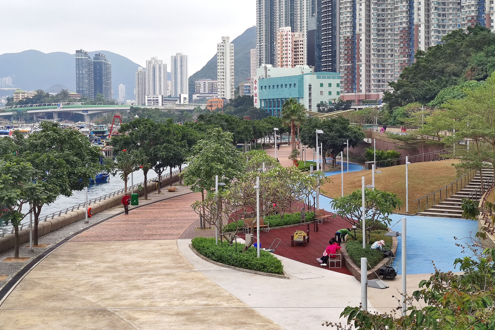 Teraz kierujemy się promenadą wyspy w kierunku zachodnim . Przechodzimy pod ogromnym mostem i idziemy wzdłuż Parku Lei Chau.