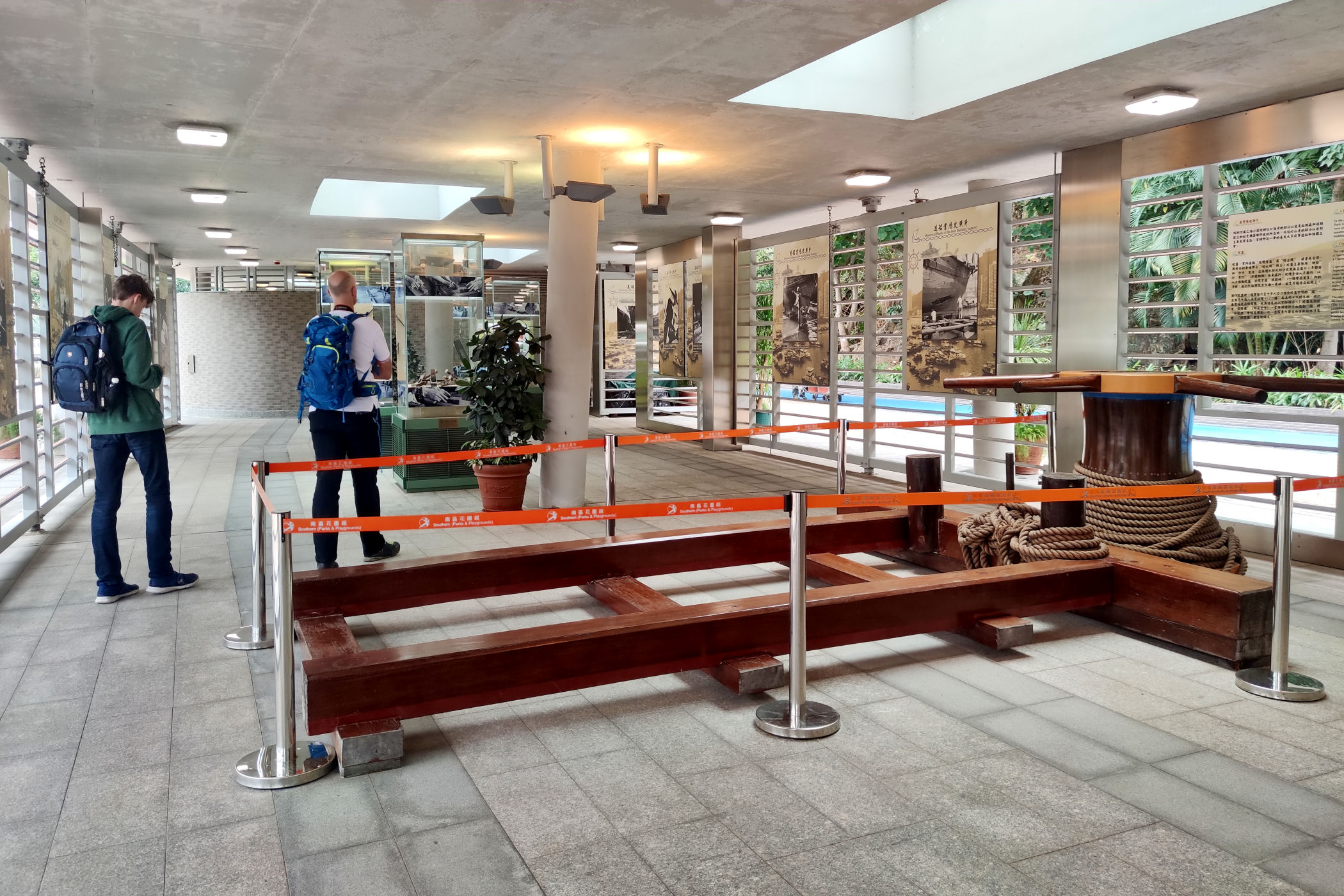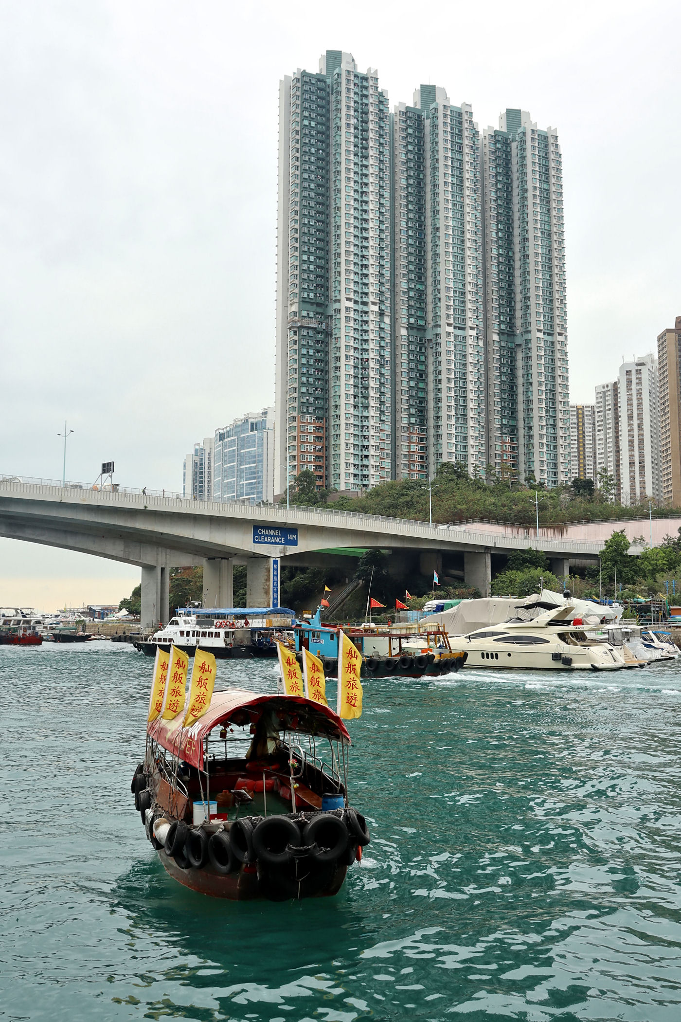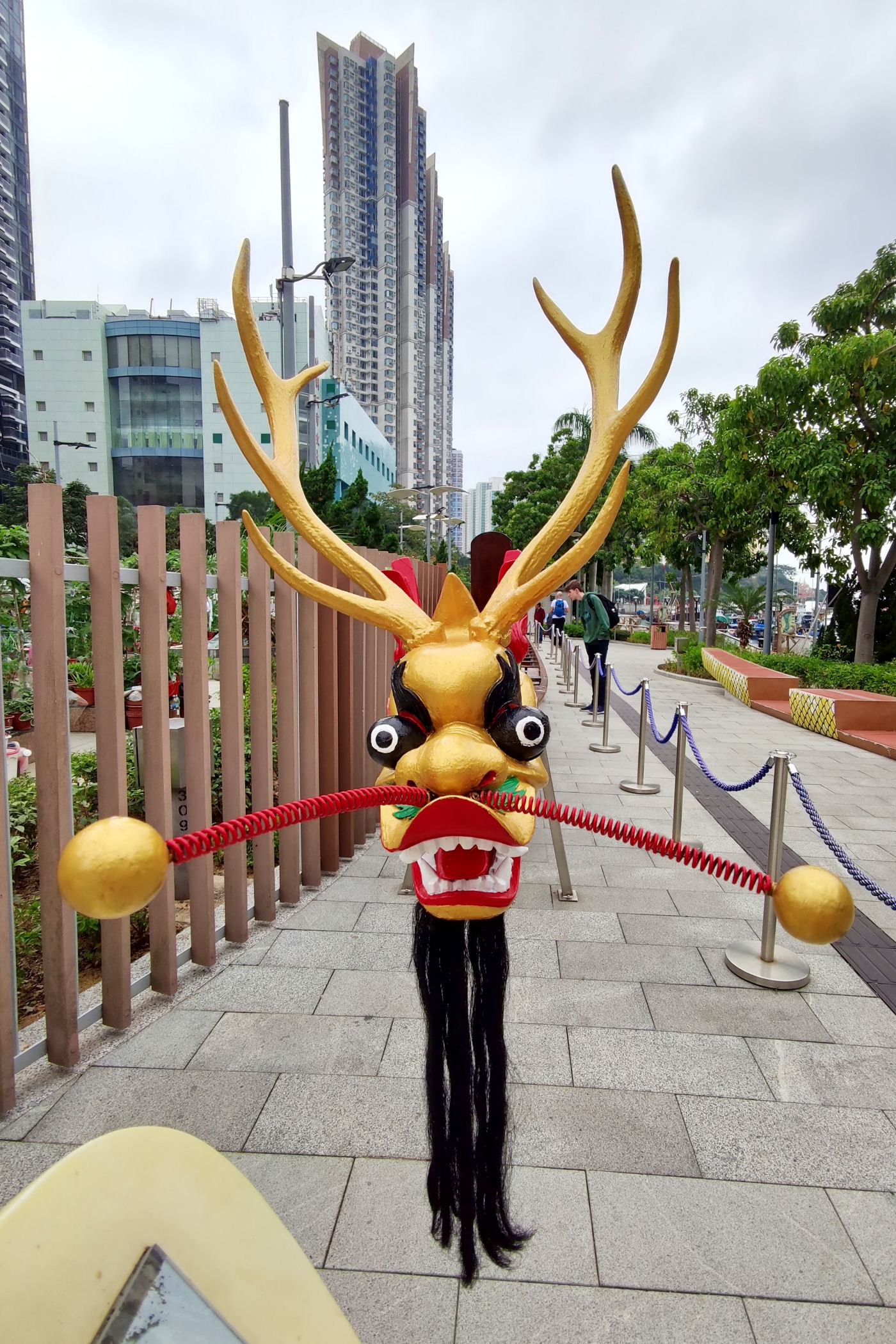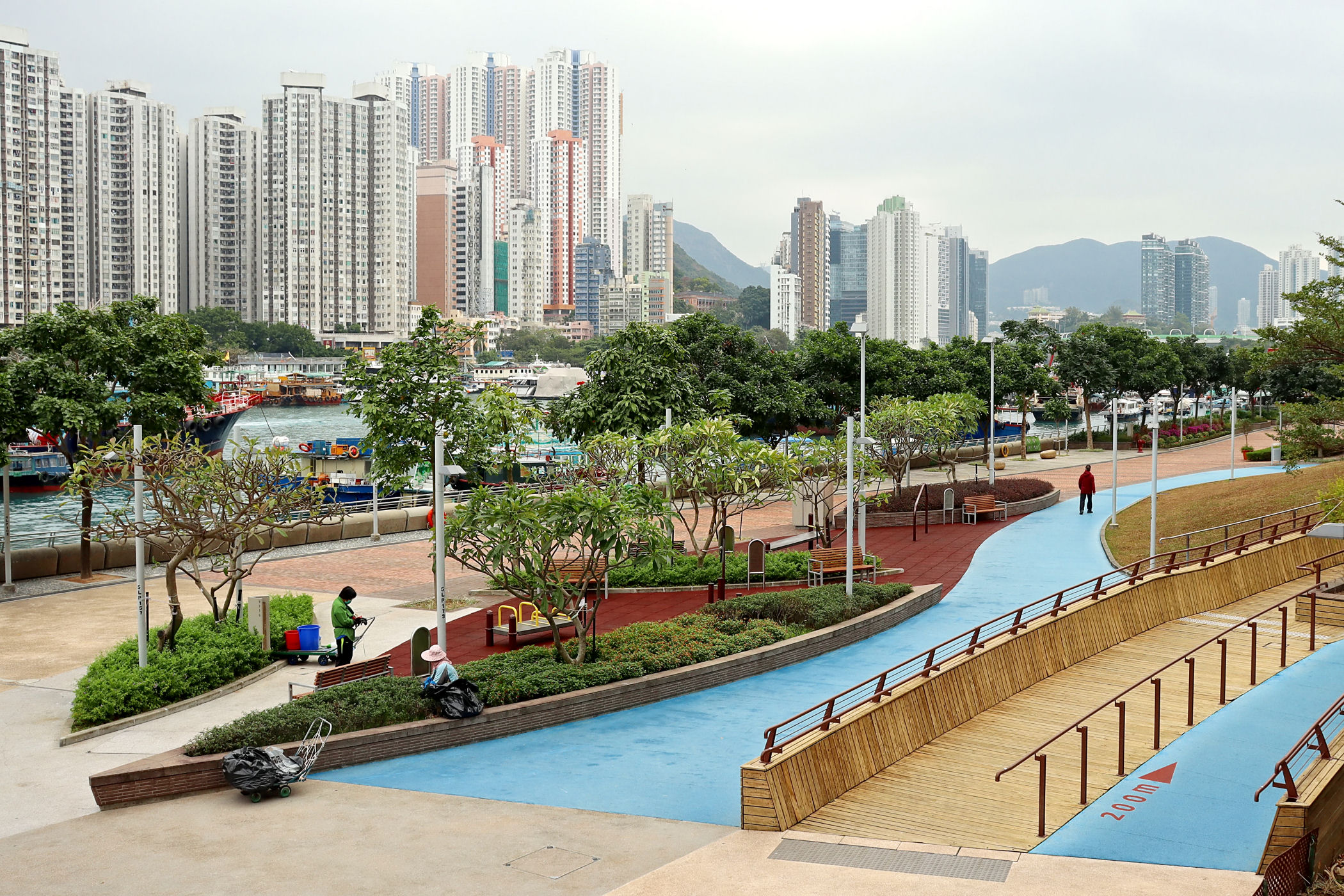 Teraz kierujemy się promenadą wyspy w kierunku zachodnim . Przechodzimy pod ogromnym mostem i idziemy wzdłuż Parku Lei Chau.