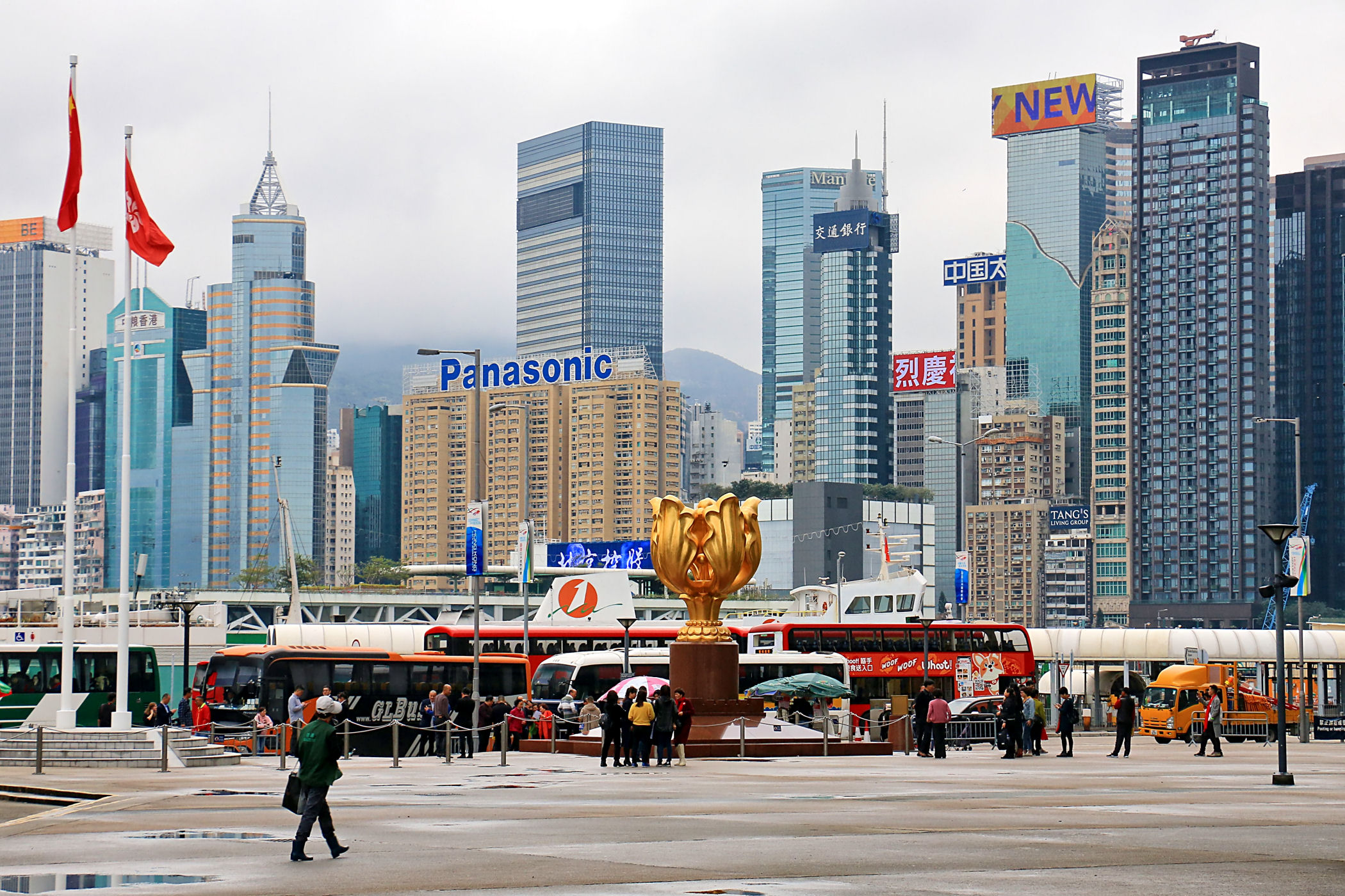 Jesteśmy na placu przy nabrzeżu , w oczy rzuca się złota statua i fotografujący się przy niej ubrani na czerwono Chińczycy. Powiewające nad placem flagi Hongkongu i Chin wyraźnie wskazują na symbolikę tego miejsca. Rzeźba Bauhinia, która przedstawia zawsze kwitnący kwiat była prezentem od rządu centralnego w Chinach z okazji przekazania Hongkongu w 1997 roku. Dziś miejsce popularna wśród chińskich turystów, którzy robią sobie zdjęcia na tle Pomnika Zjednoczenia, na którym znajdują się inskrypcje kaligrafii Prezydenta Jiang Zemina. Codziennie o 8 rano odbywa się tu ceremonii podnoszenia flagi.