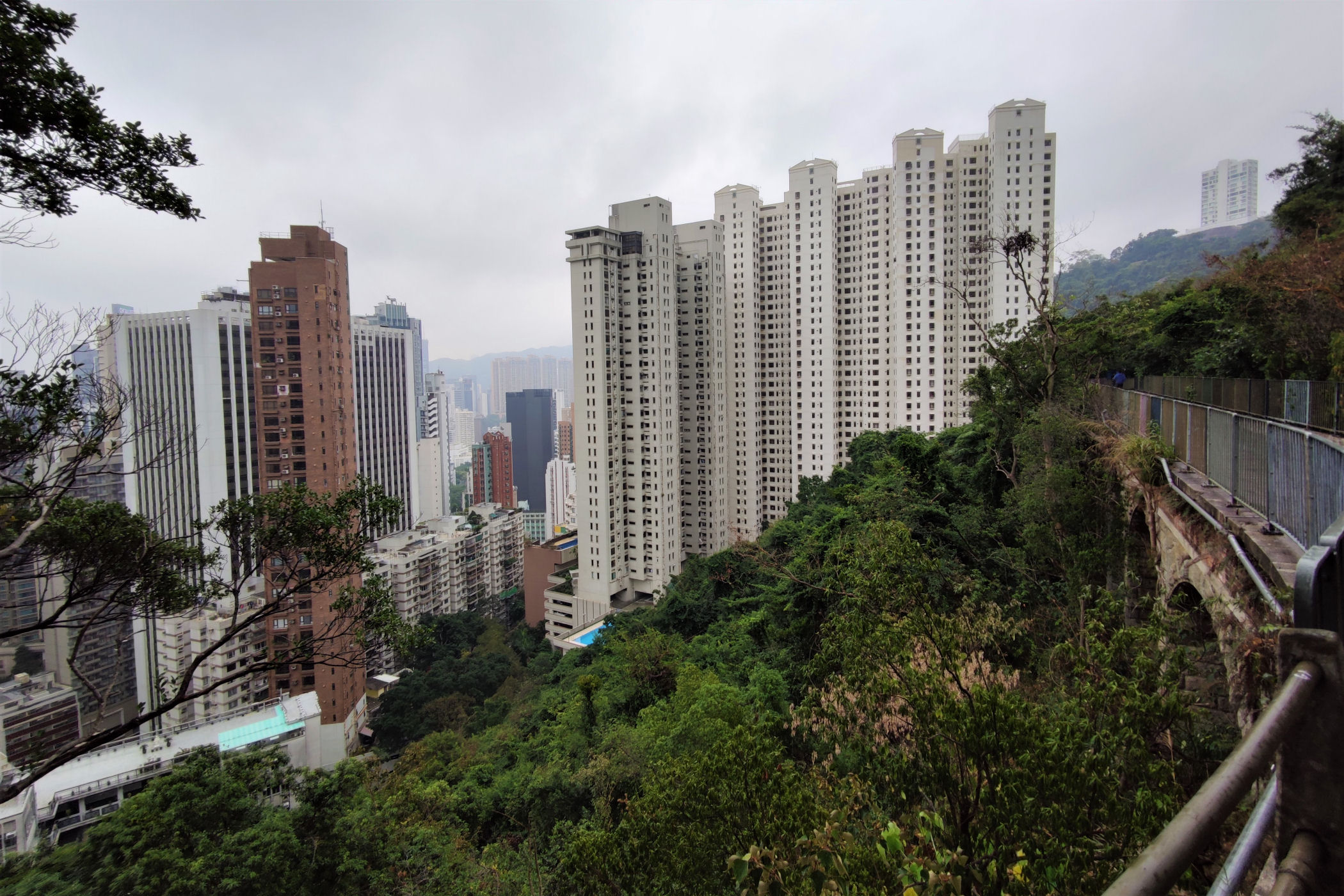 Przez tą część dzielnicy wędrujemy tylko raz i to niestety przy wyjątkowo brzydkiej pogodzie . Wysokie na kilkadziesiąt kondygnacji budynki dotykają niemal stromych stoków górujących w ich tle.