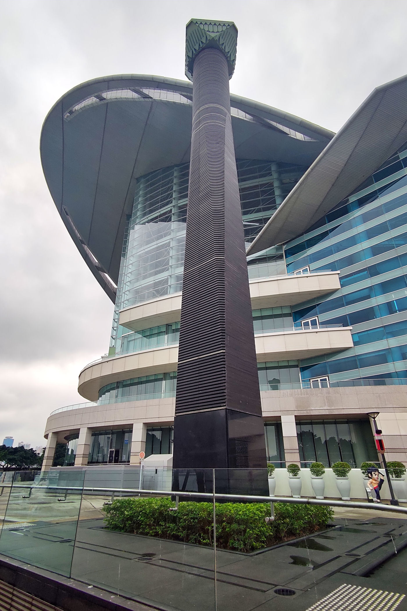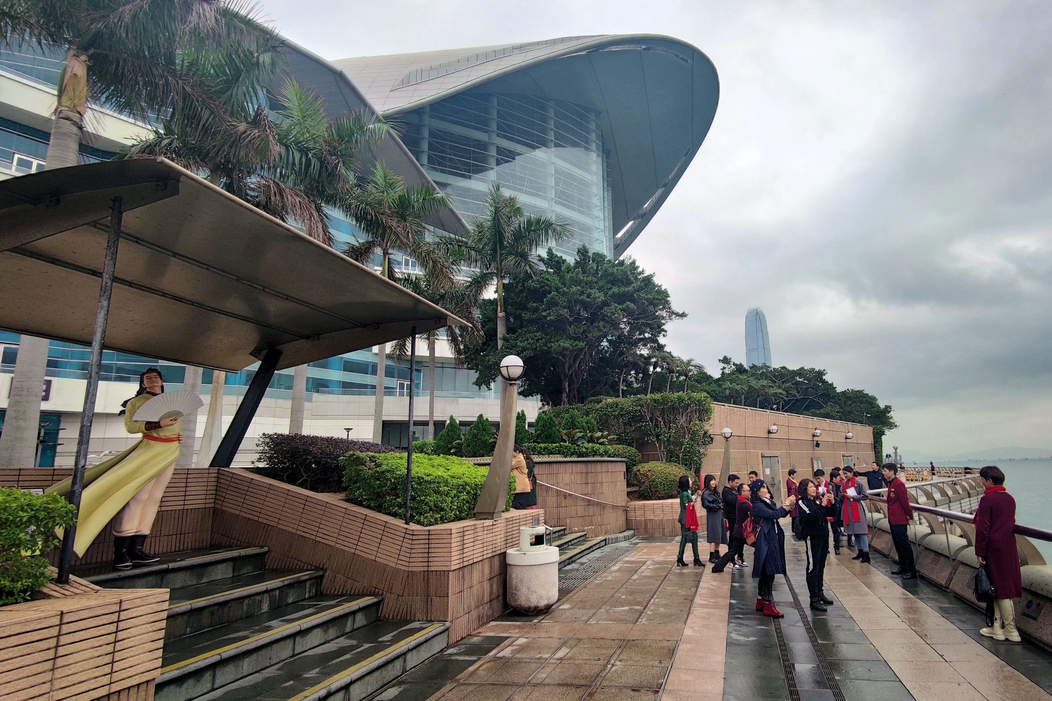 Na cyplu, na którym stoi wyżej opisywana rzeźba Bauhinia króluje ogromny obiekt Centrum Kongresowo – Wystawienniczego. Dach o powierzchni 40 000 metrów kwadratowych wyrzeźbiony jest tak, by przypominać latającego ptaka morskiego. Budynek był tłem sceny wielkiego finału „New Police Story” z Jackie Chanem, ale także ceremonii przekazania broni 30 czerwca 1997 r. To wtedy była kolonia brytyjskiej korony została zwrócona Chińskiej Republice Ludowej i utworzono Specjalny Region Administracyjny Hongkongu. Nie jest więc to miejsce, które budzi pozytywne emocje w związku z wieloletnia falą protestów przeciw chińskim rządom.