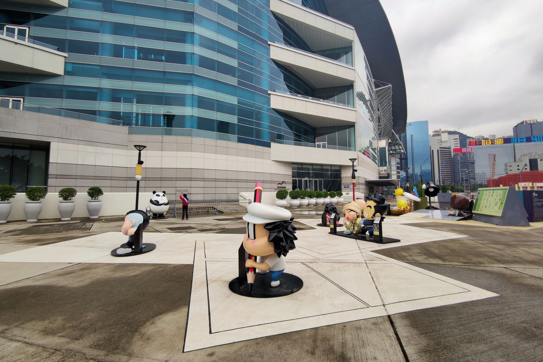 Od zachodniej strony Centrum Kongresowego mamy na placu park postaci komiksowych. Tego typu miejsc w Hongkongu jest sporo. Postaci z komiksów to w tutejszej kulturze prawie gwiazdy ekranu.