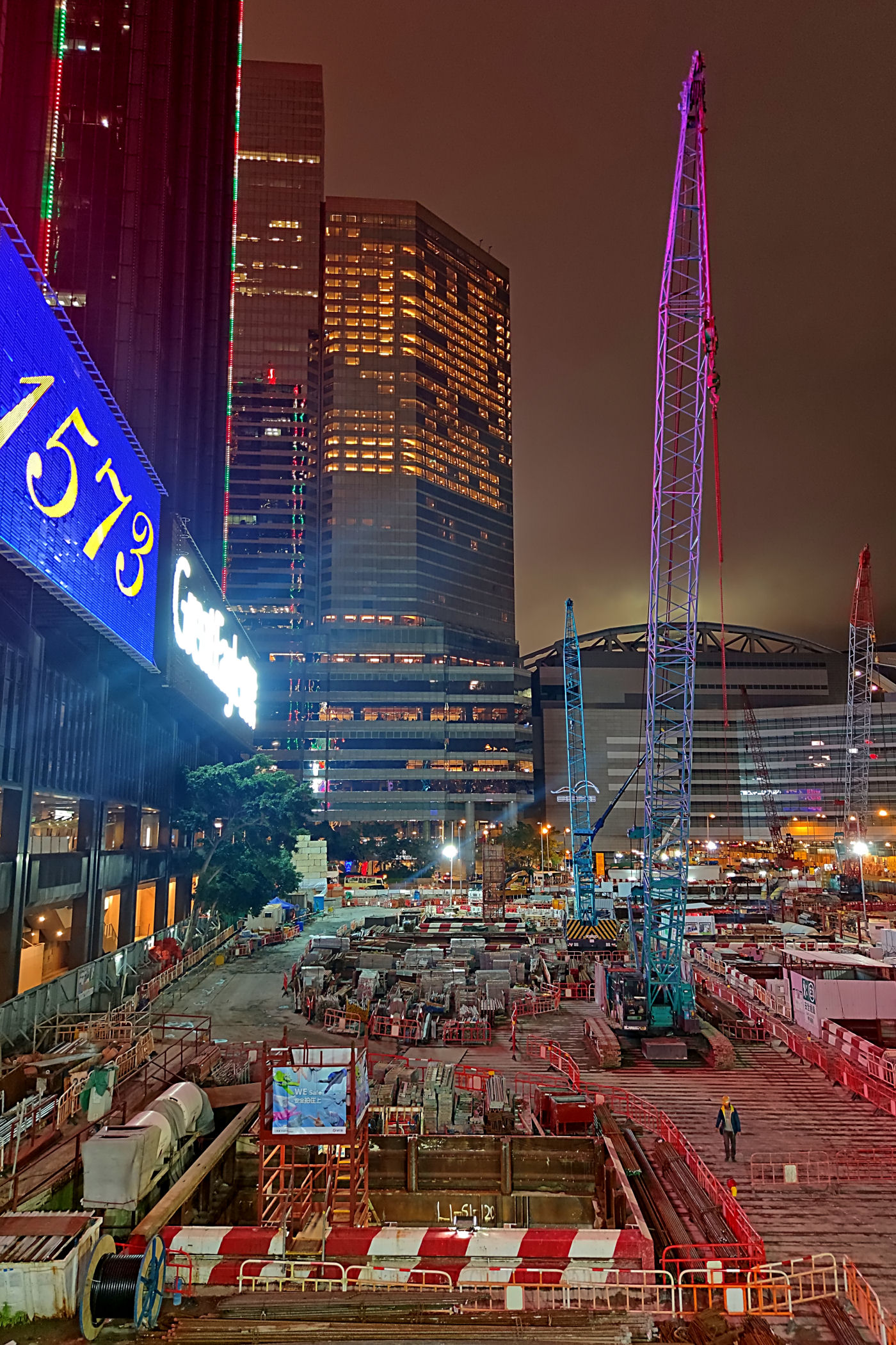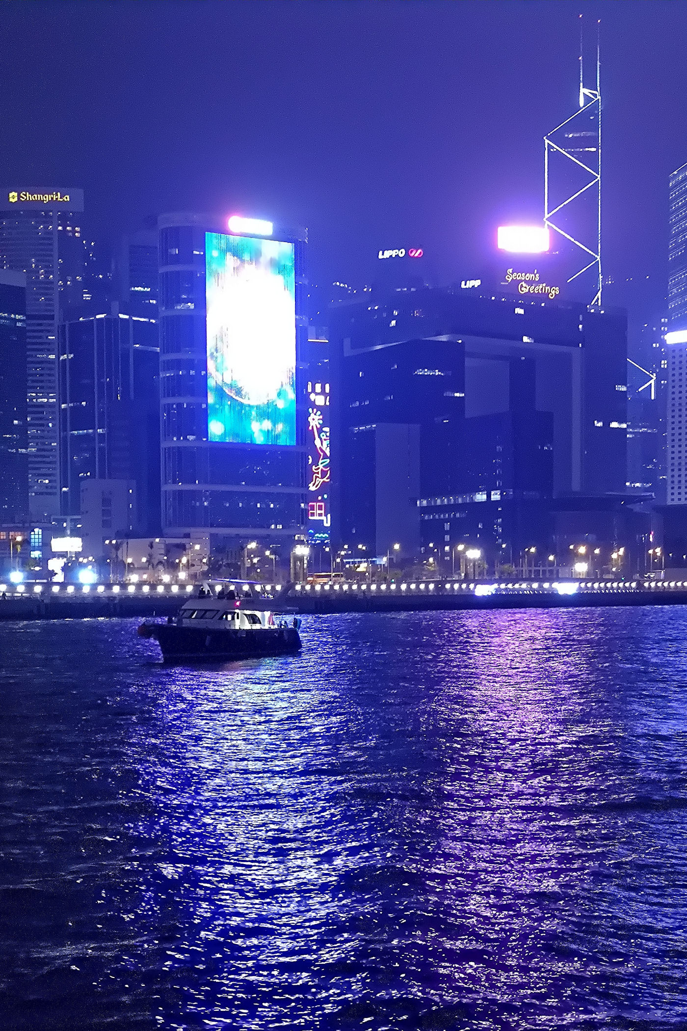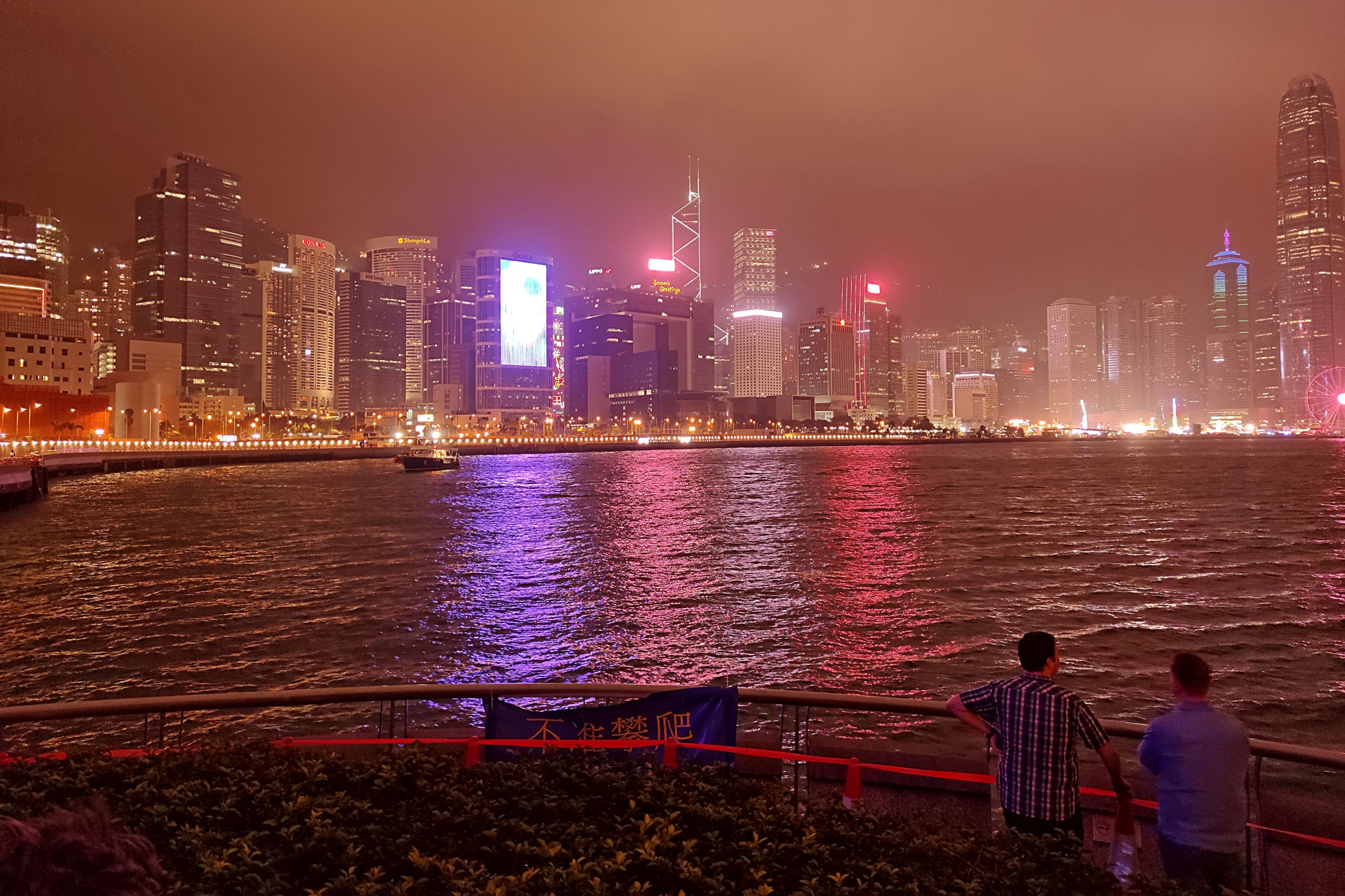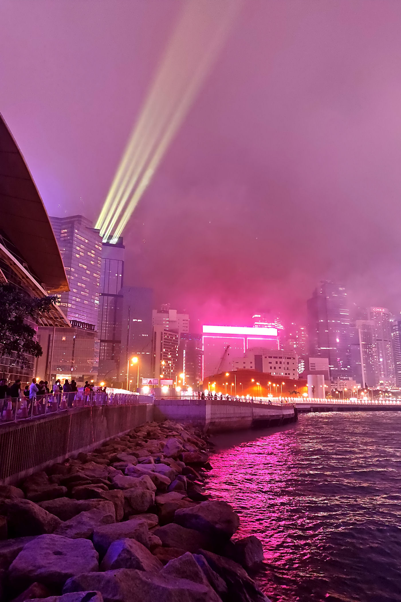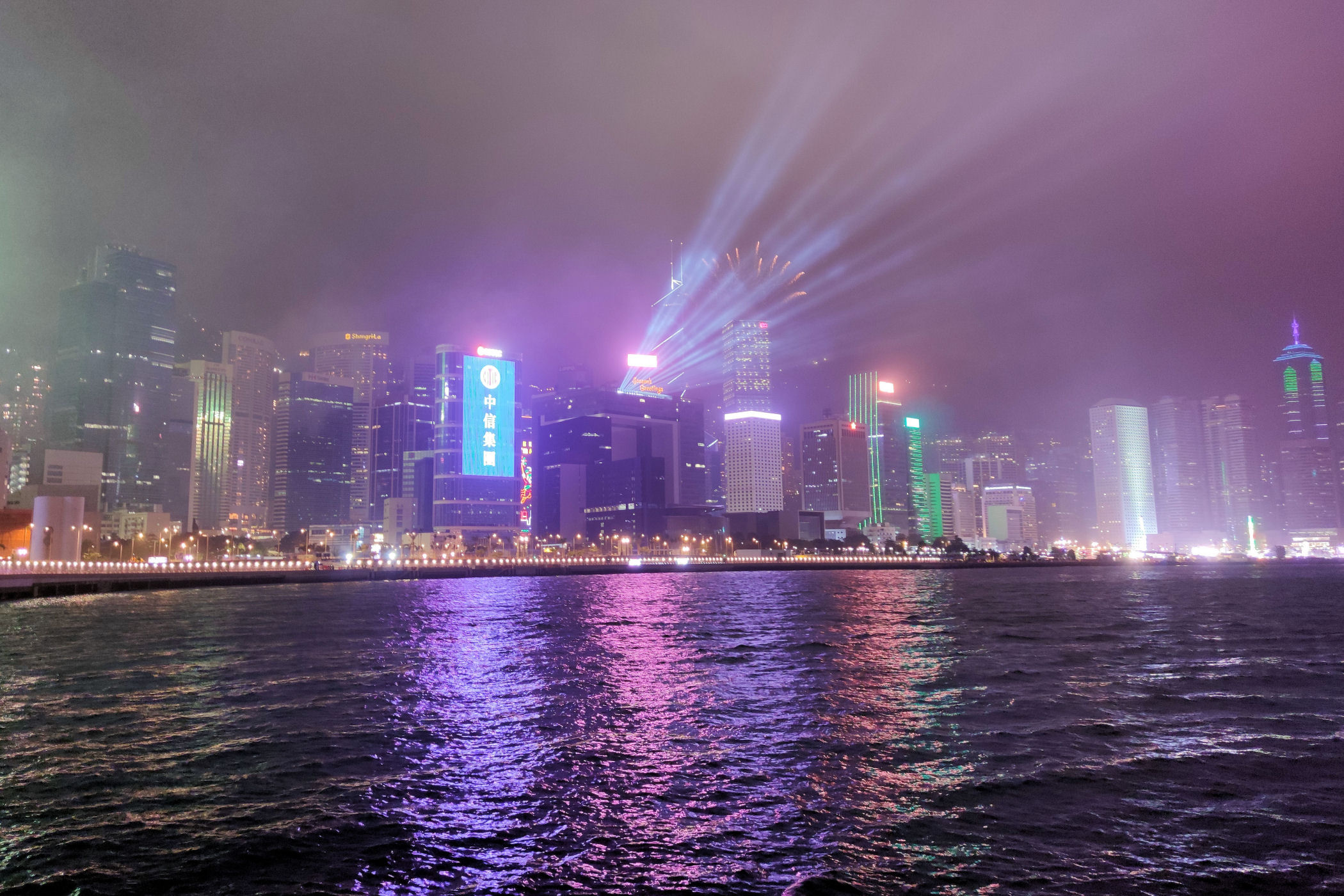 Plan pierwotnie zakładał spędzanie sylwestrowej nocy i powitanie Nowego Roku na PROMENADZIE GWIAZD po drugiej stronie zatoki. Tam jest po prostu najlepszy punkt widokowy dla takiego niesamowitego show jakim jest jeden z największych na świecie pokaz fajerwerków. Ze względu jednak na trwające protesty i niepewność co wydarzy się tej nocy zdecydowaliśmy się pozostać na naszej wyspie. W razie zamieszek mieliśmy po prostu blisko do hotelu. Dosłownie chwilę przed naszym wyjściem z hotelu na nocny spektakl dowiedzieliśmy się z wiadomości, że ze względów bezpieczeństwa pokaz został odwołany. I tak bez żalu już całkowicie powitaliśmy Nowy Rok na naszej promenadzie przy zachodniej stronie Centrum Kongresowego .
