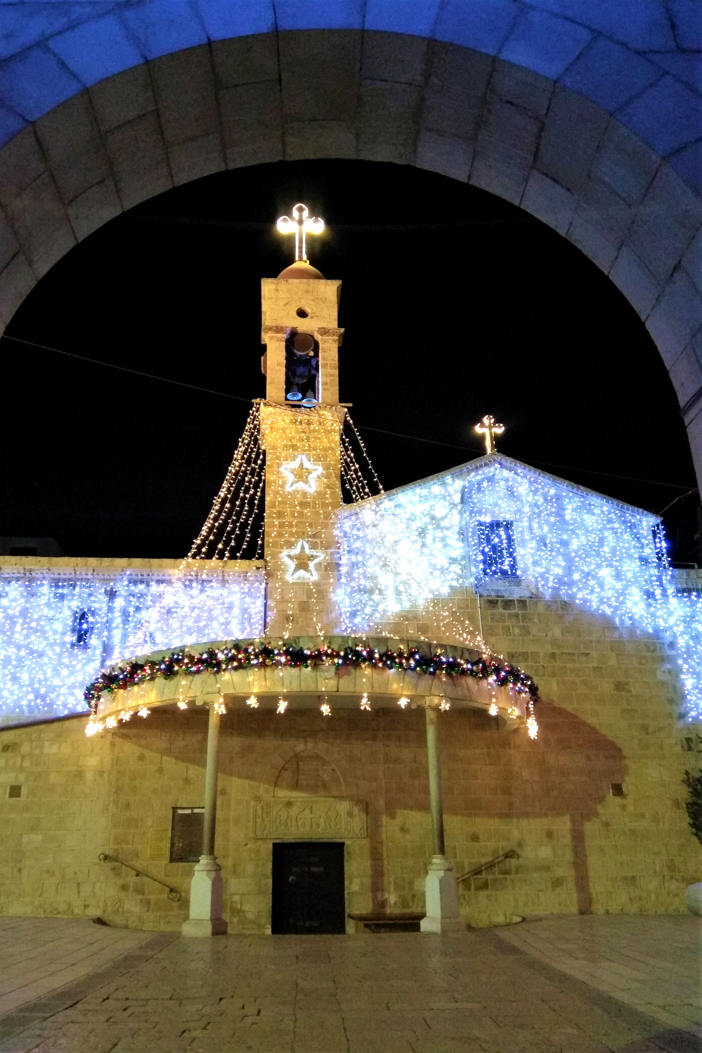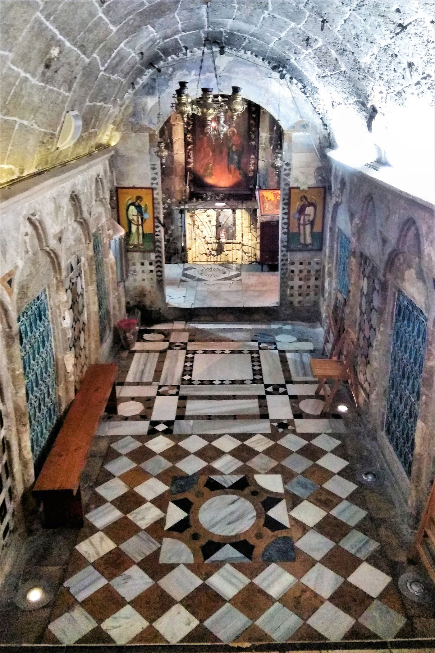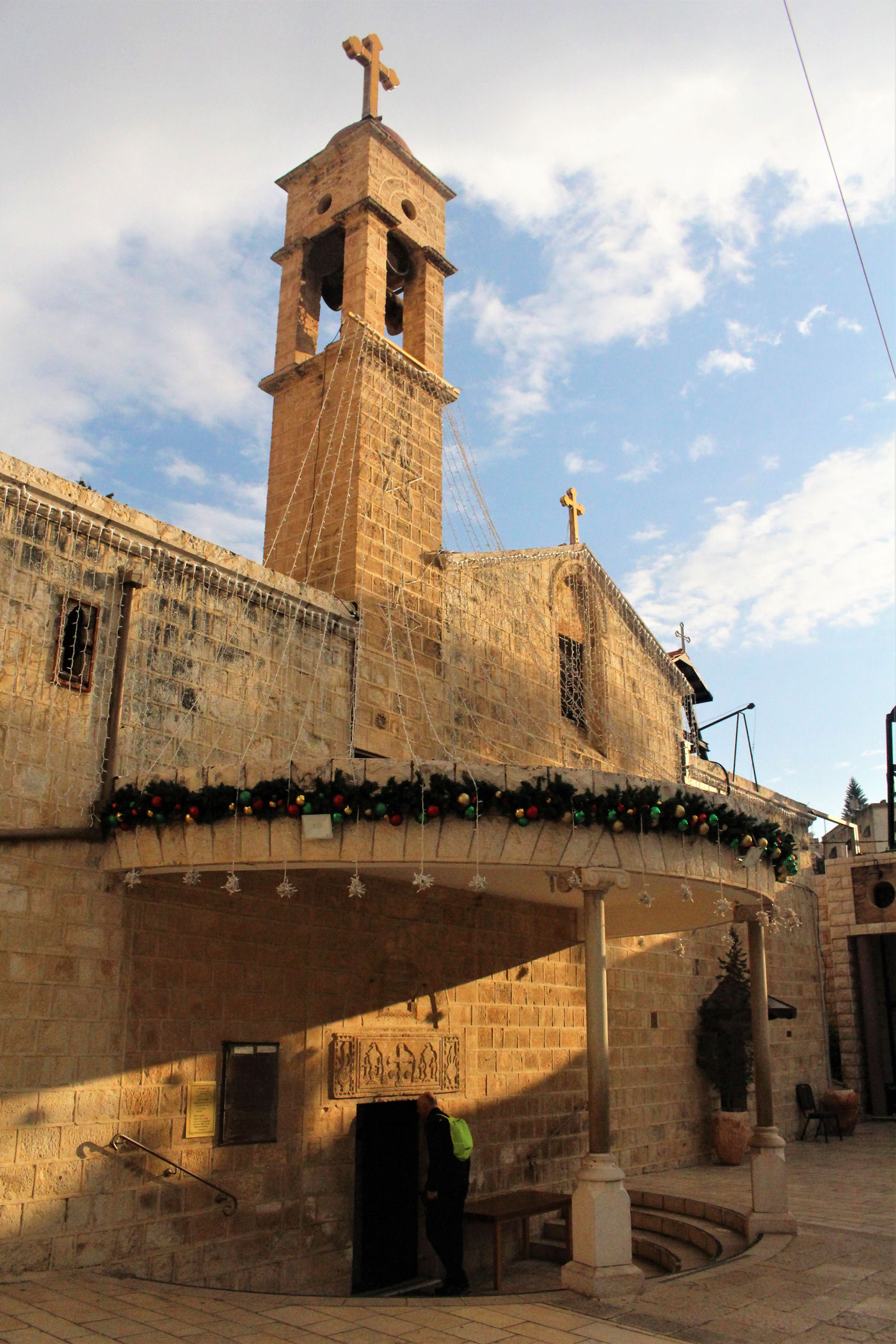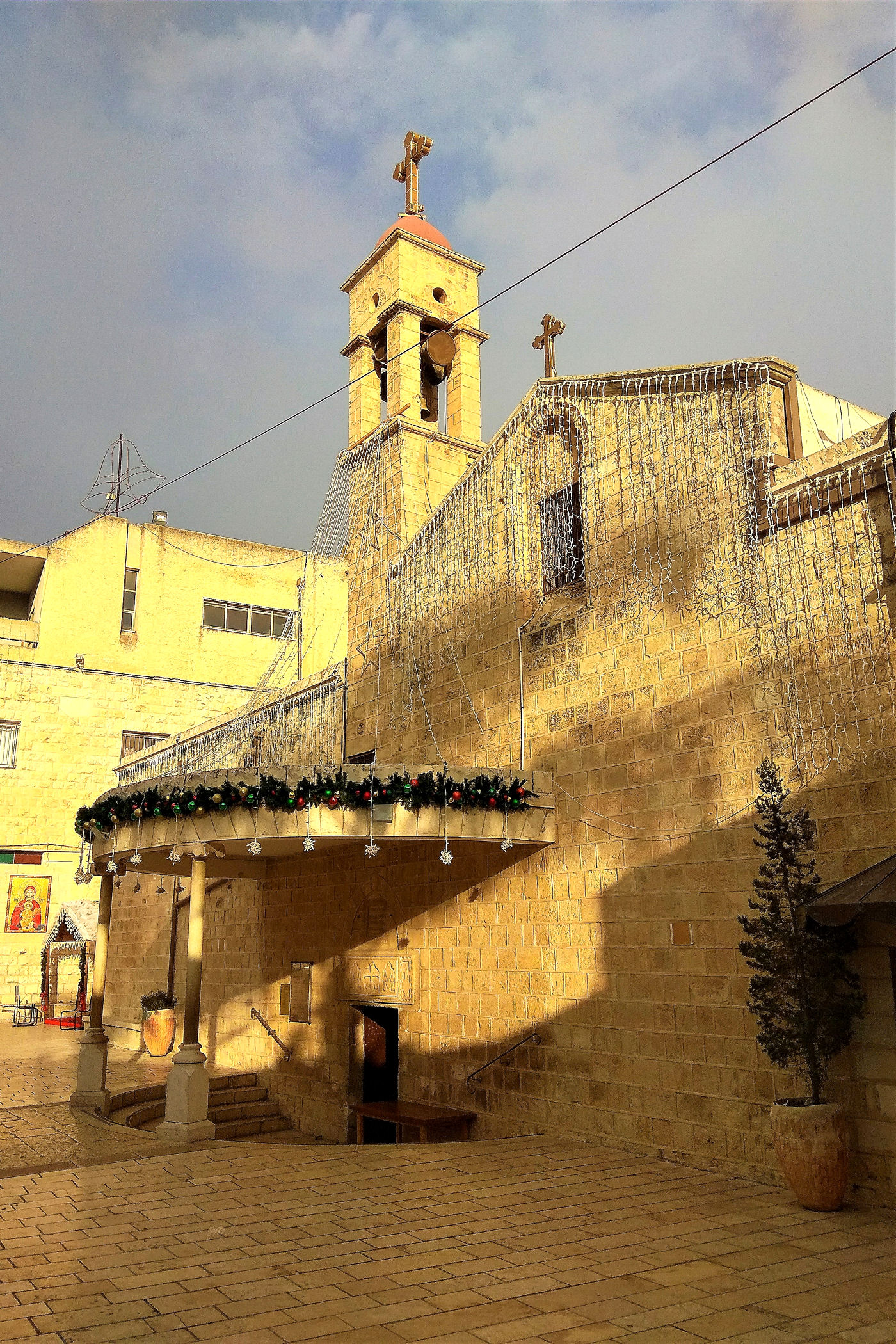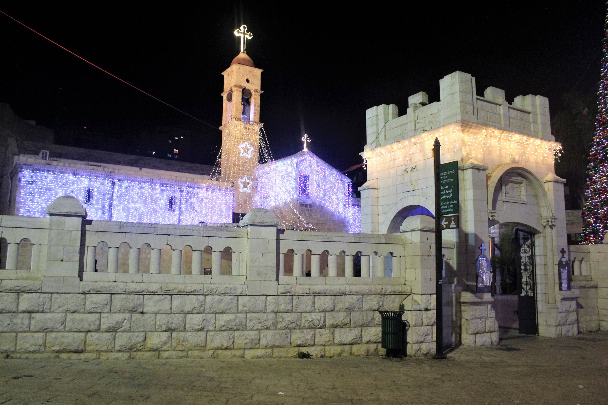 Kawałek dalej za studnią znajdziemy piękny plac (świątecznie ustrojony) z cerkwią grecką upamiętniającą zwiastowanie. Pierwsza świątynia powstał tu w okresie bizantyjskim, kolejna w czasach wypraw krzyżowych, a obecna pochodzi z XIX w. Niewielka, ale urocza budowa szczyci się bogato dekorowanymi freskami oraz efektownym ikonostasem. Naprzeciwko głównego wejścia z północnej nawy prowadza schodki do kaplicy zbudowanej nad źródłem Maryi. Stąd woda spływała do opisanej wcześniej studni.