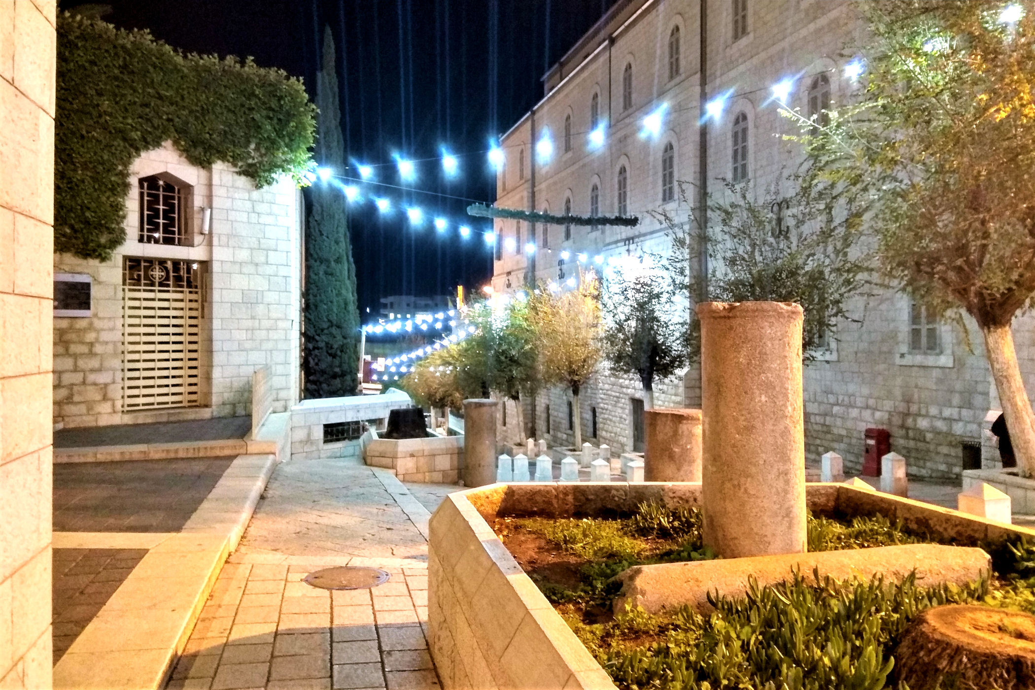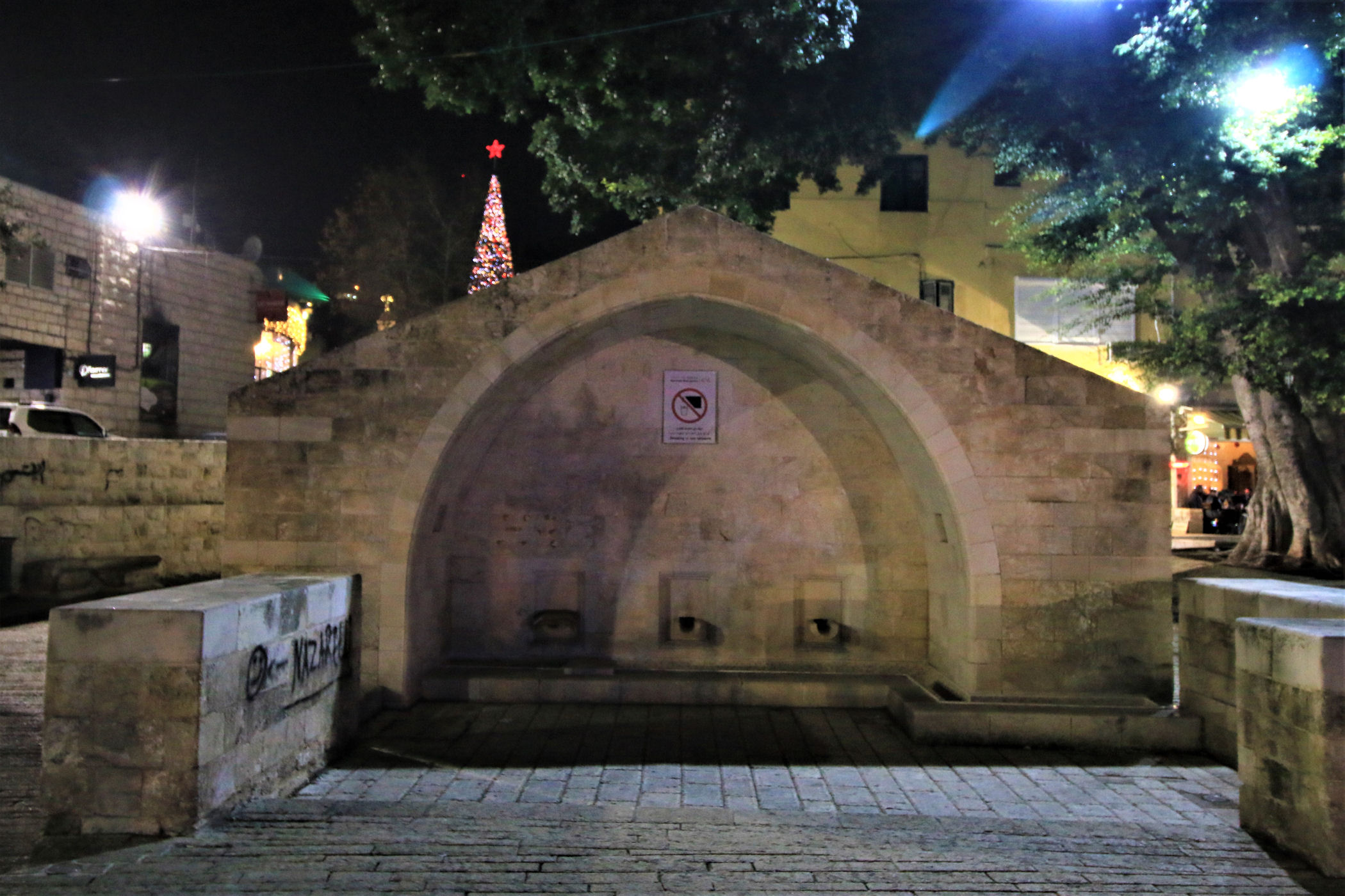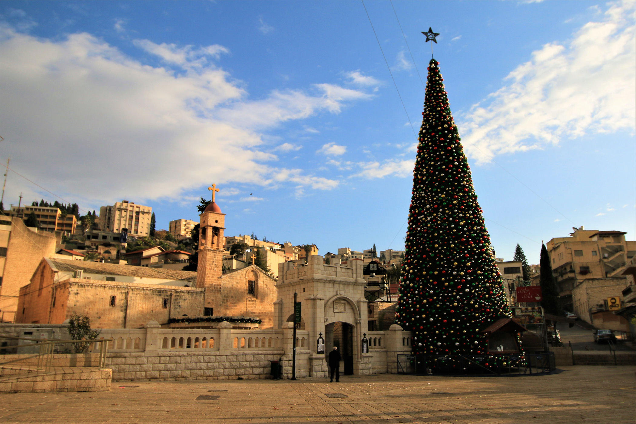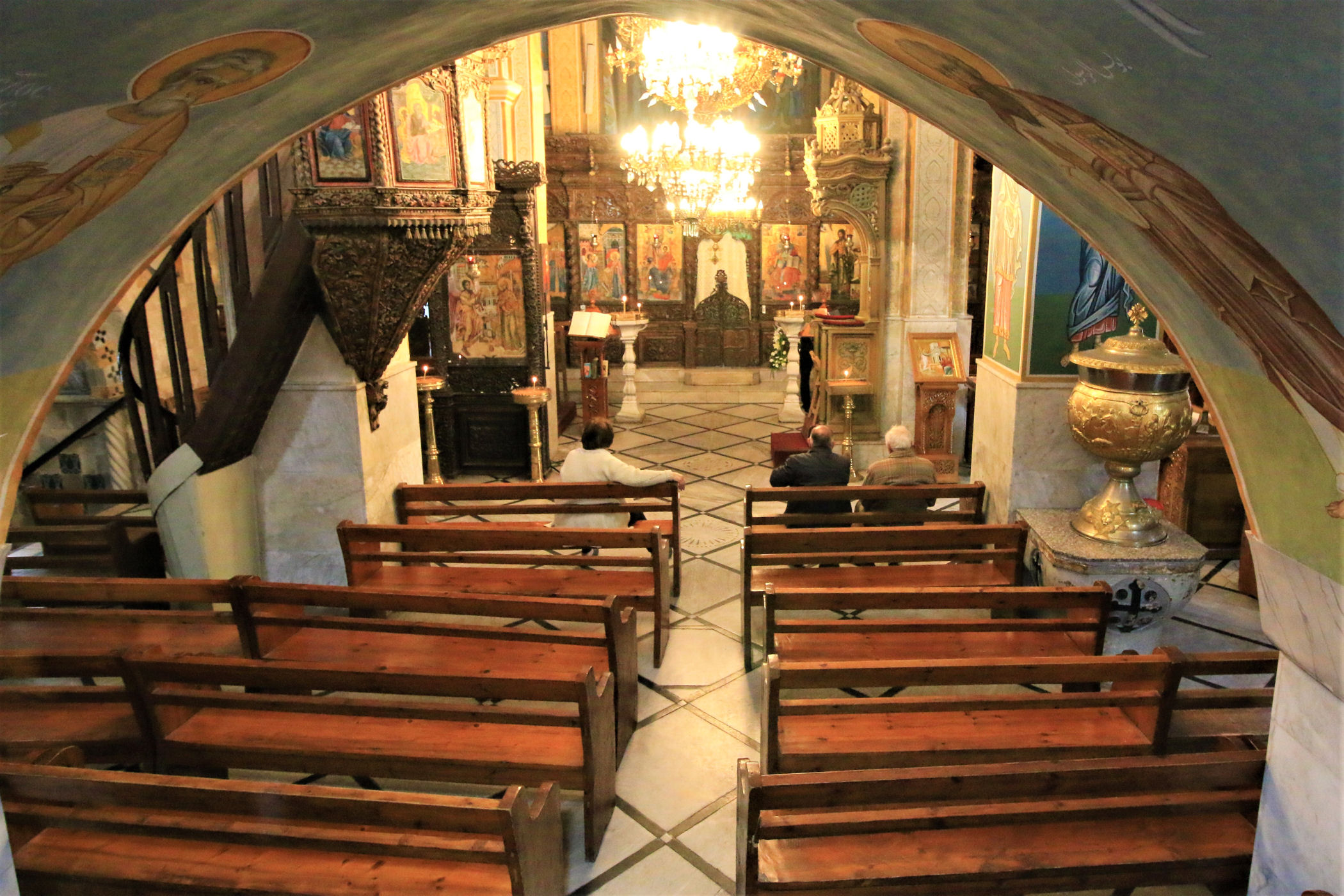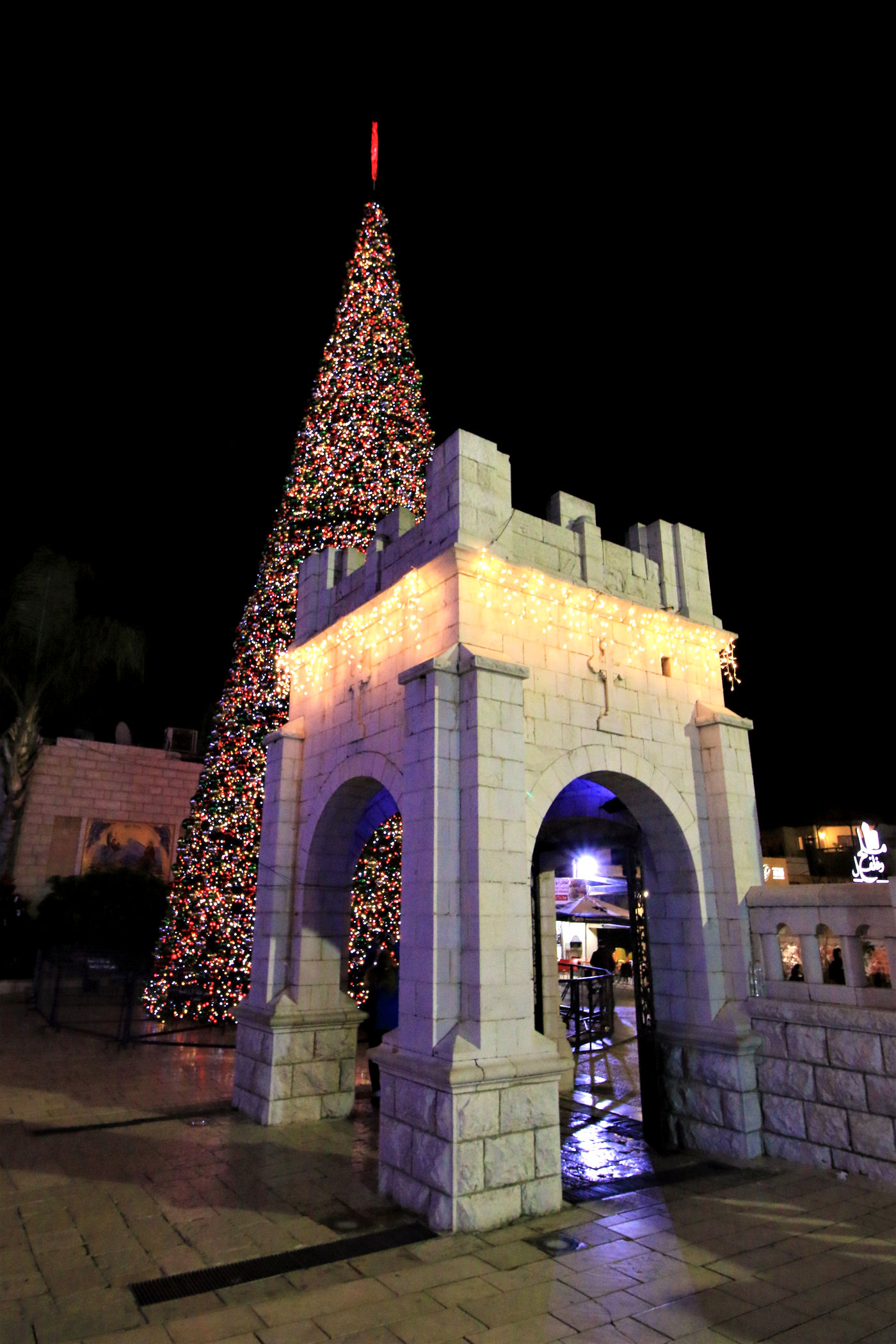 Kawałek dalej za studnią znajdziemy piękny plac (świątecznie ustrojony) z cerkwią grecką upamiętniającą zwiastowanie. Pierwsza świątynia powstał tu w okresie bizantyjskim, kolejna w czasach wypraw krzyżowych, a obecna pochodzi z XIX w. Niewielka, ale urocza budowa szczyci się bogato dekorowanymi freskami oraz efektownym ikonostasem. Naprzeciwko głównego wejścia z północnej nawy prowadza schodki do kaplicy zbudowanej nad źródłem Maryi. Stąd woda spływała do opisanej wcześniej studni.