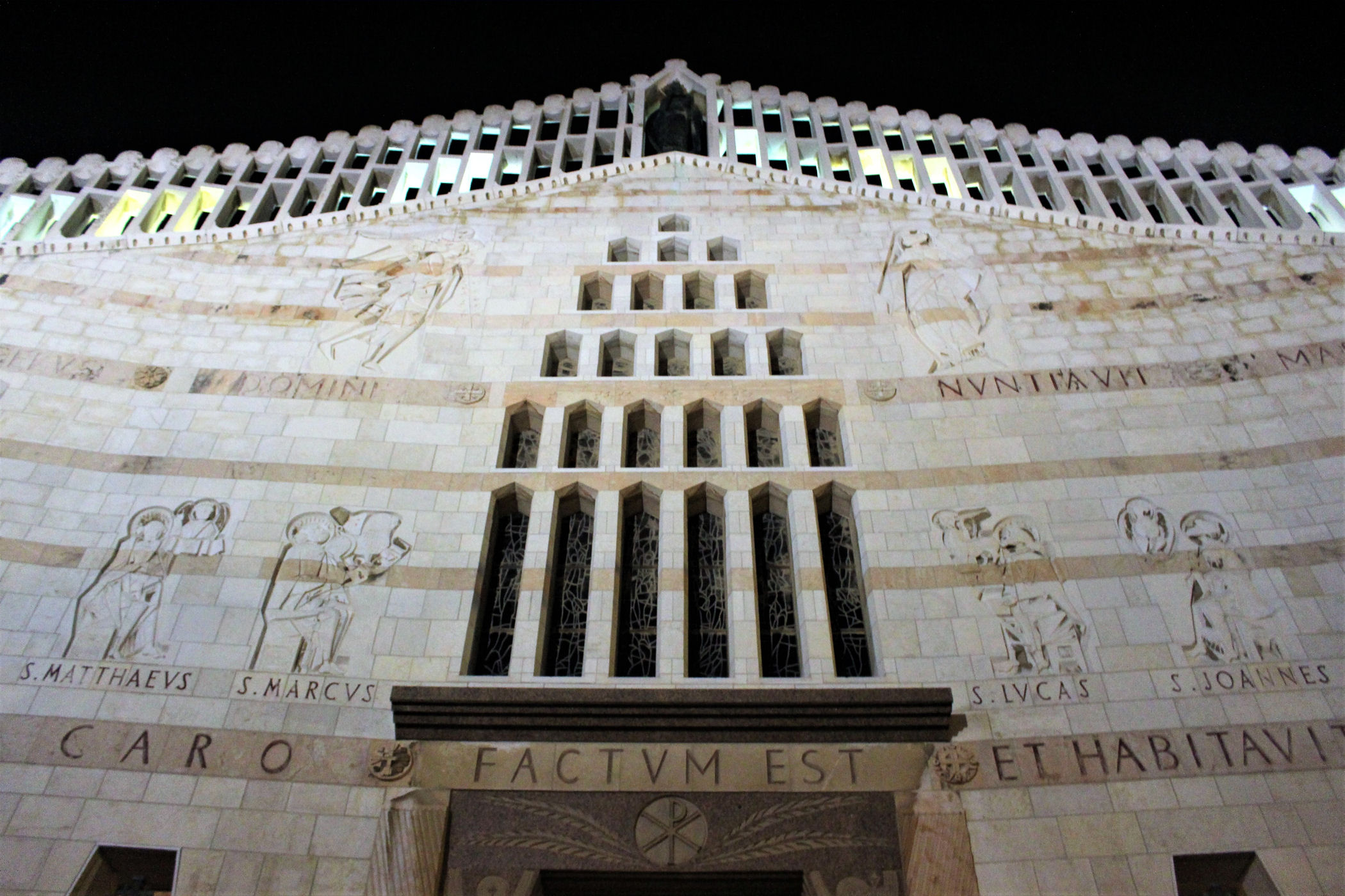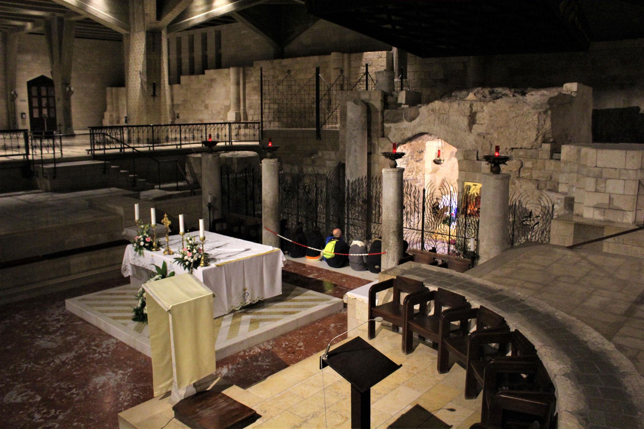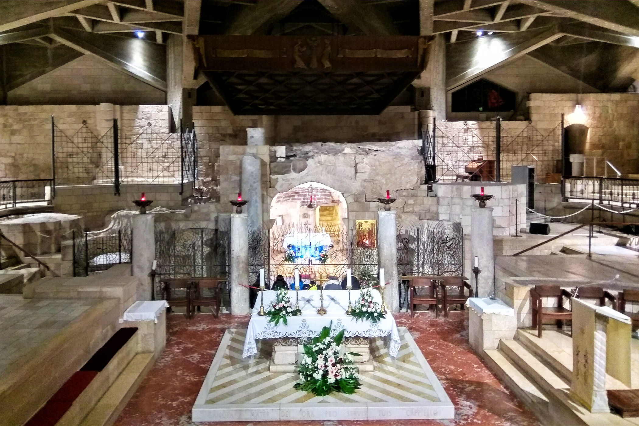 Miejsce gdzie „Słowo stało się ciałem i zamieszkało wśród nas” (J 1.14) znajduje się w Bazylice Zwiastowania. Wzniesiono ją na miejscu aż czterech poprzednich kościołów na tym samym miejscu.