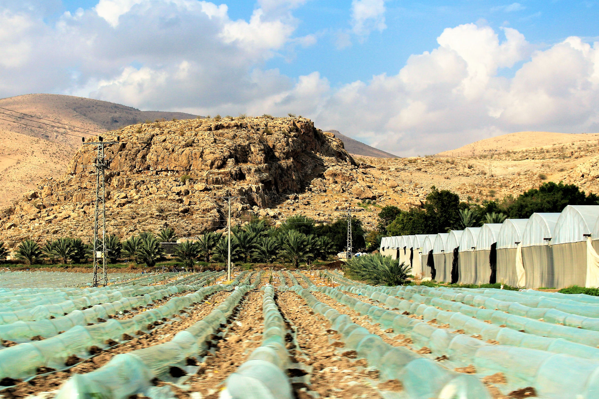 Mijamy punkt kontrolny na którym stoi uzbrojone wojsko, ale nikt nie zatrzymuje nas do kontroli. Dalej znajduje się mnóstwo plantacji pod folią, która niestety wala się wszędzie wokół. Widoki pięknych, choć bardzo suchych gór w połączeniu z wysypiskiem śmieci przy drodze nie wyglądają zachęcająco. Zatrzymujemy się tylko raz na parkingu przy którym stoi małe centrum handlowe. Widok wszechobecnych uzbrojonych wojskowych, podobnie jak na terenie Izraela nikogo tu nie dziwi.