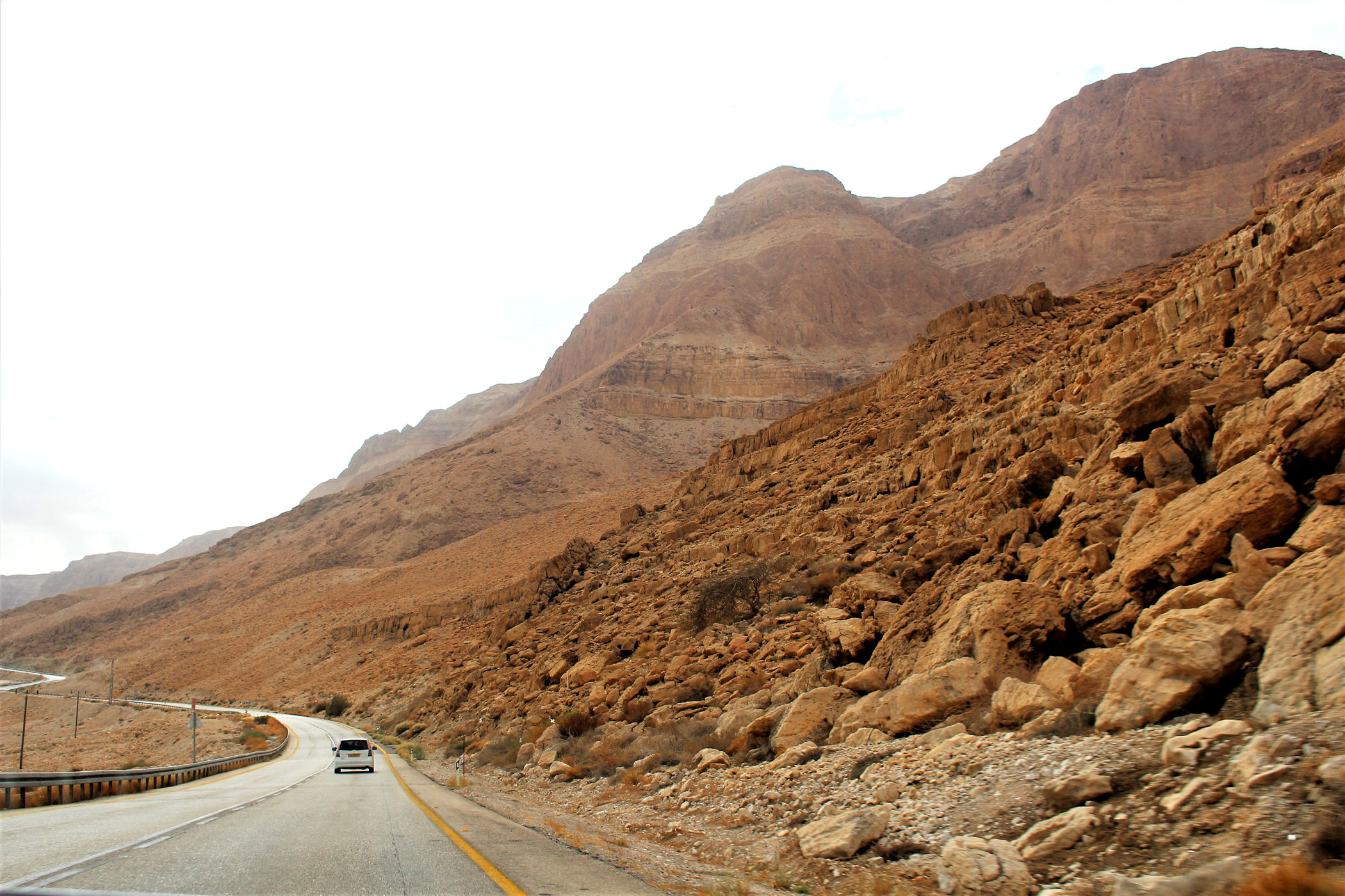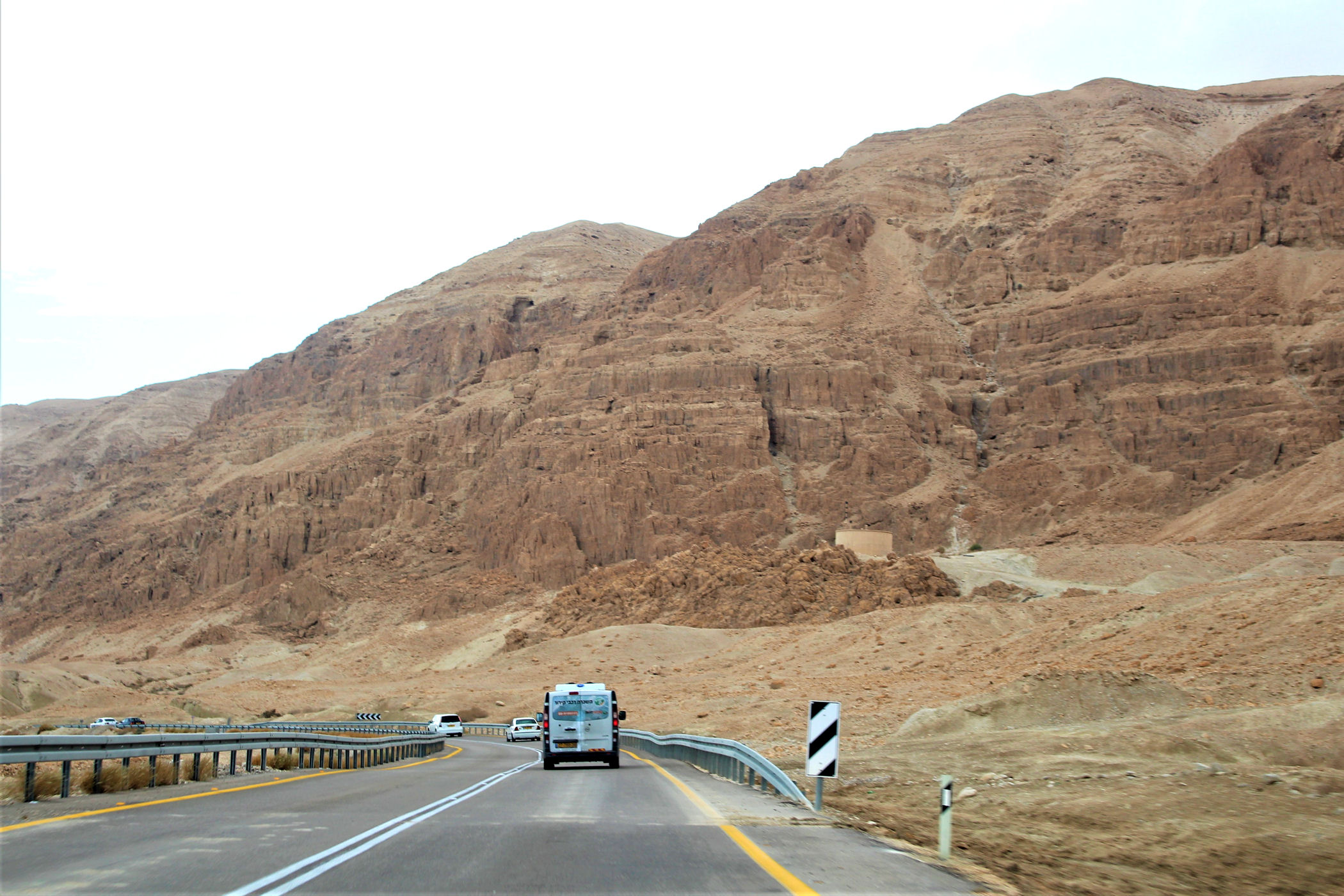 Dalsza droga nr. 90 prowadzi wzdłuż wybrzeża Morza Martwego. Po prawej stronie mamy góry Pustyni Judzkiej. Są bardzo suche, pozbawione jakiejkolwiek roślinności, ale też niezwykle malownicze. Tu z drogi można zjechać w kilku miejscach do plaż nadmorskich. Są to Biankini Beach, Siesta Beach oraz Neve Midbar. Ta ostatnia dostępna w godz. 7.00-9.30 tylko dla kobiet – pamiętajmy tu o zwyczajach muzułmańskich. Wszystkie te plaże są jednak płatne, nawet do 50 NIS za wstęp od osoby. My plaże planujemy odwiedzić dużo dalej, nie zatrzymujemy się więc tutaj.