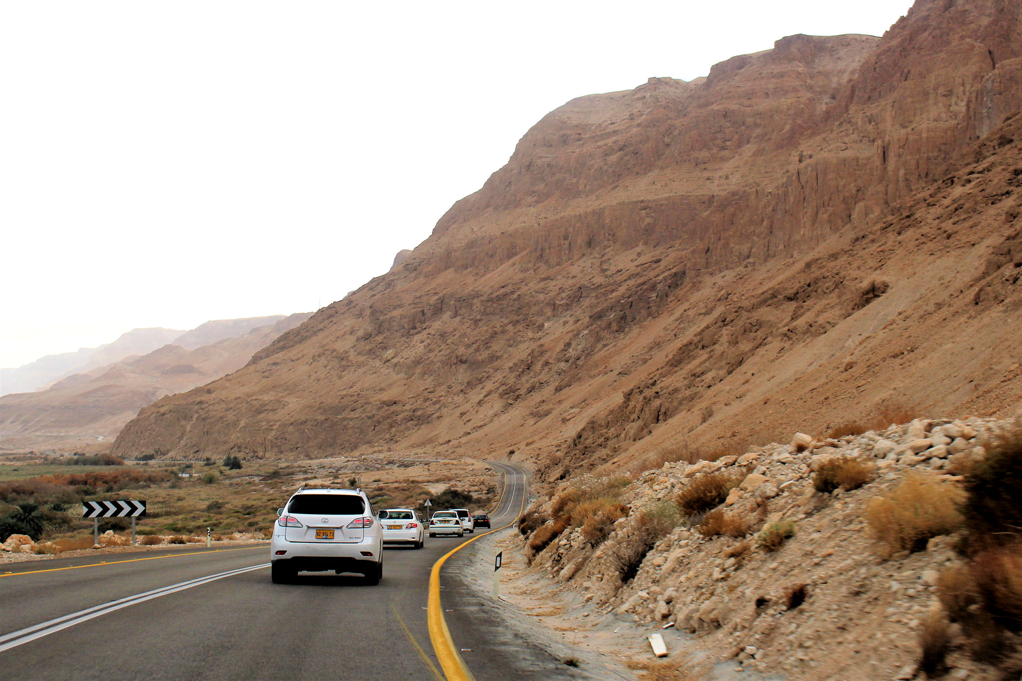 Droga 90 znalazła się na naszej trasie przejazdu po ustaleniach z wypożyczalnią EUROPCAR , z której mieliśmy samochód i otrzymaliśmy zgodę na przejazd. Nie otrzymaliśmy jednak zgody na zjeżdżanie z głównej szosy i dojazd np. do Jerycha. Ale z pozwolenia się cieszymy z dwóch powodów. Po pierwsze, nie musimy okrążać całej Palestyny, aby dotrzeć do Morza Martwego, po drugie sama trasa jest bardzo ciekawa i niezwykła krajobrazowo.