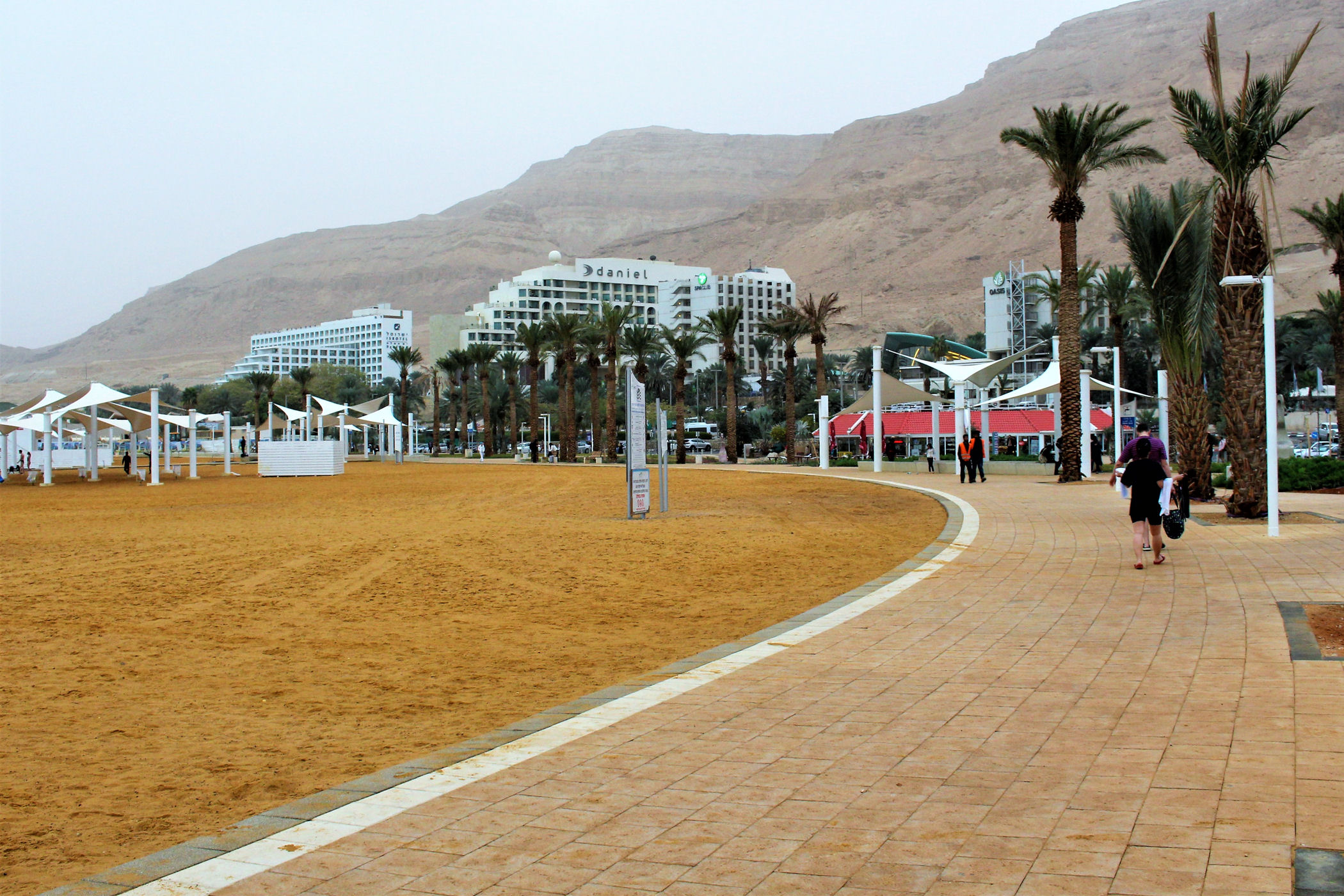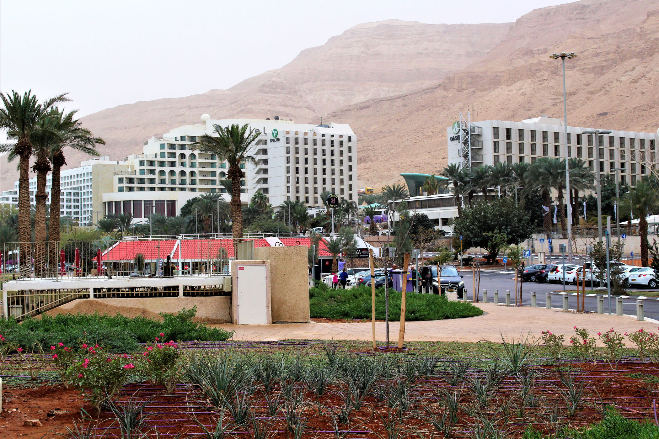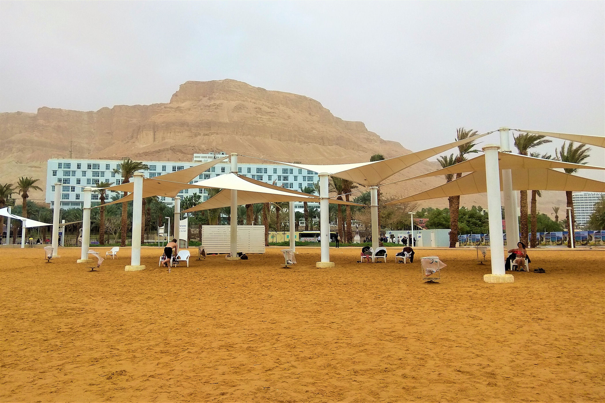W poszukiwaniu innego miejsca w którym można dotrzeć nad brzeg zatrzymujemy się przy ośrodku spa o tej samej nazwie, który oprócz kąpieli w źródłach termalnych oraz zabiegów z użyciem mułu z dna morza oferuje podwiezienie do plaży i kąpiel w nim. Wstęp jest jednak bardzo drogi – 69/40 NIS , a czynne zaledwie do 17.00 . Jeśli więc nie mamy całego dnia do dyspozycji, wchodzenie tu nie ma sensu. Rezygnujemy i szukamy dalej.