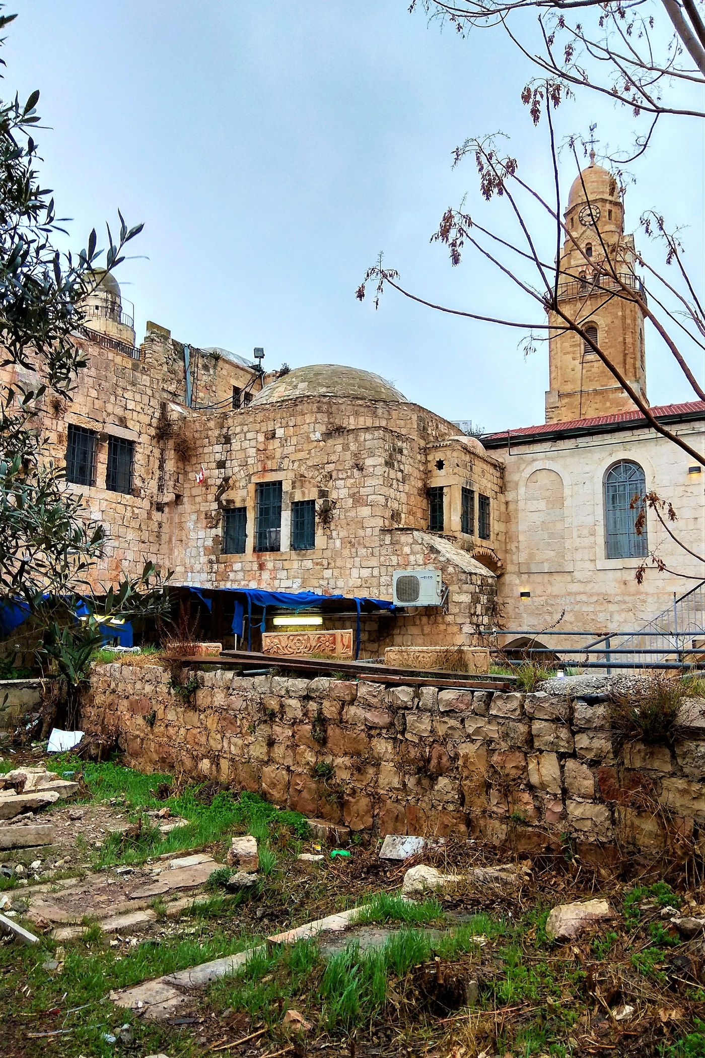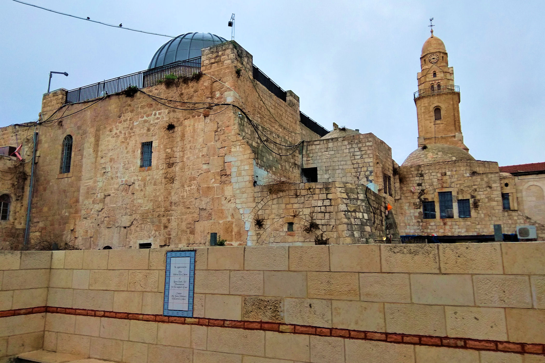 Obecnie znajduje się tu Bazylika Zaśnięcia Marii Panny. Ta masywna budowla ze strzelistą wieżą góruje nad starym miastem. Kościół powstał w XX w., ze składek niemieckich katolików. Kawałek dalej znajduje się kolejne ważne dla chrześcijan miejsce , obok posągu króla Dawida jest wejście do wieczernika (czynne tylko do 17.00, nie możemy już niestety wejść do środka). Sala ta tak naprawdę powstała w XIV w. , początkowo przejęta przez muzułmanów i zamieniona na meczet, dopiero w 2000 roku na prośbę Jana Pawła II muzułmanie zrzekli się praw do wieczernika.