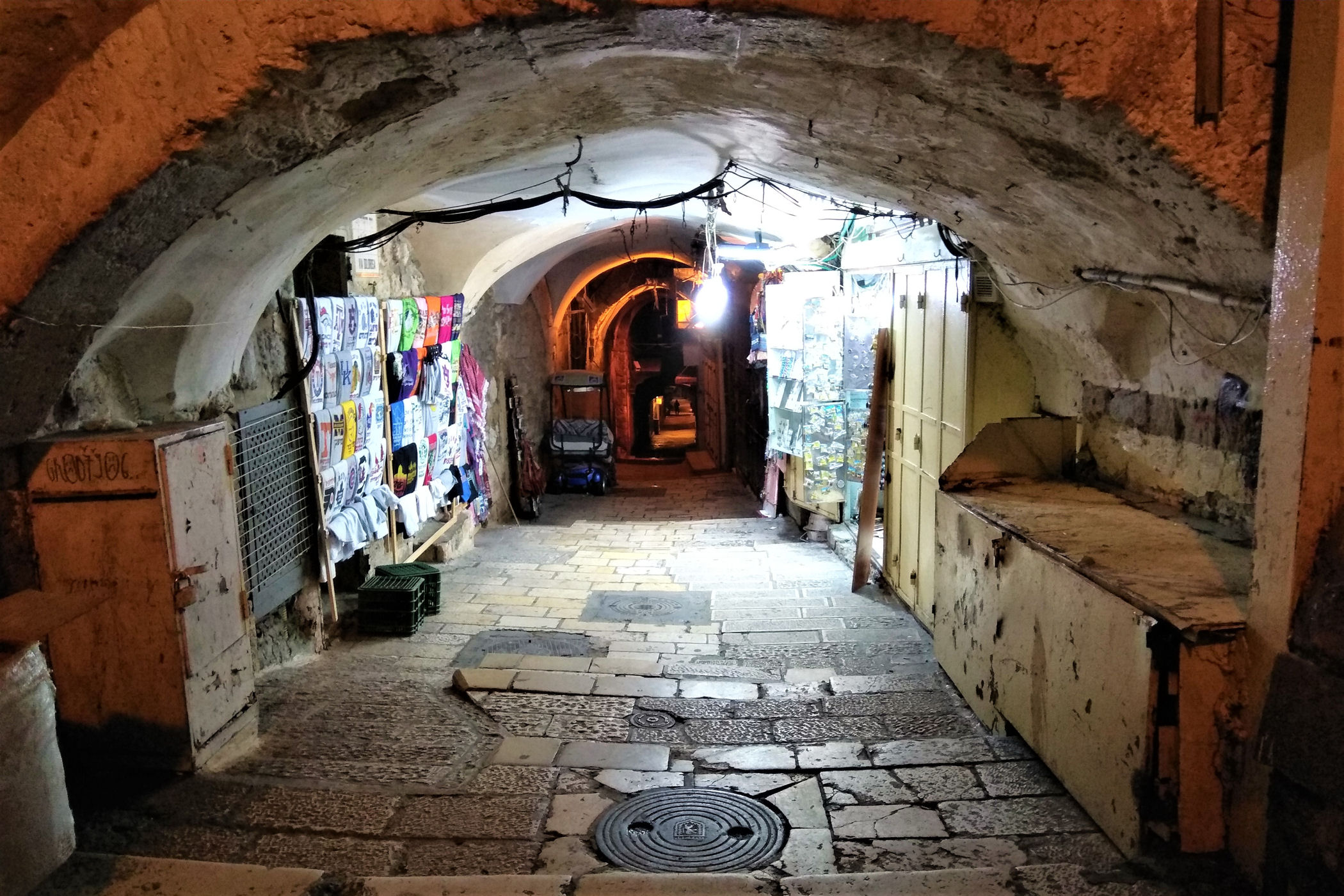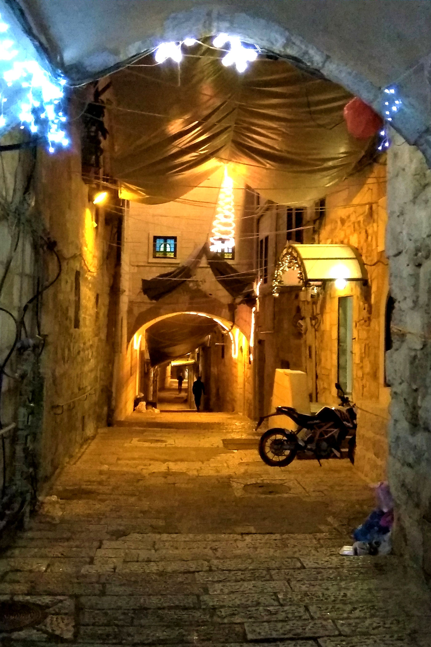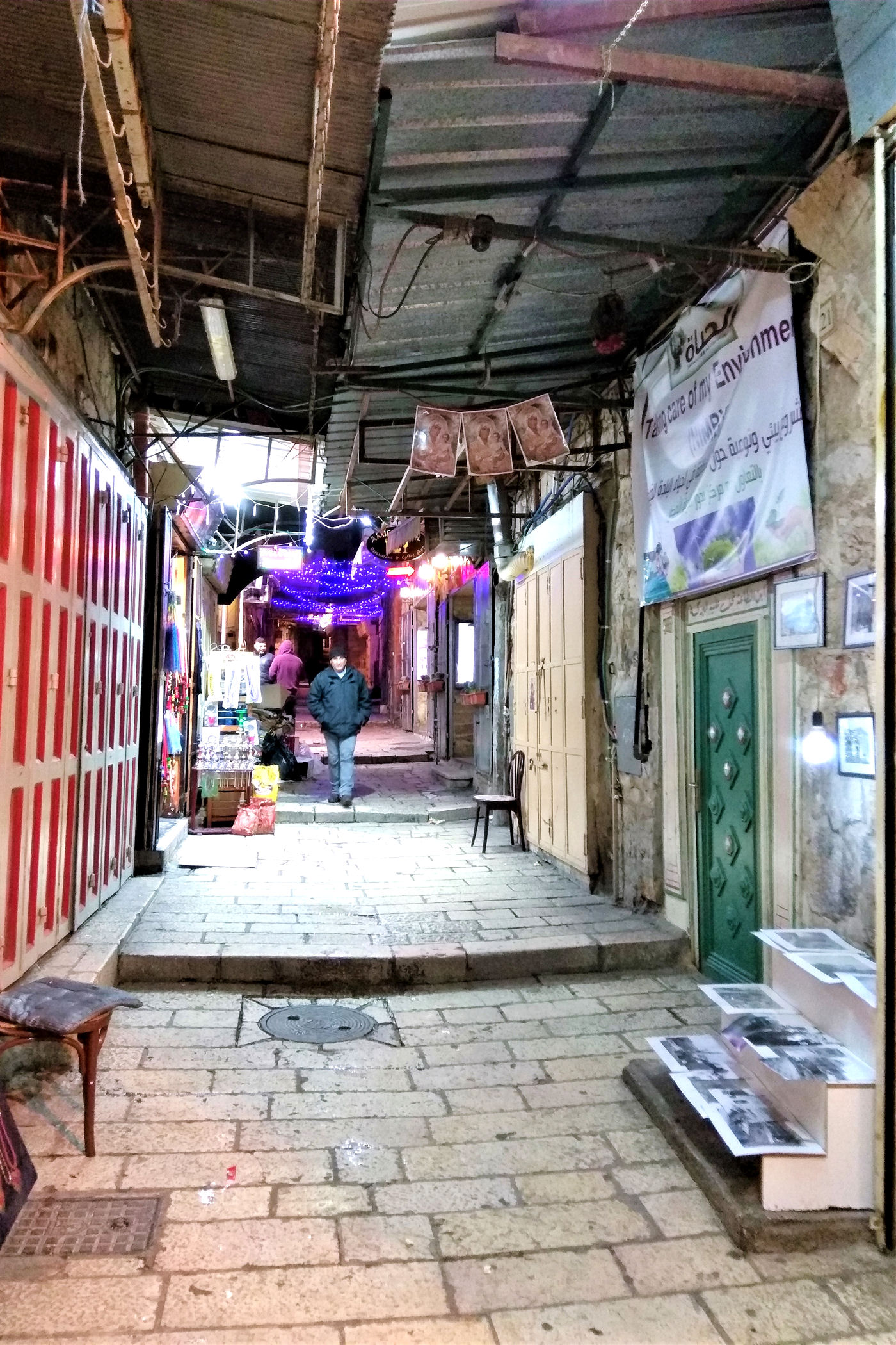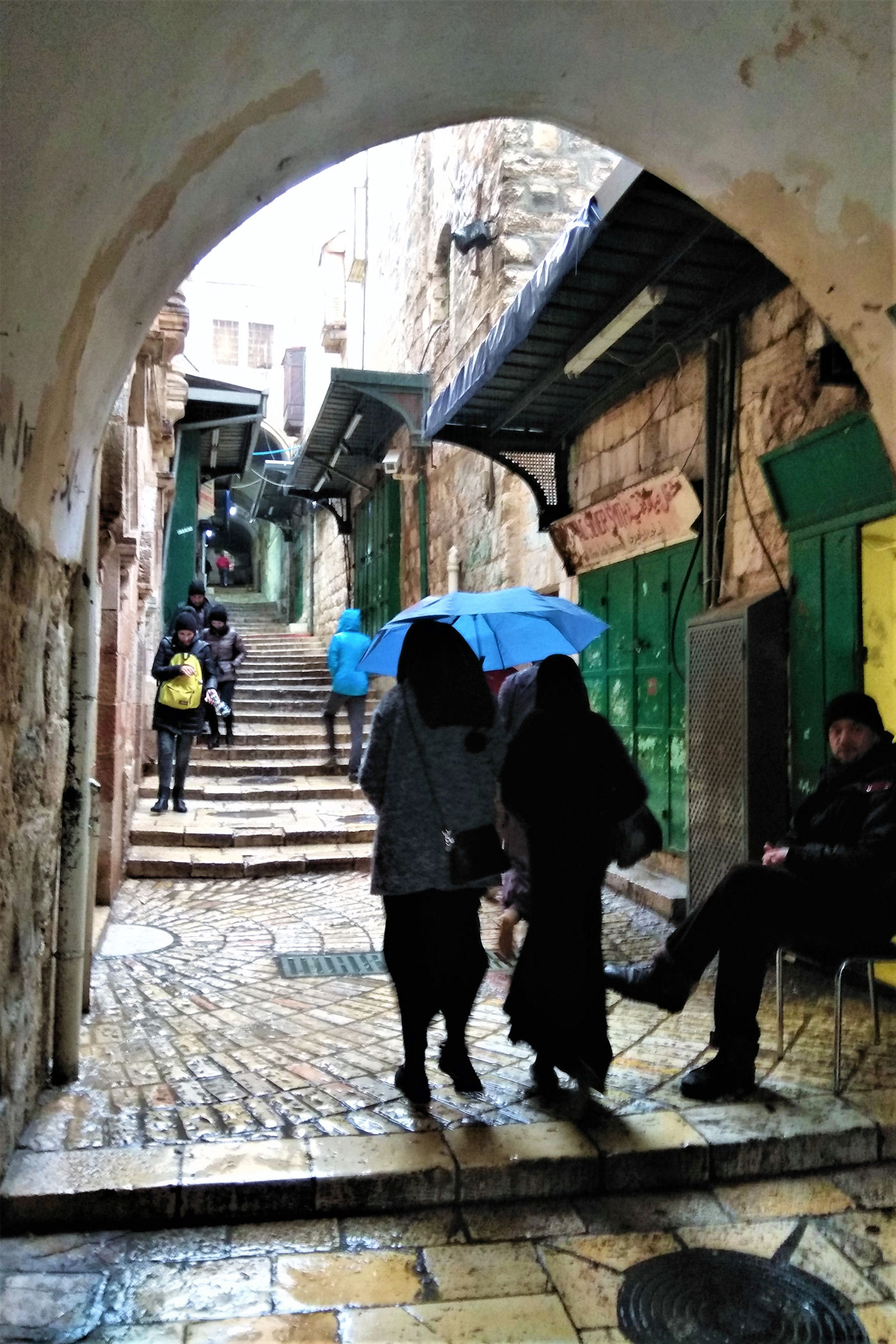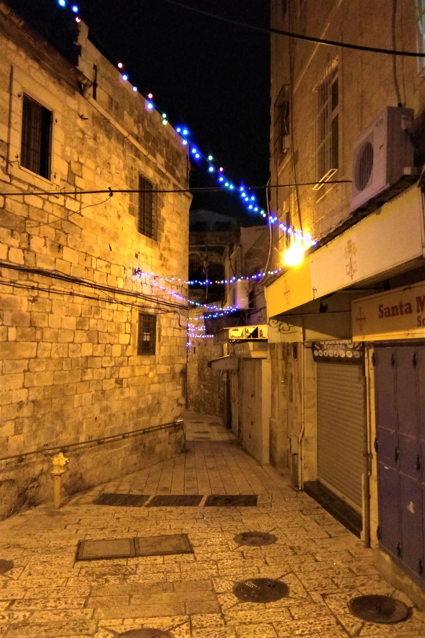 My odwiedzamy dzielnicę chrześcijańską 2-krotnie. Pierwsza wizyta odbywa się podczas ulewnego deszczu i lodowatego wiatru, kolejna to wieczorny spacer od Nowej Bramy do Bramy Damasceńskiej. Zdjęcia więc w większości są z telefonów komórkowych, bo warunki nie pozwalały na wyjęcie aparatów spod kurtek.