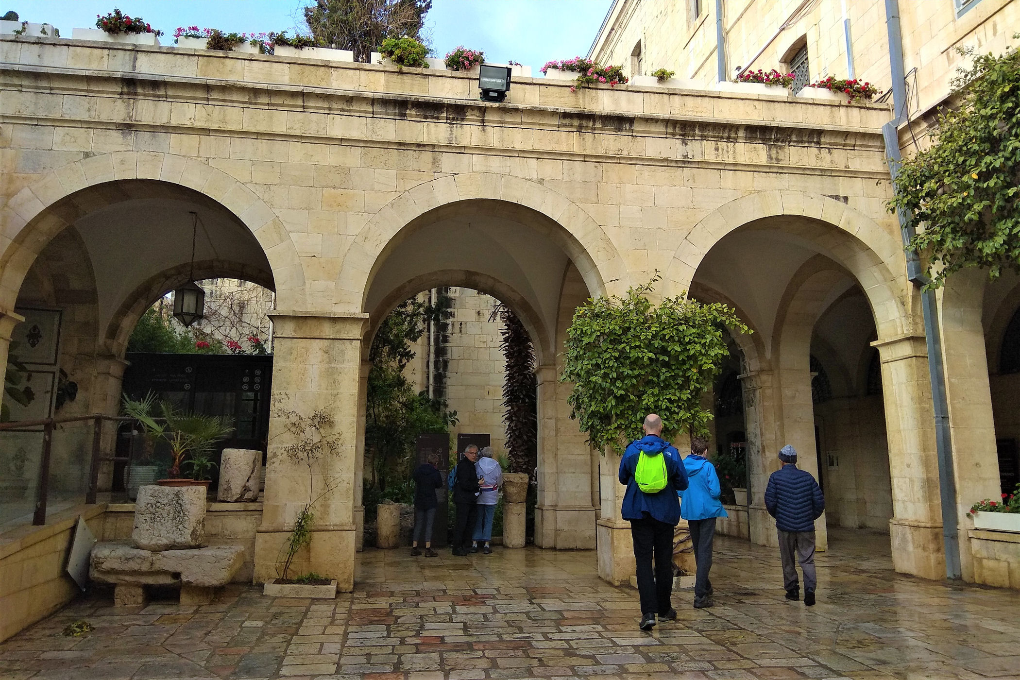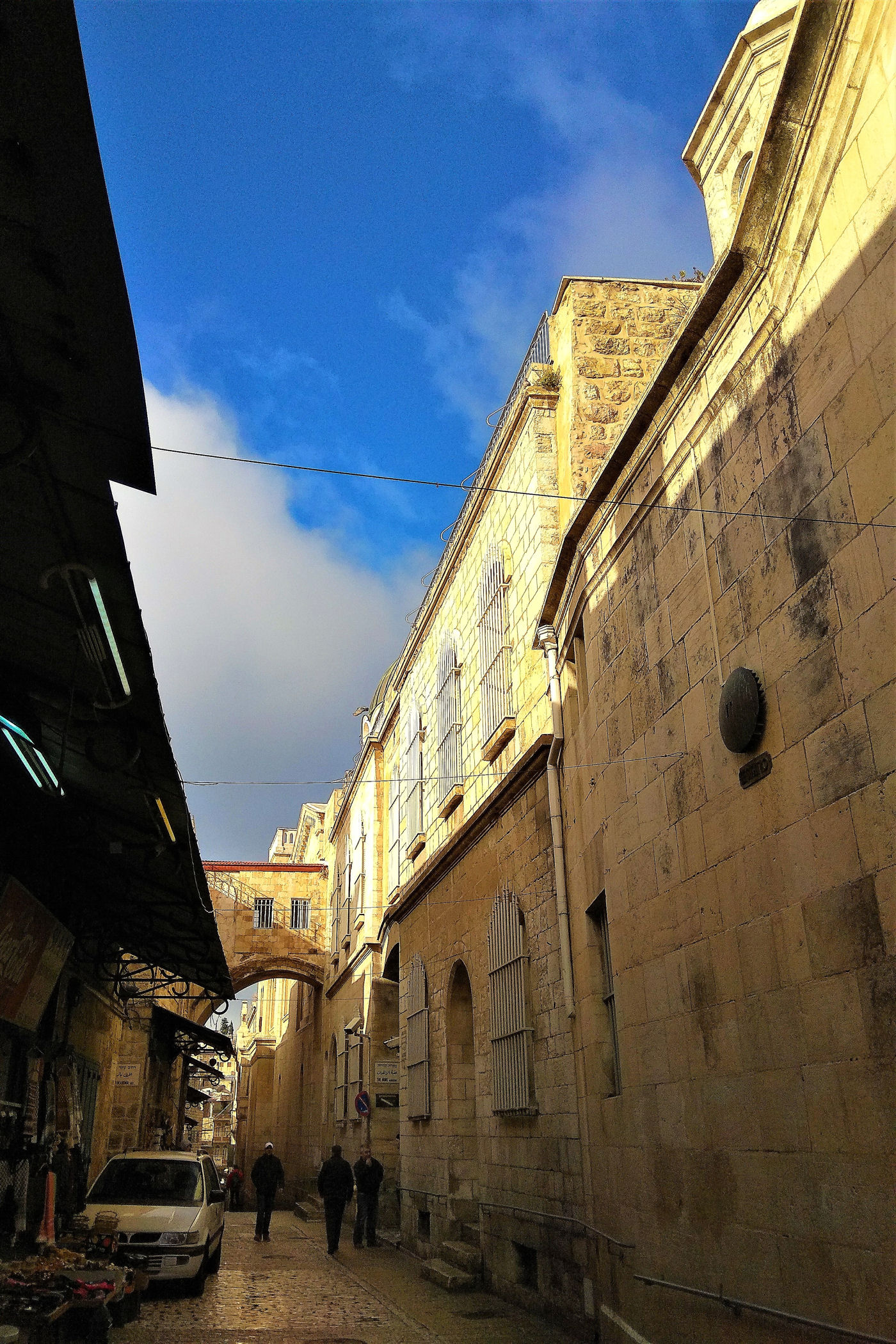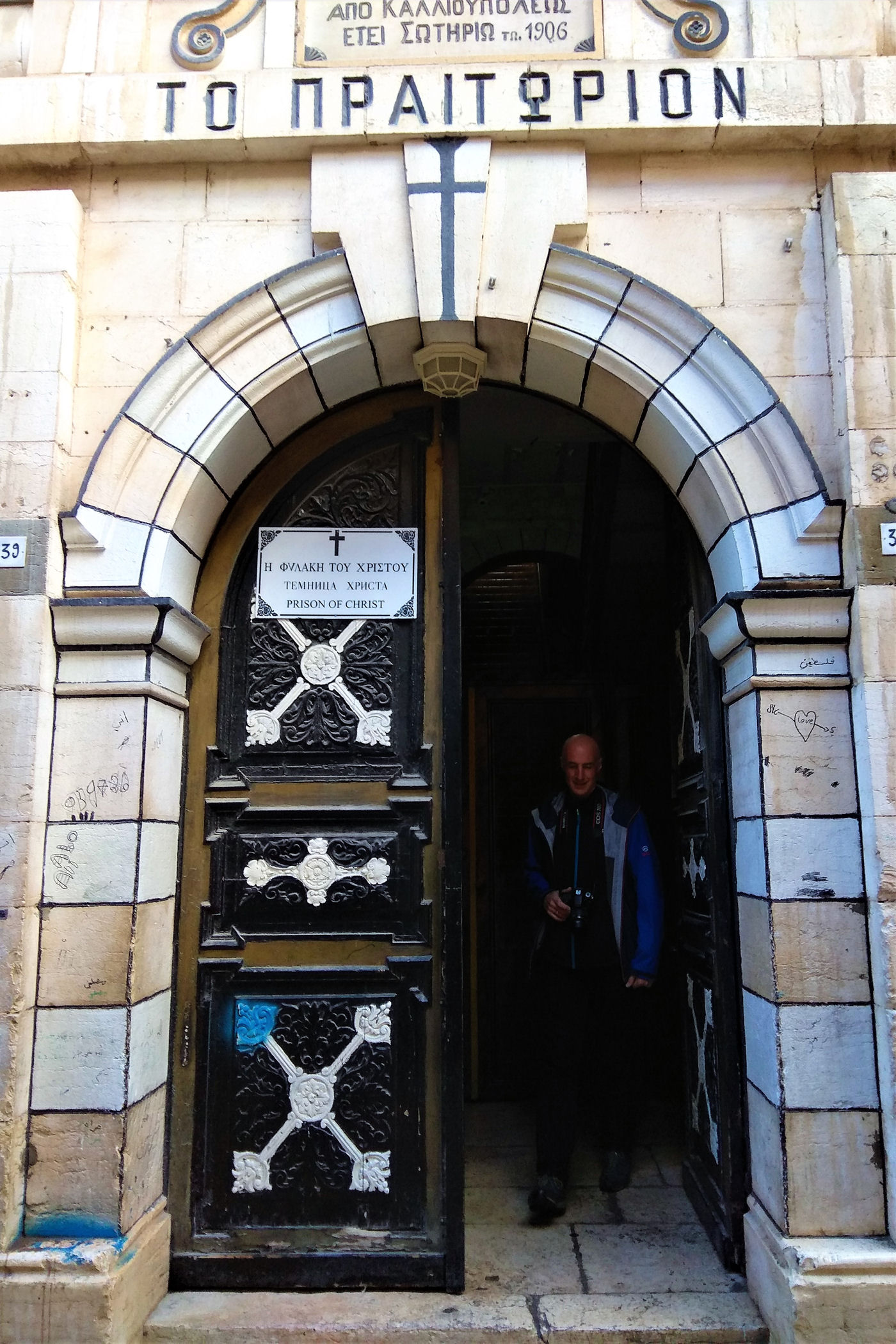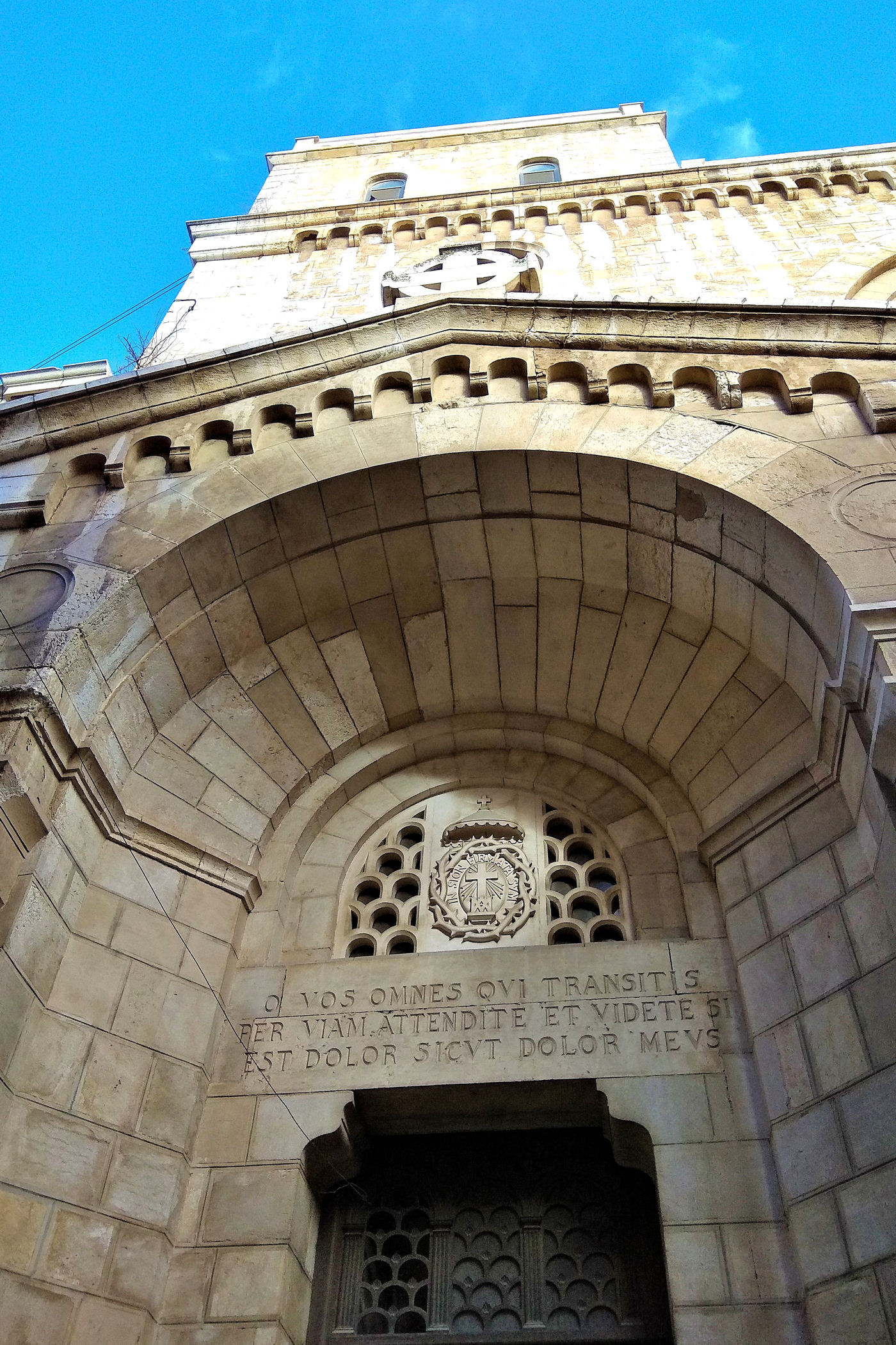 Znajduje się na murze Kaplicy Skazania na Śmierć, zbudowanej w 1920 w miejscu kaplicy bizantyjskiej. Idąc dalej mijamy łuk triumfalny z z czasów rzymskich I/II w. Część konstrukcji włączono w mur Kościółka Ecce Homo ( wstęp 9/5 NIS )