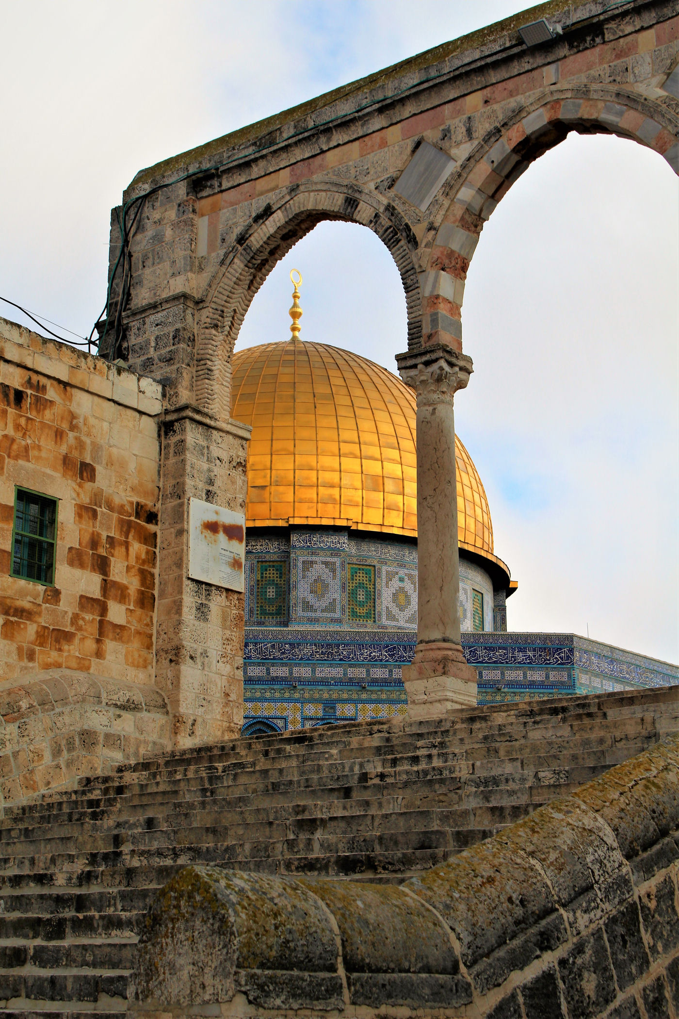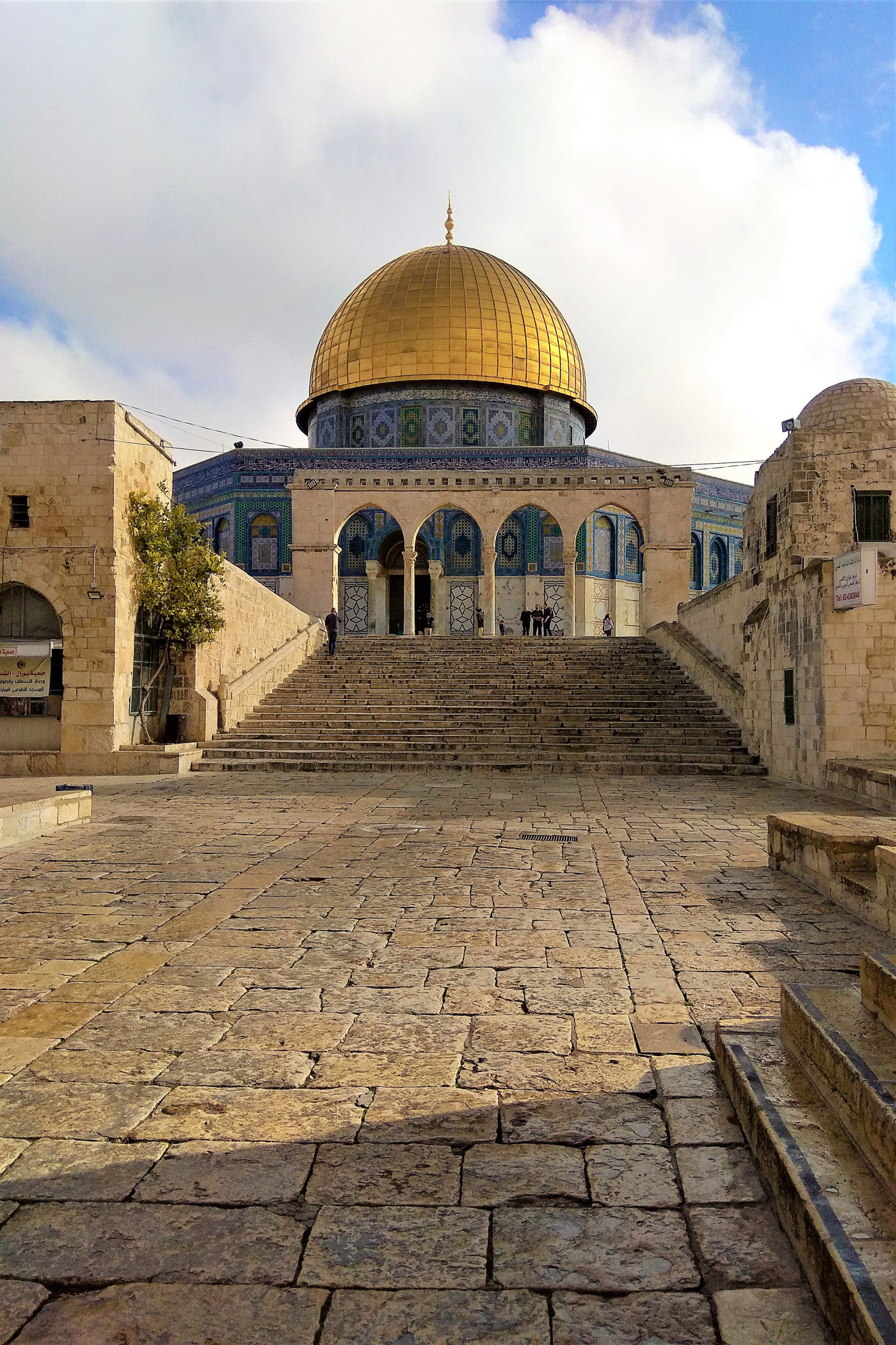 Wejście na wzgórze dla turystów (niemuzułmanów) jest tylko jedno i znajduje się po prawej stronie Ściany Płaczu. Jest tam jedna mała tabliczka z informacją, bardzo łatwo więc to miejsce pominąć. Nam się to zdarzyło i okrążyliśmy całe wzgórze dookoła. Faktycznie żadną inną bramą wojsko nas nie wpuściło – informując, że tylko muzułmanie mają prawo wejścia.